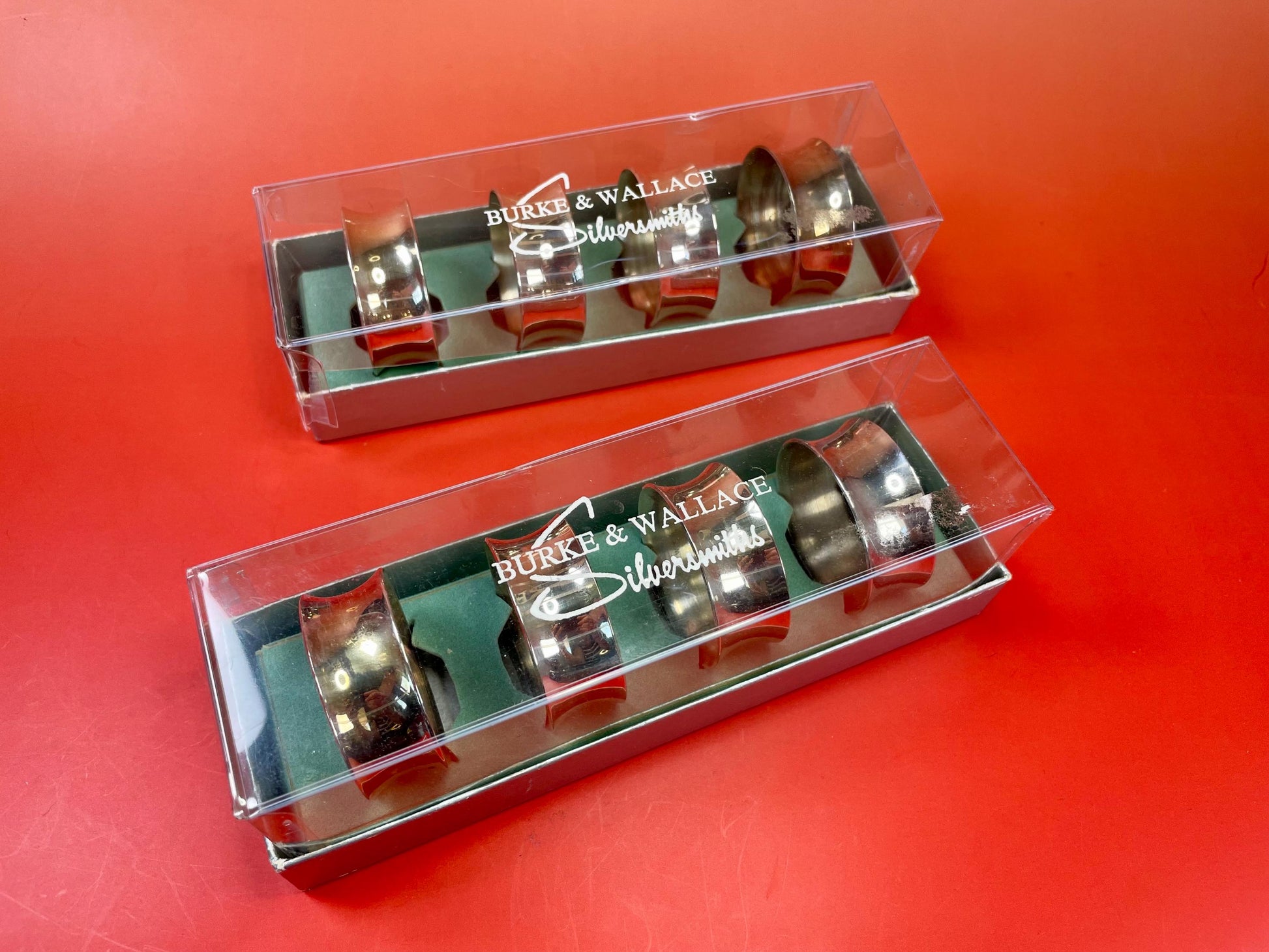 Burke and Wallace Silversmiths 2 Sets of 4 Silver Plated Napkin Rings