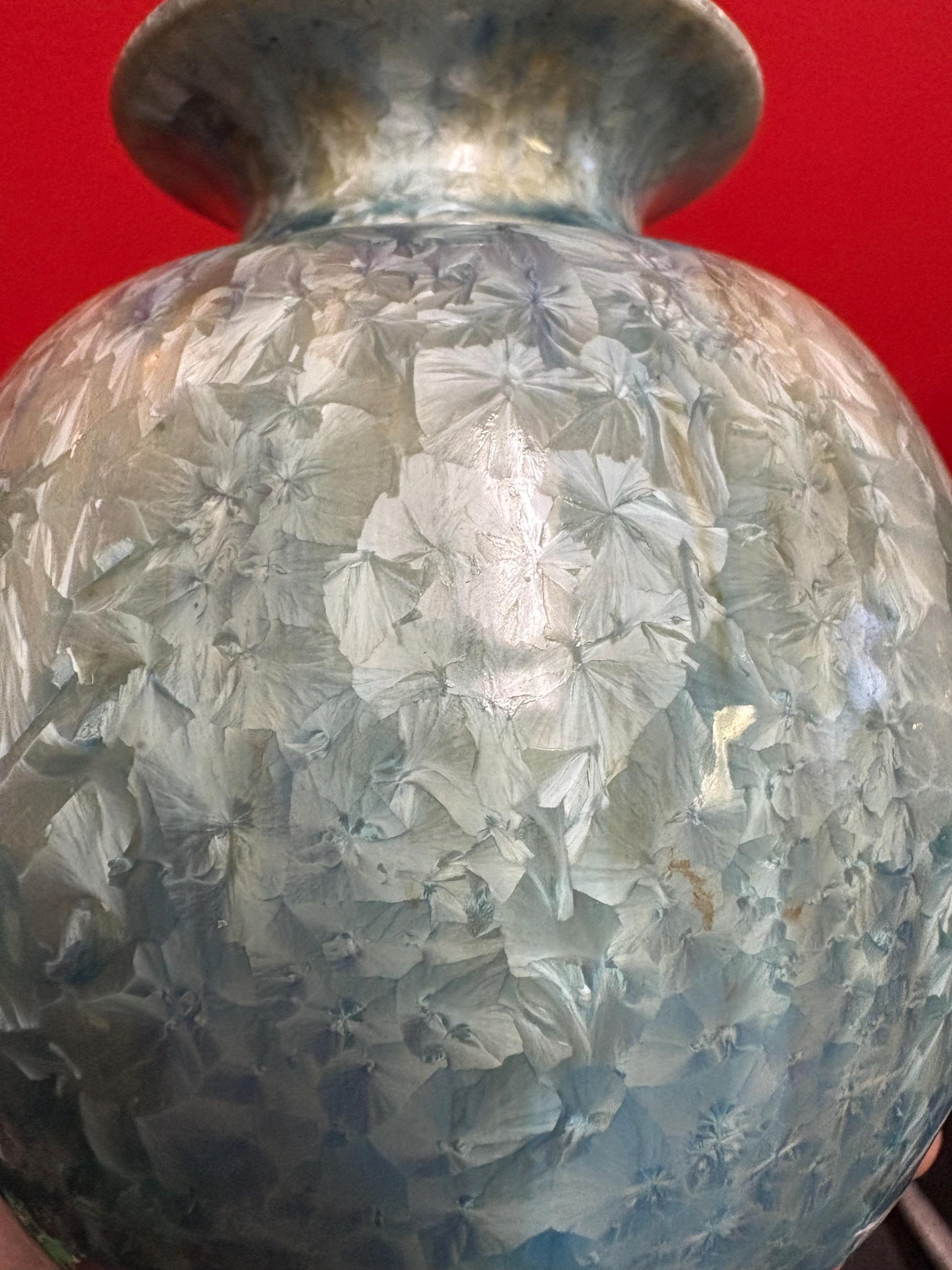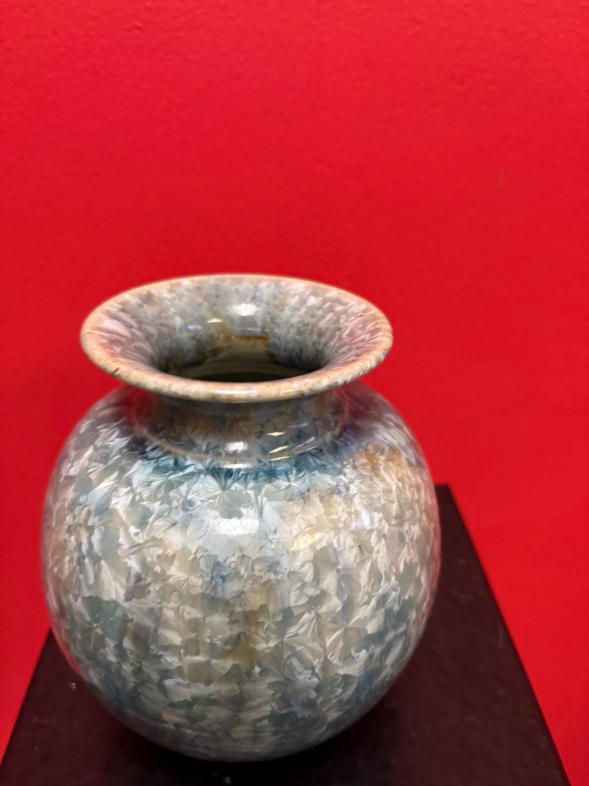 Canadian signed studio pottery 6 inch vase with amazing glaze dynamite colour great value