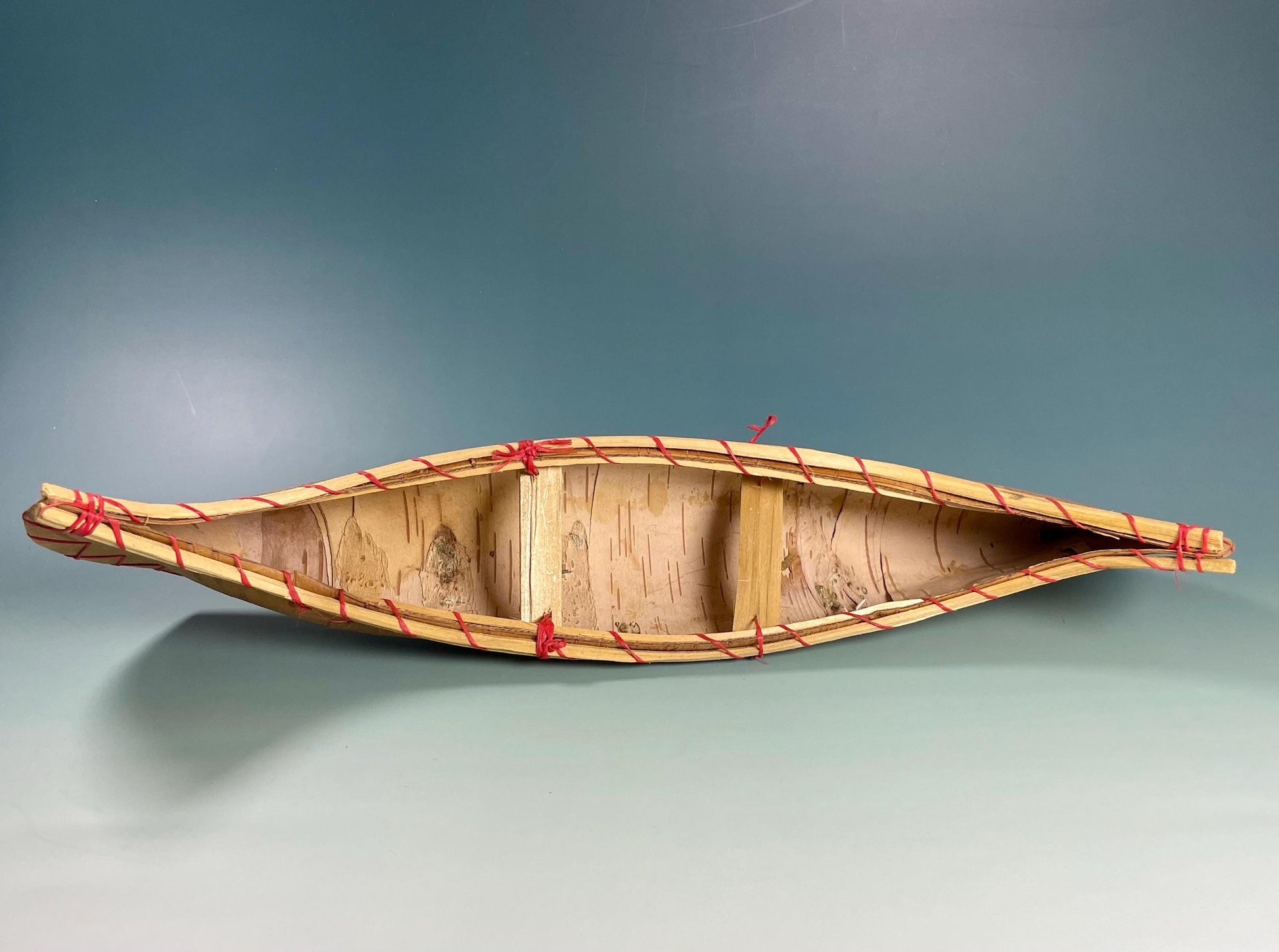 Beautiful Handmade Vintage model canoe, crafted from birch bark.