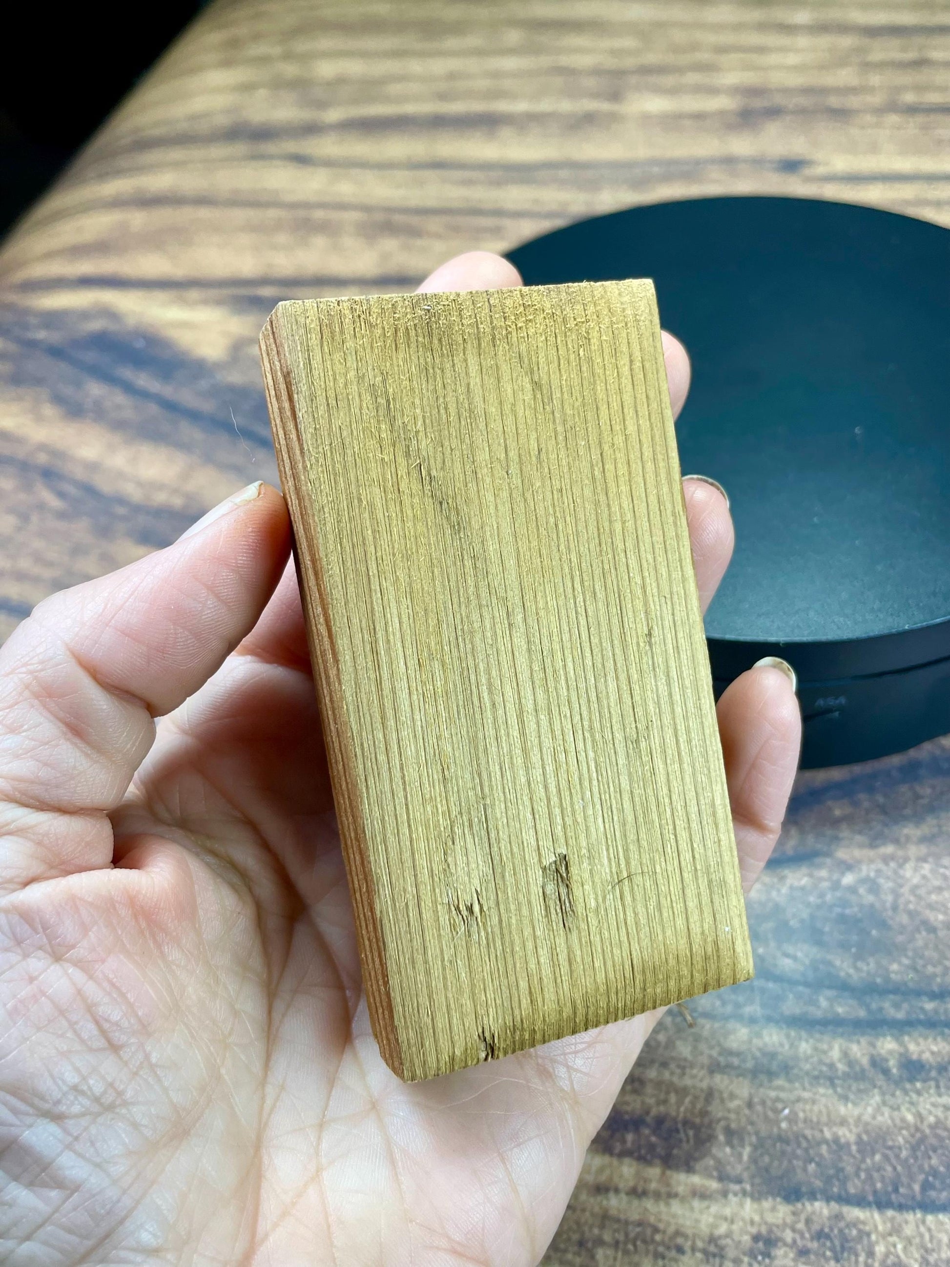 Hand-carved hummingbird made of cedar wood, beautifully posed in mid-flight. Stands approximately 5 inches tall including basenatural charm for any shelf or desk.