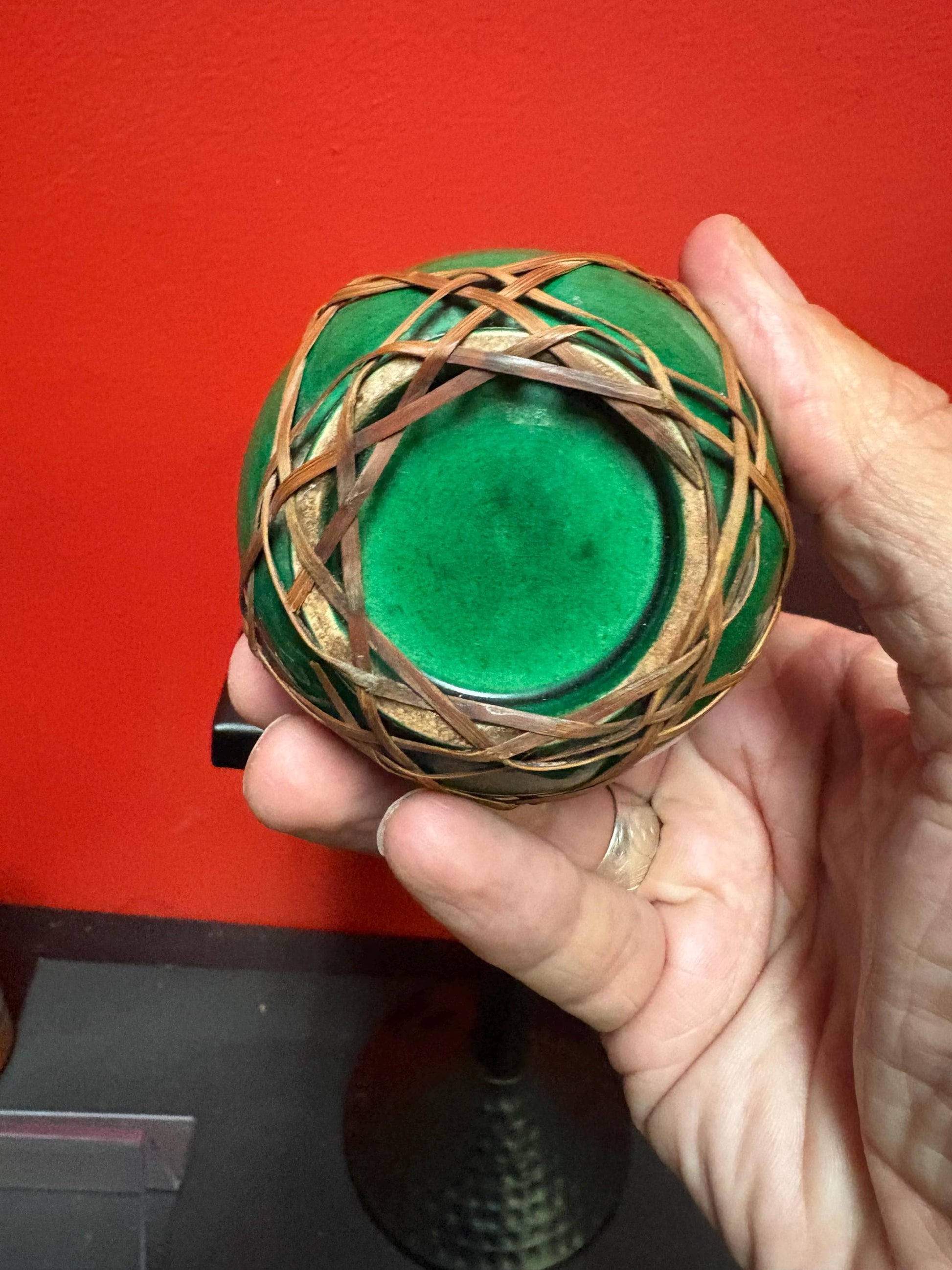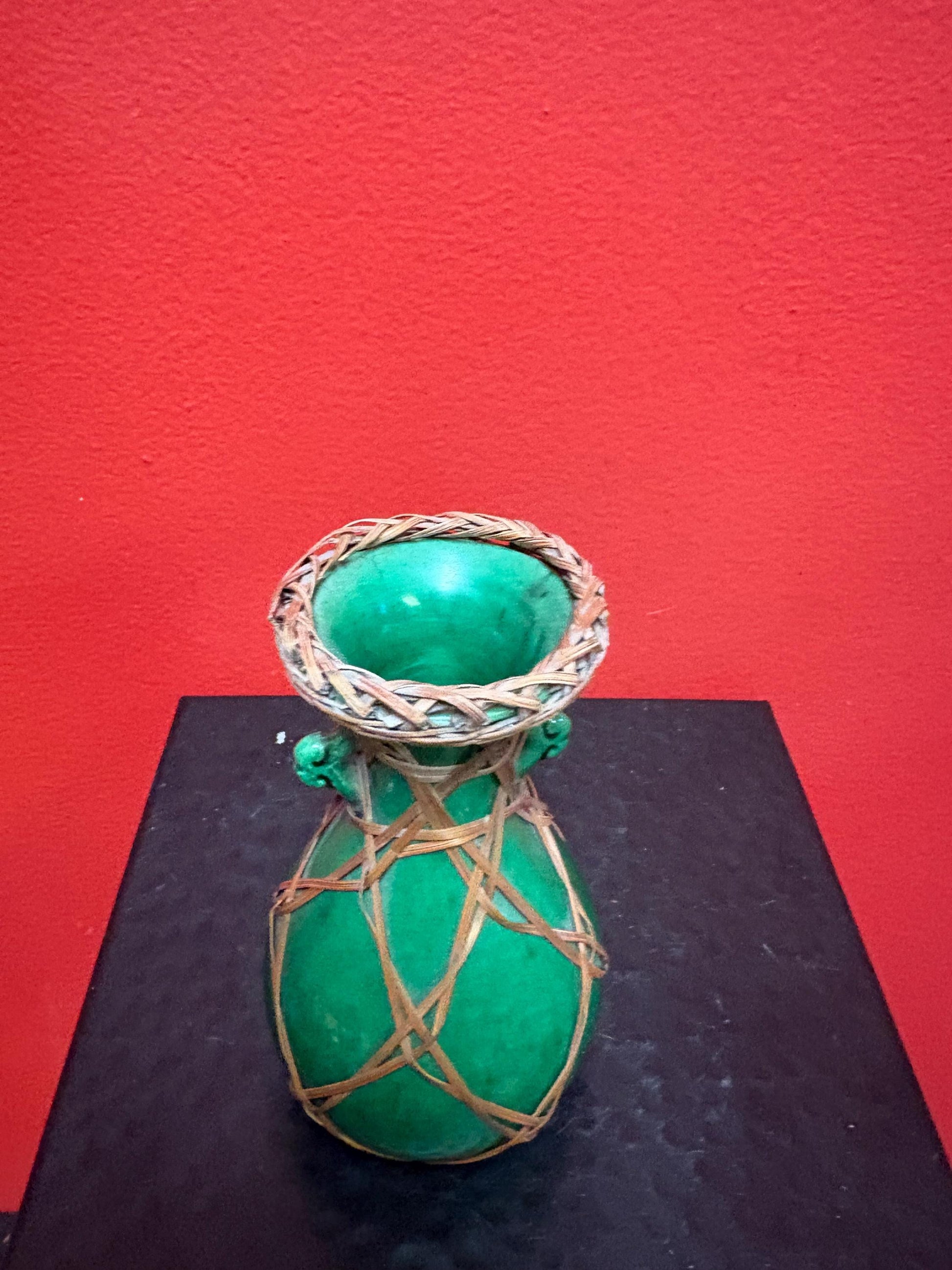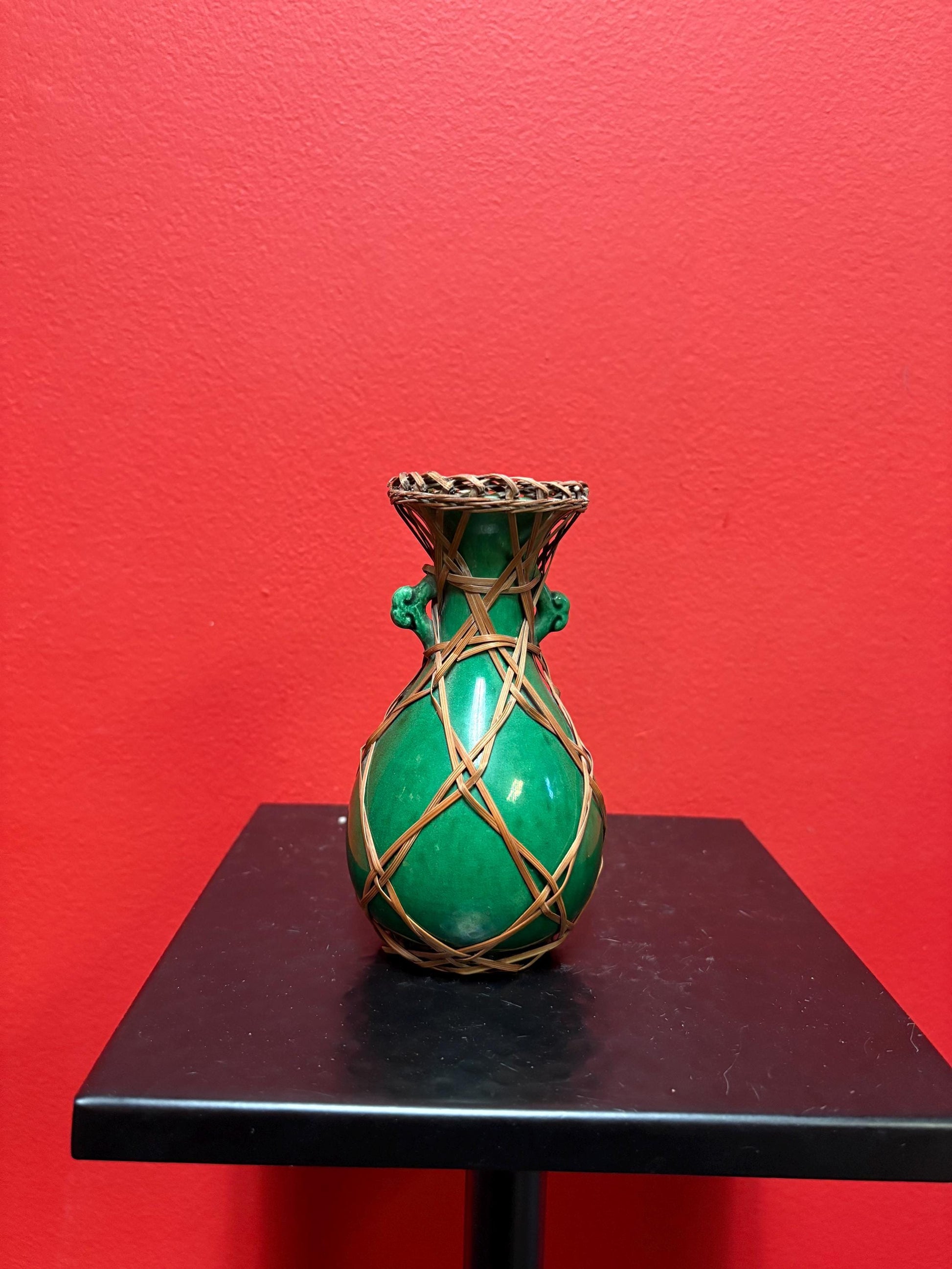 Chinese 5 inch glazed vase with netting — wonderful condition — great value —