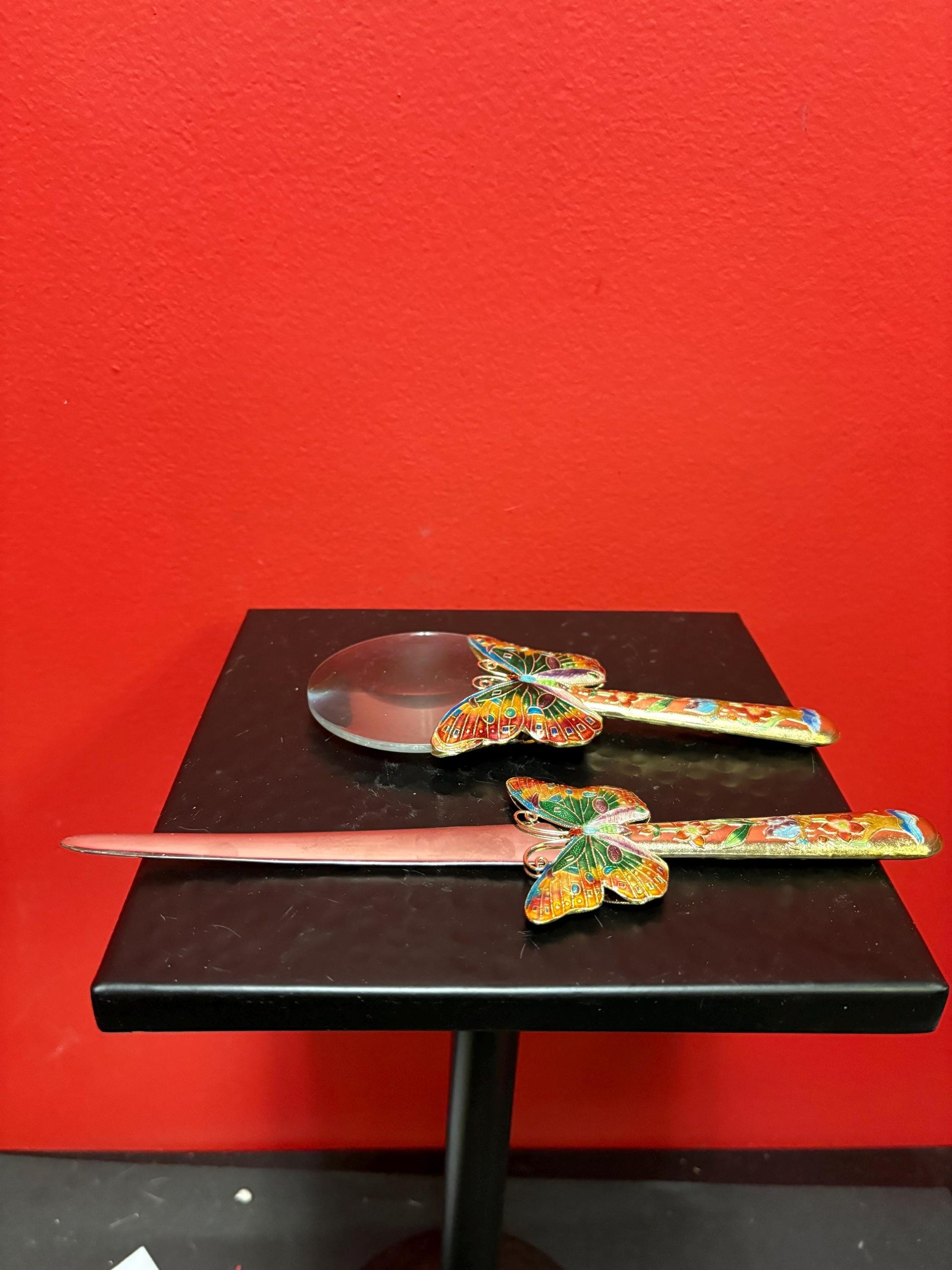 Chinese enamel magnifying glass and letter opener great gift