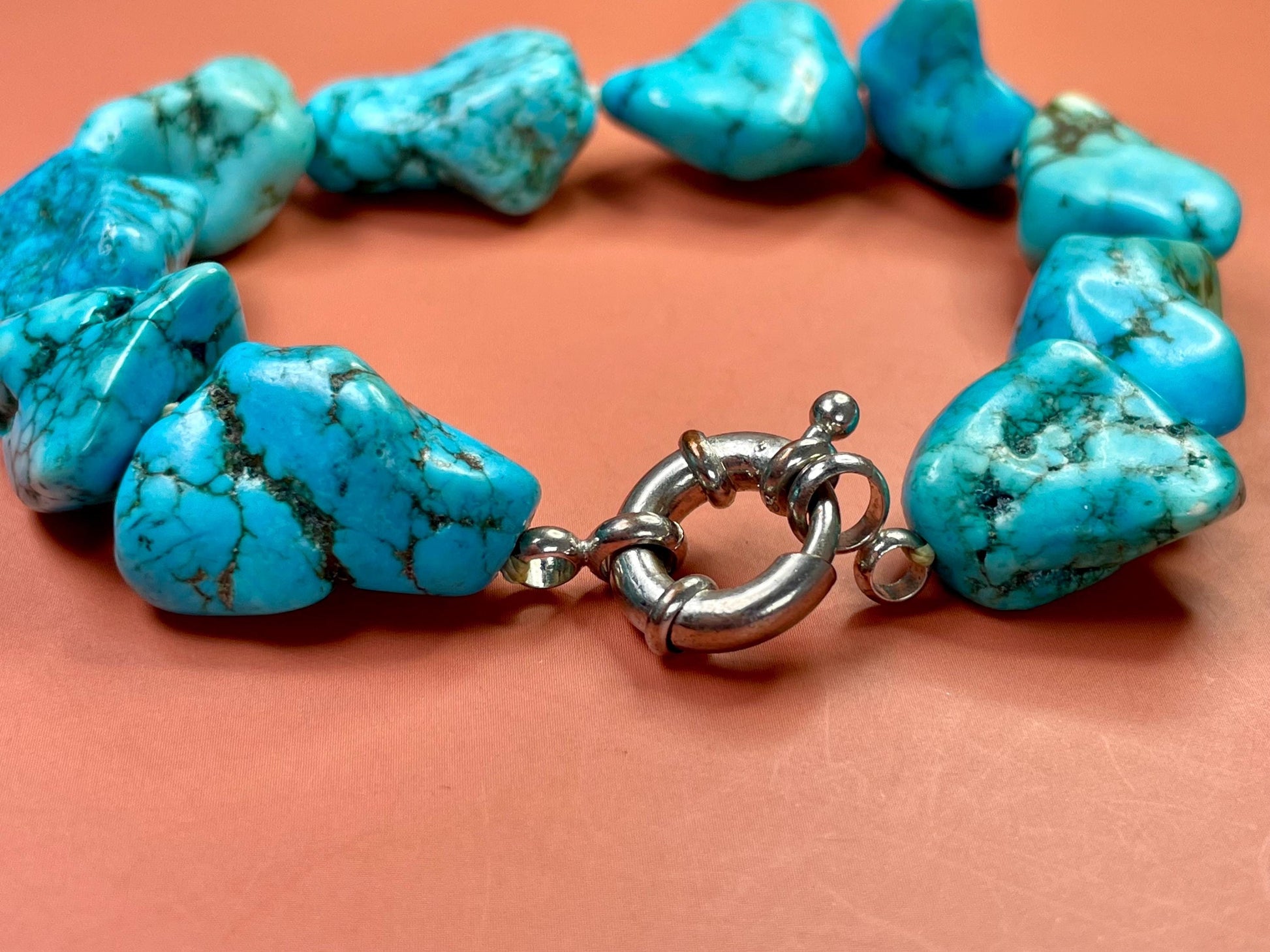 Chunky Real Turquoise Bracelet Approximately 8 inches