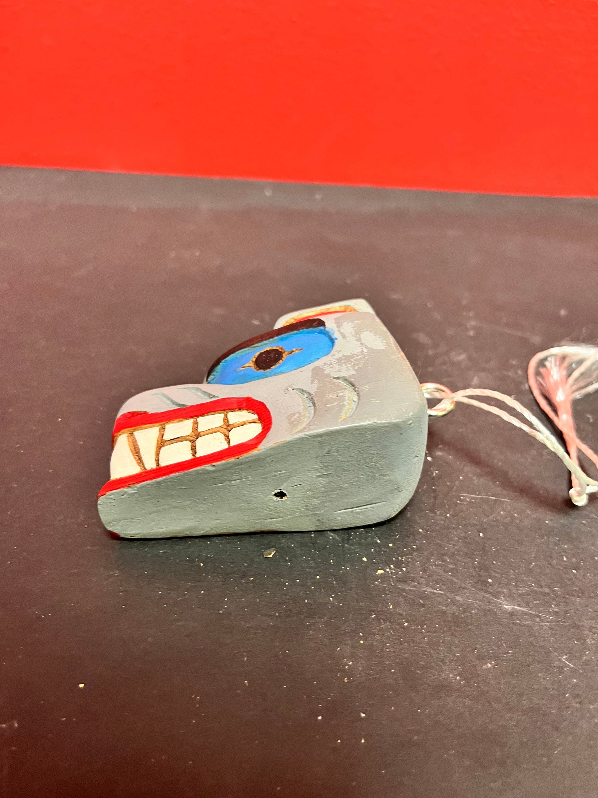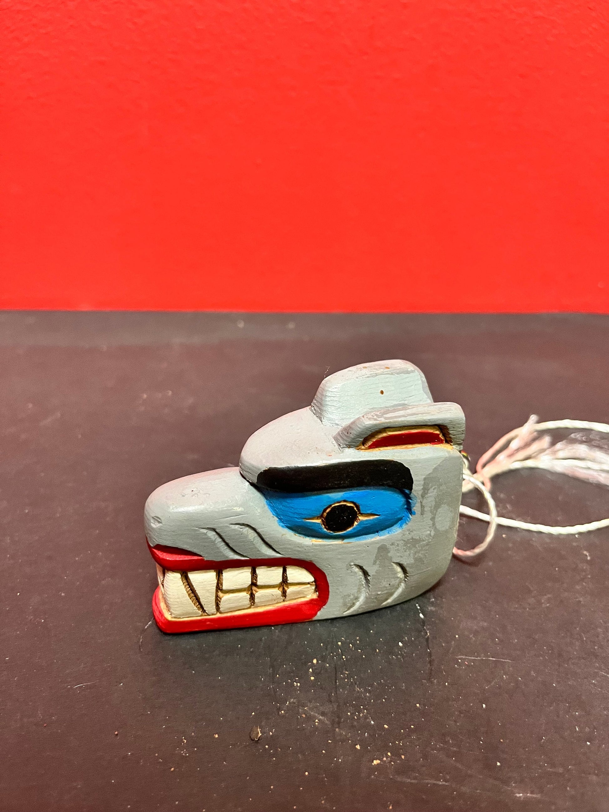 A 3×2 1/2 inch high indigenous first nations pacific coast primitive carved wolf head attributed to the Joseph family