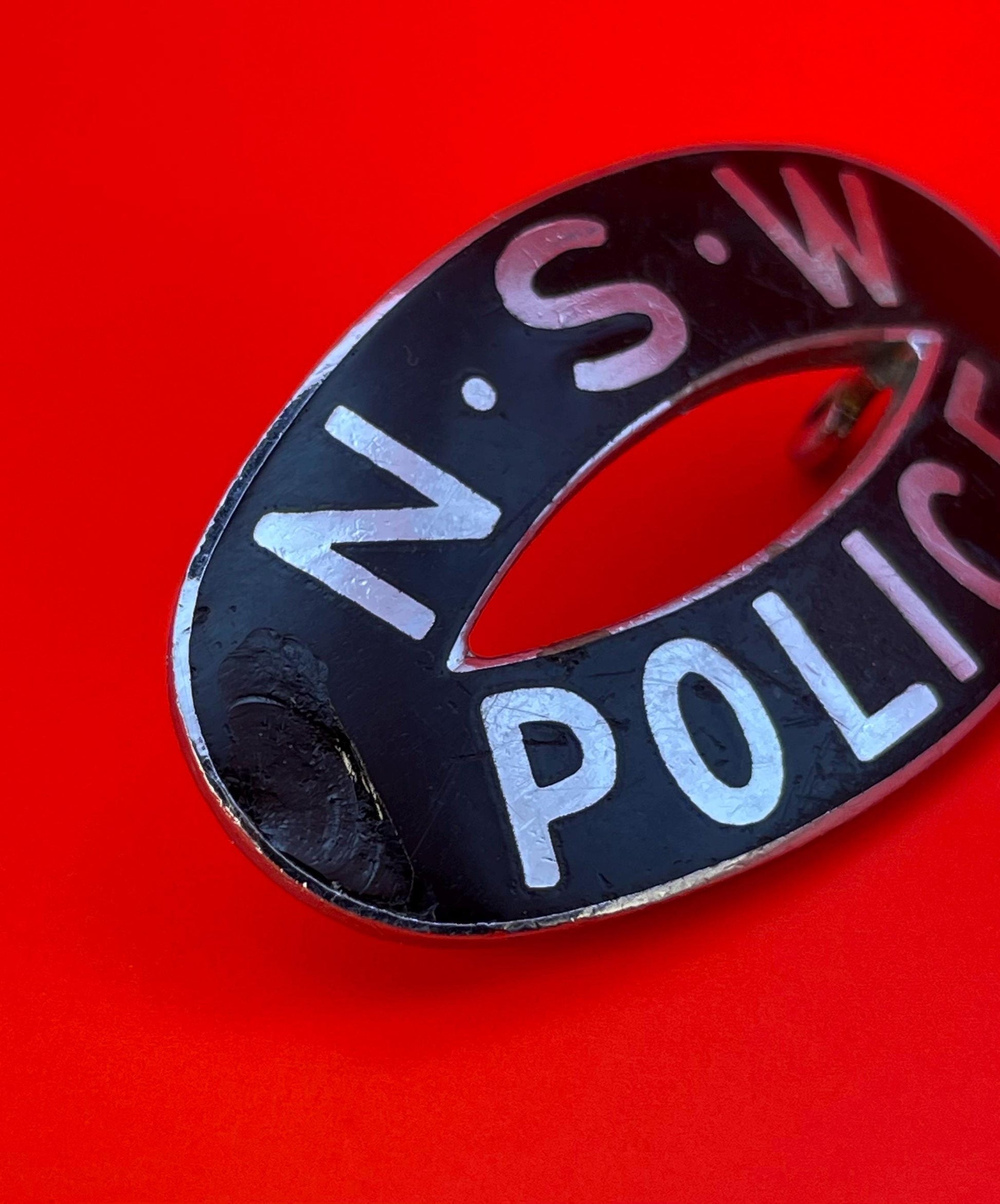 This police buckle measures 2 x 1 inches and features bold lettering in a sleek oval design.