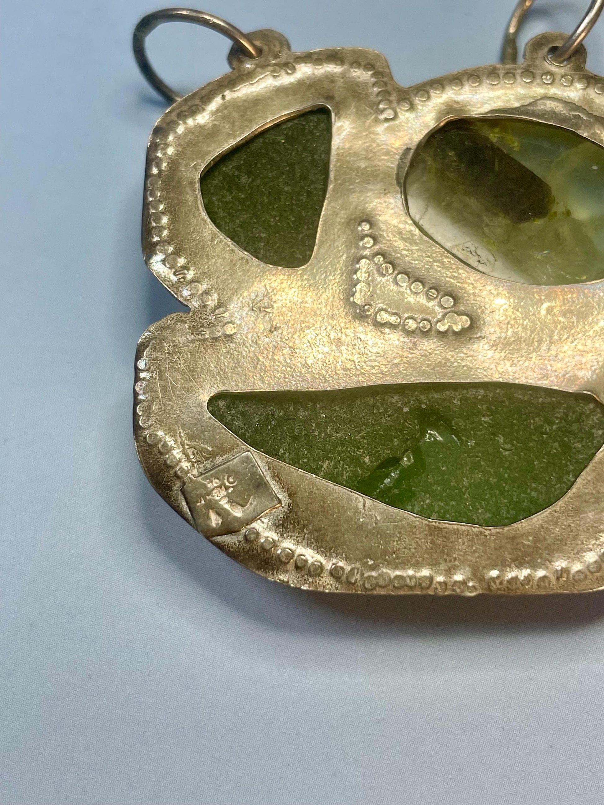 This 1.75 inch untested silver pendant features 3 beautiful green gemstones, adding a natural and elegant touch to your collection.