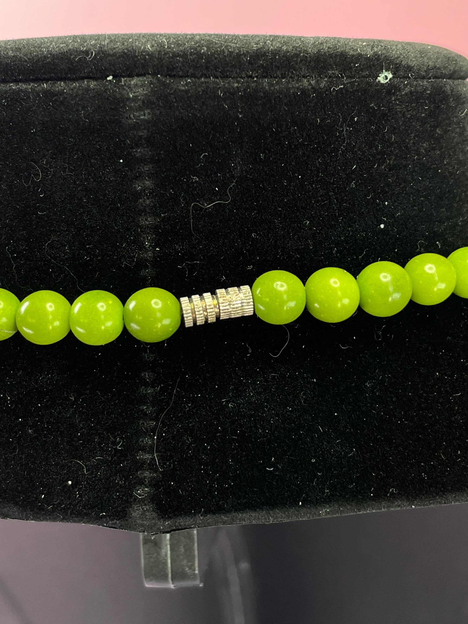 Very cool green necklace with flat overlapping beads. Great colour, a stunner!