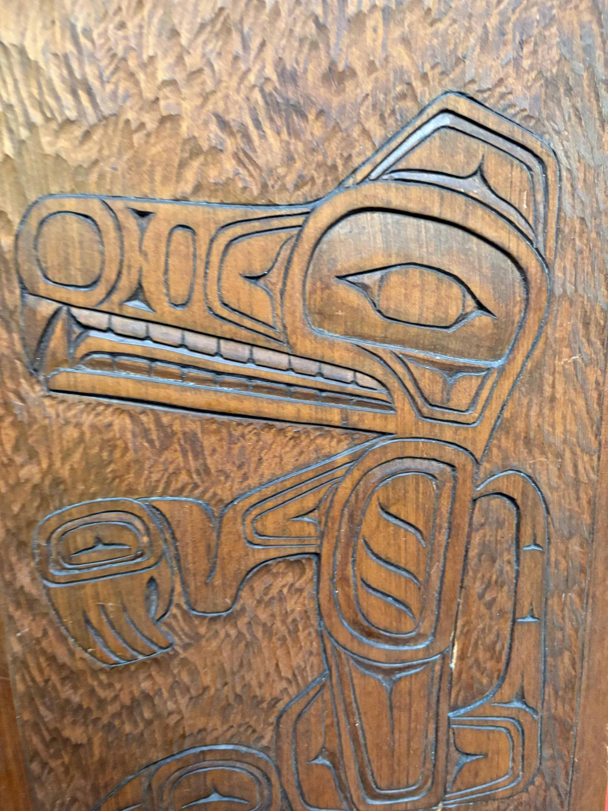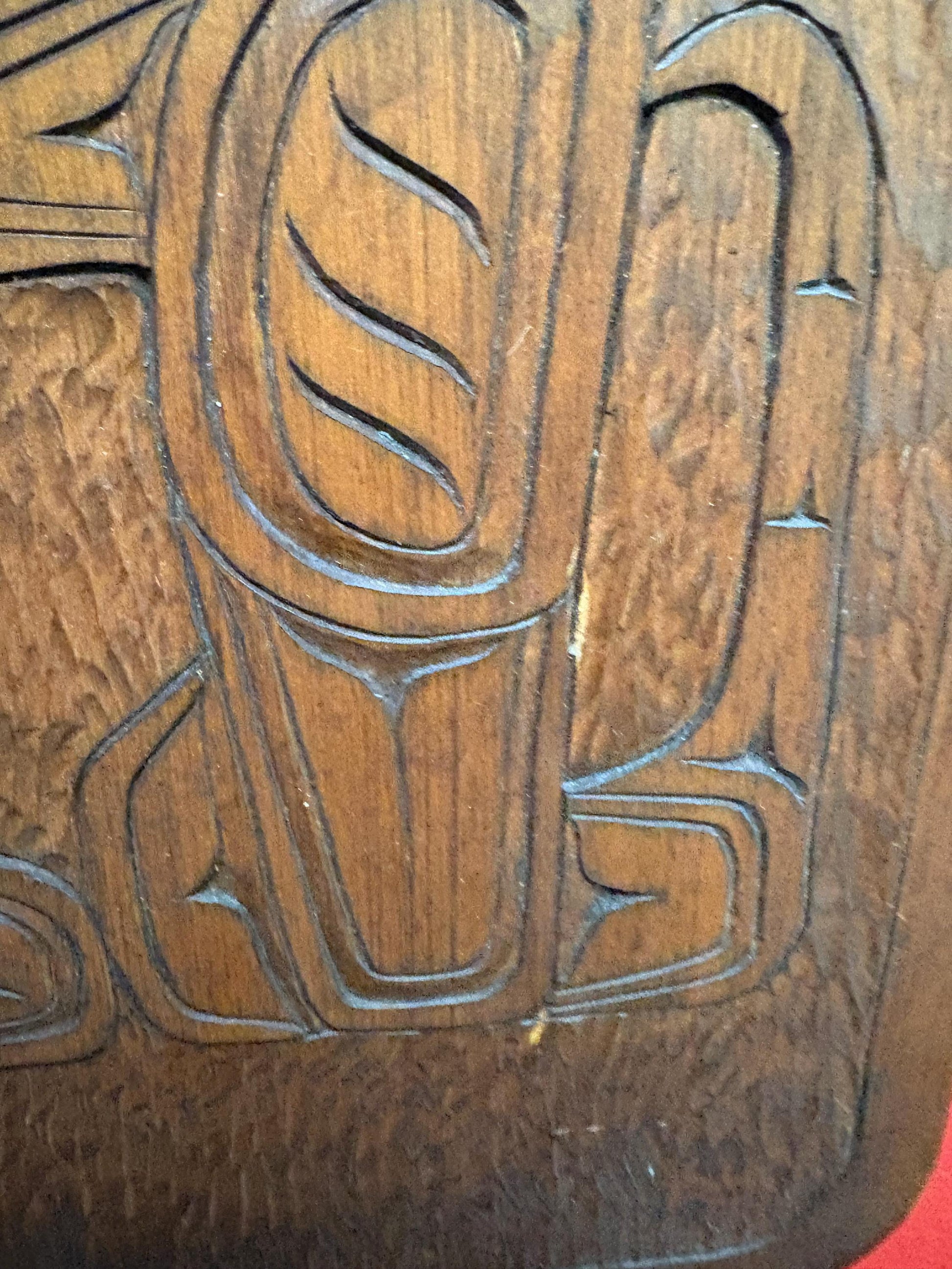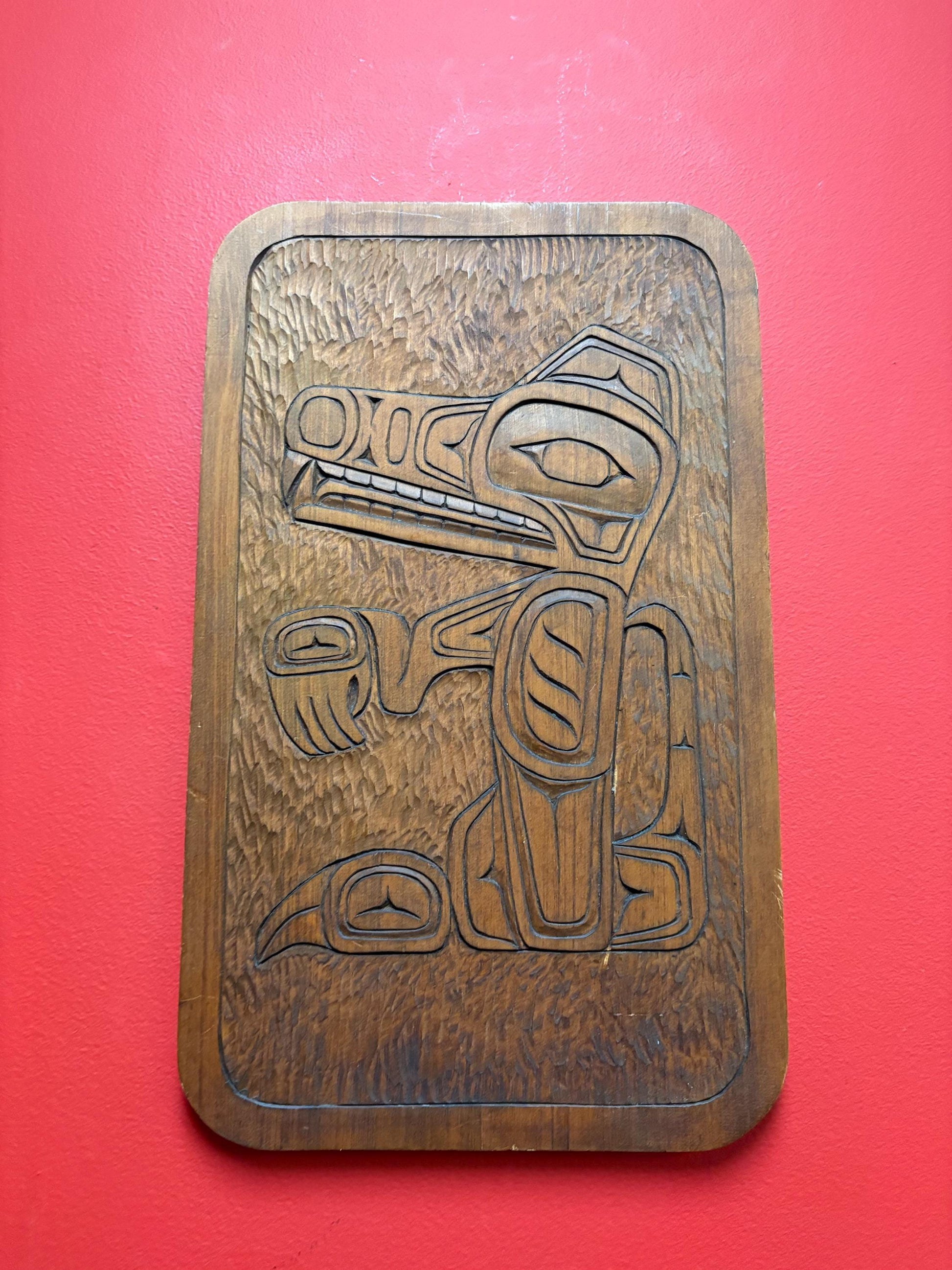 Lovely Indigenous First Nations pacific north west 13 x 11 inch cedar plaque signed Haida wolf great detail and quality ready to hang