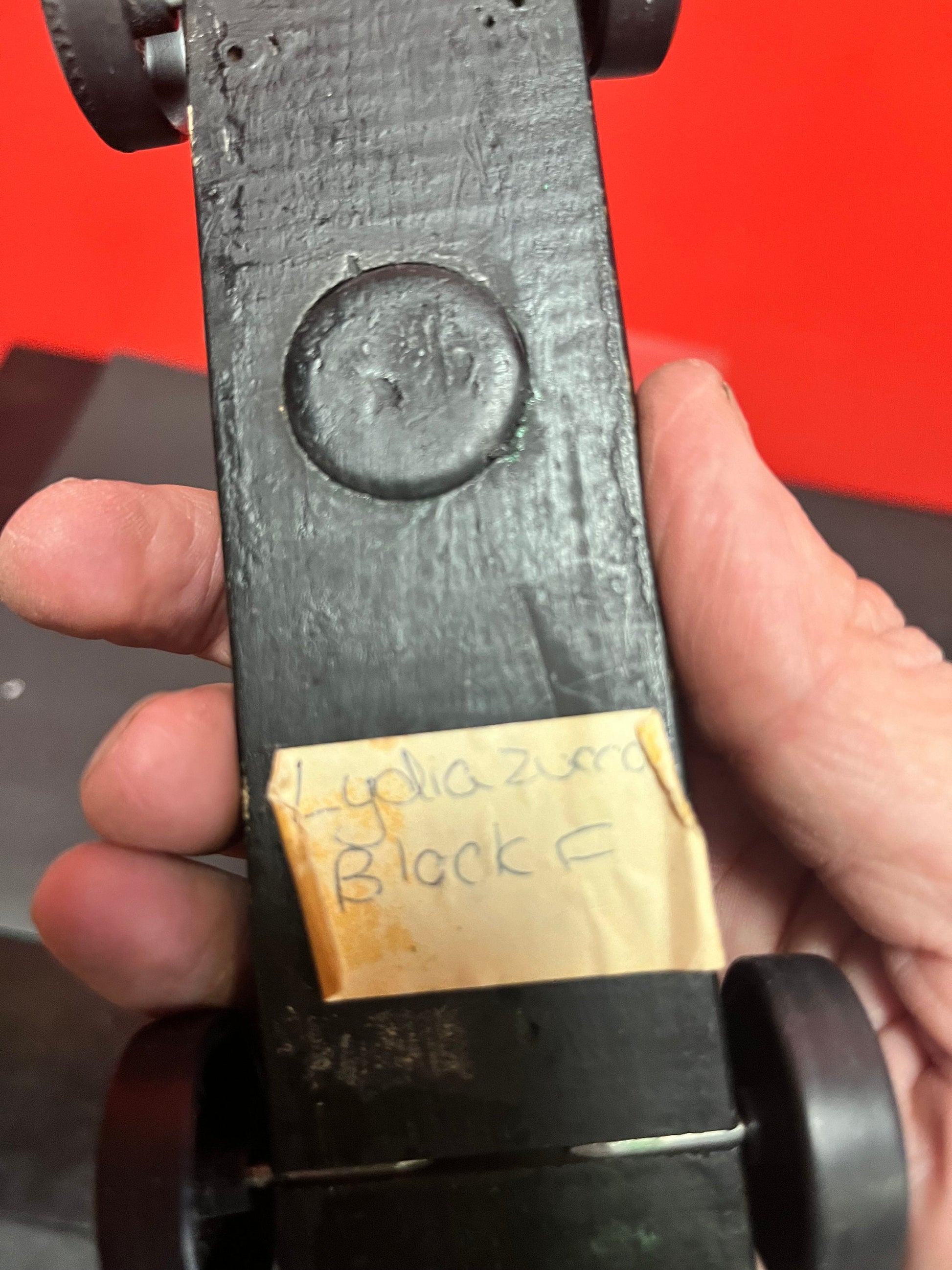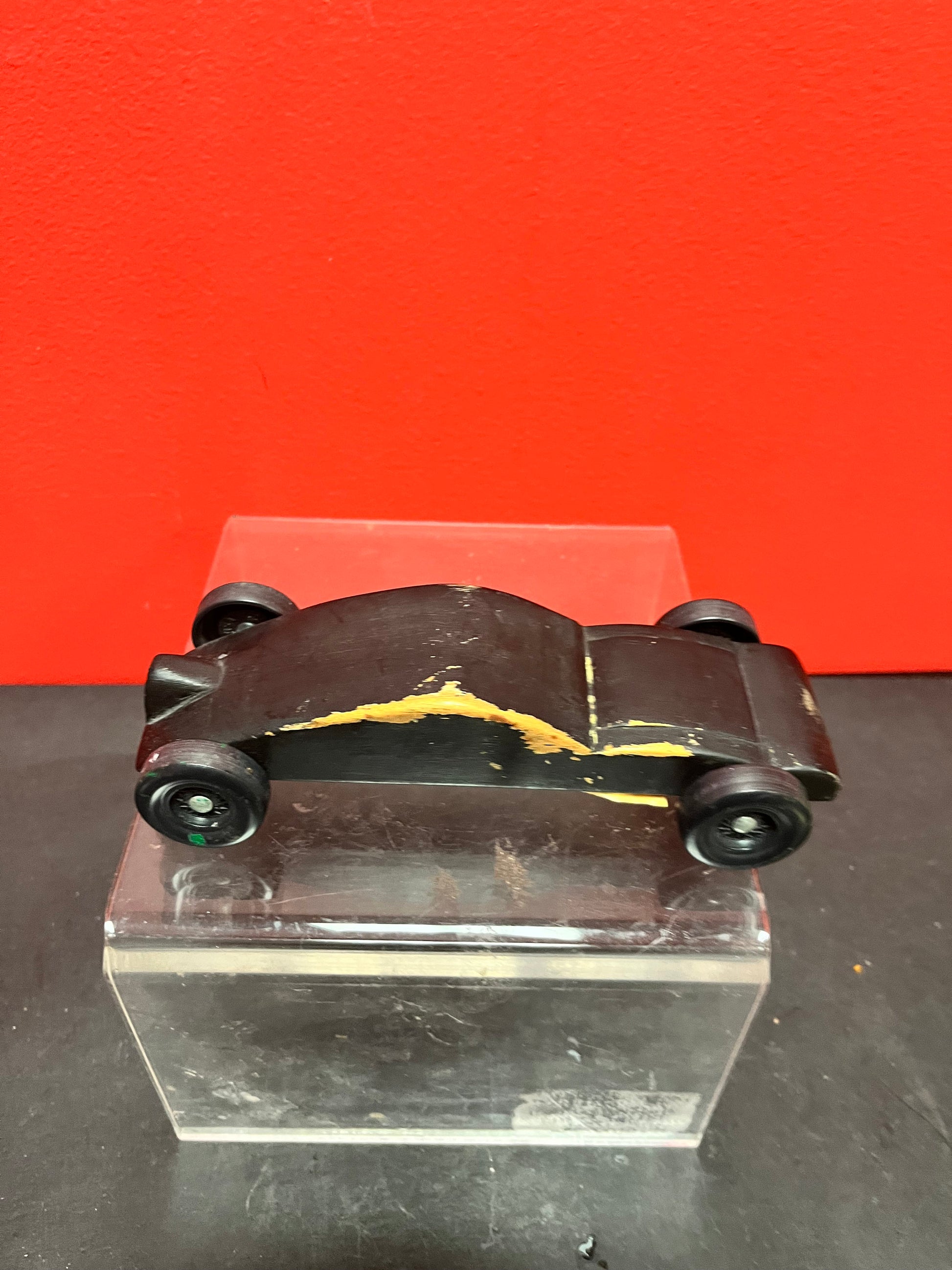 Cool little black wooden car  possibly prison made  7 inches long