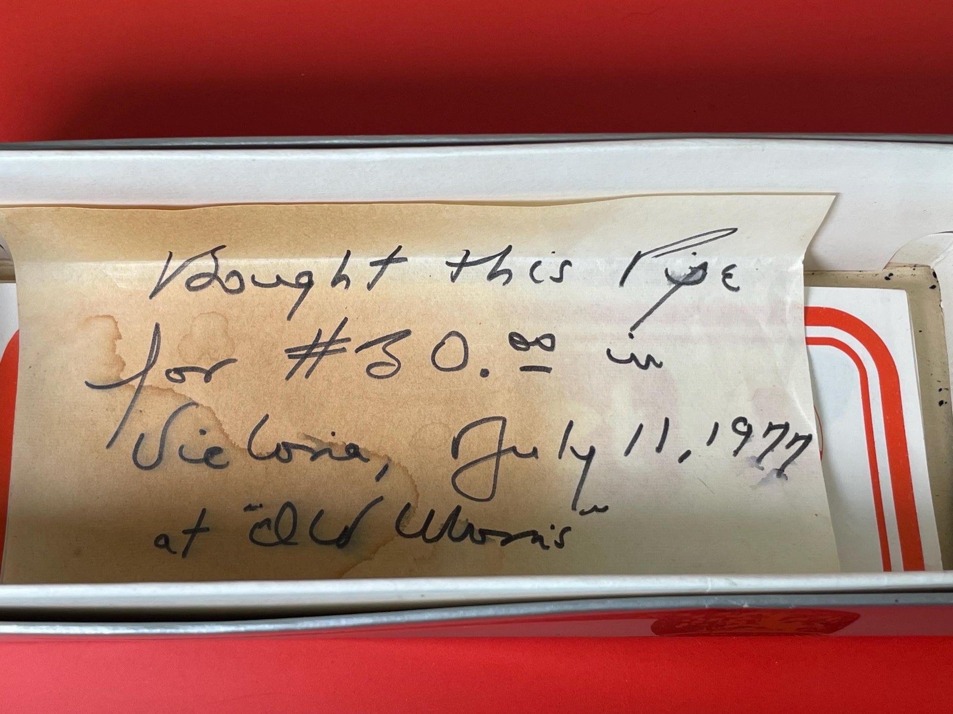 This pipe contains a note that it was originally purchased in 1977.