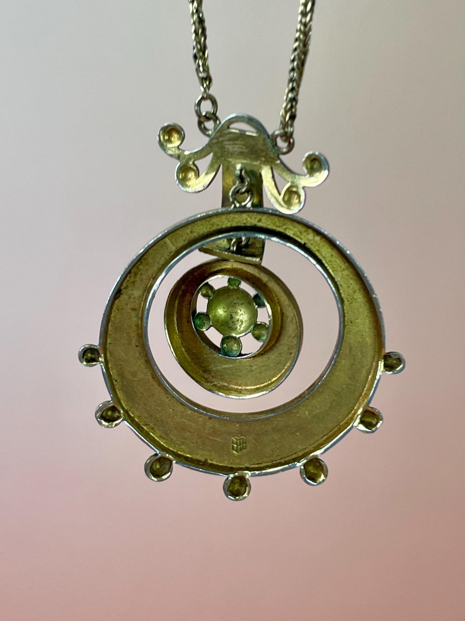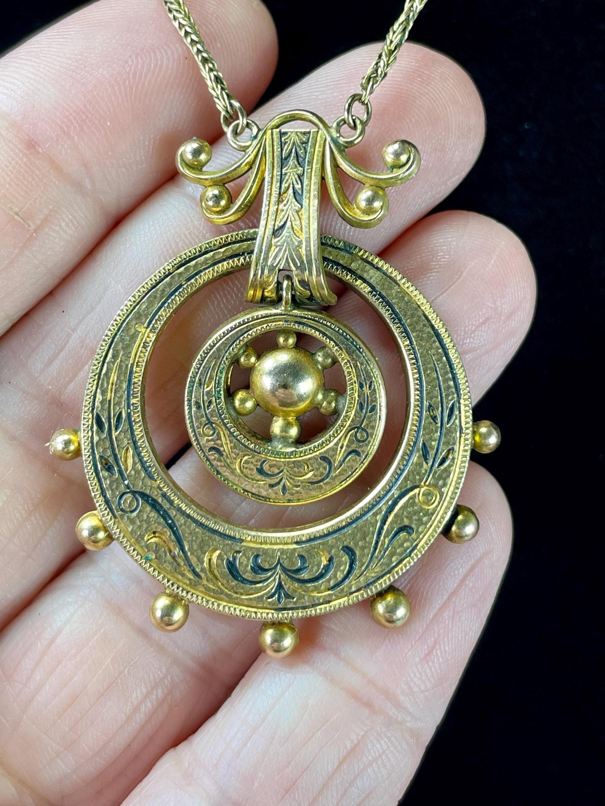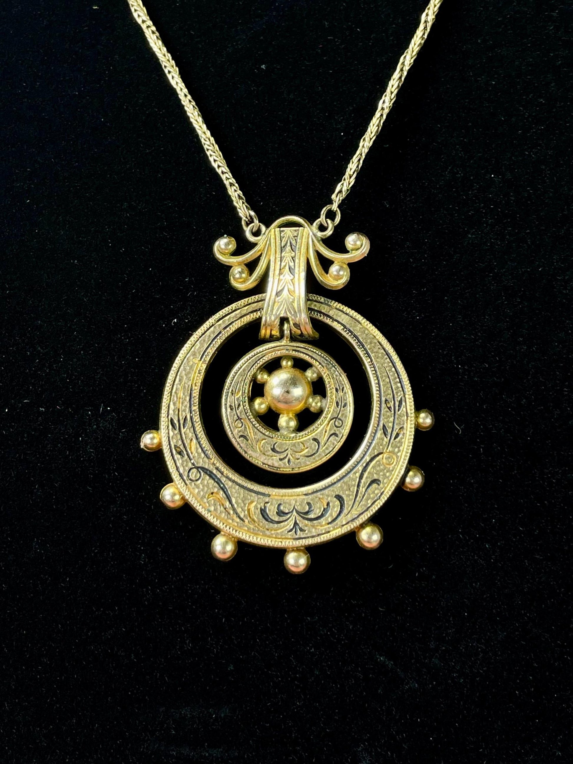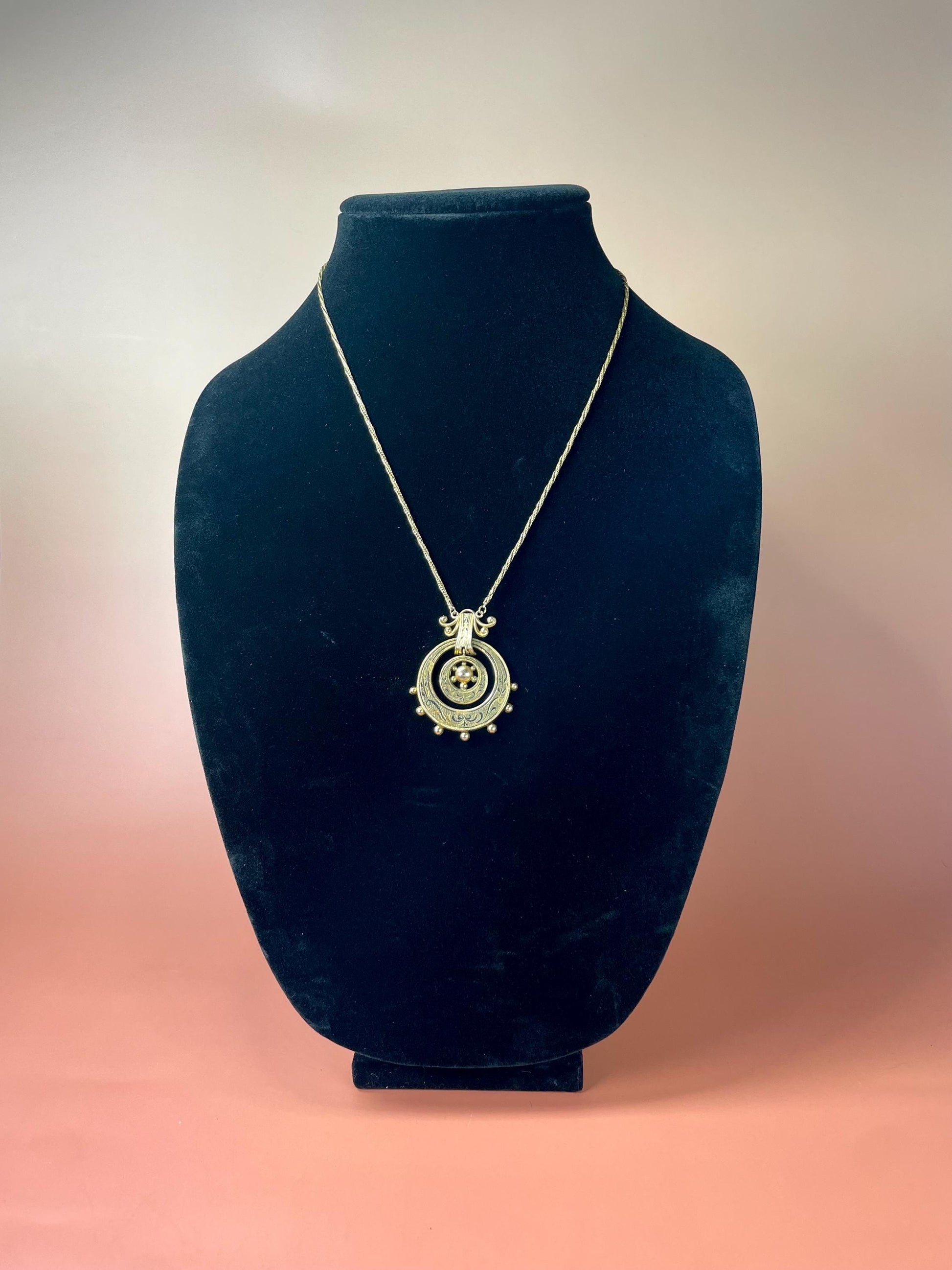Beautiful delicate gold-tone pendant featuring lovely etched scroll designs.