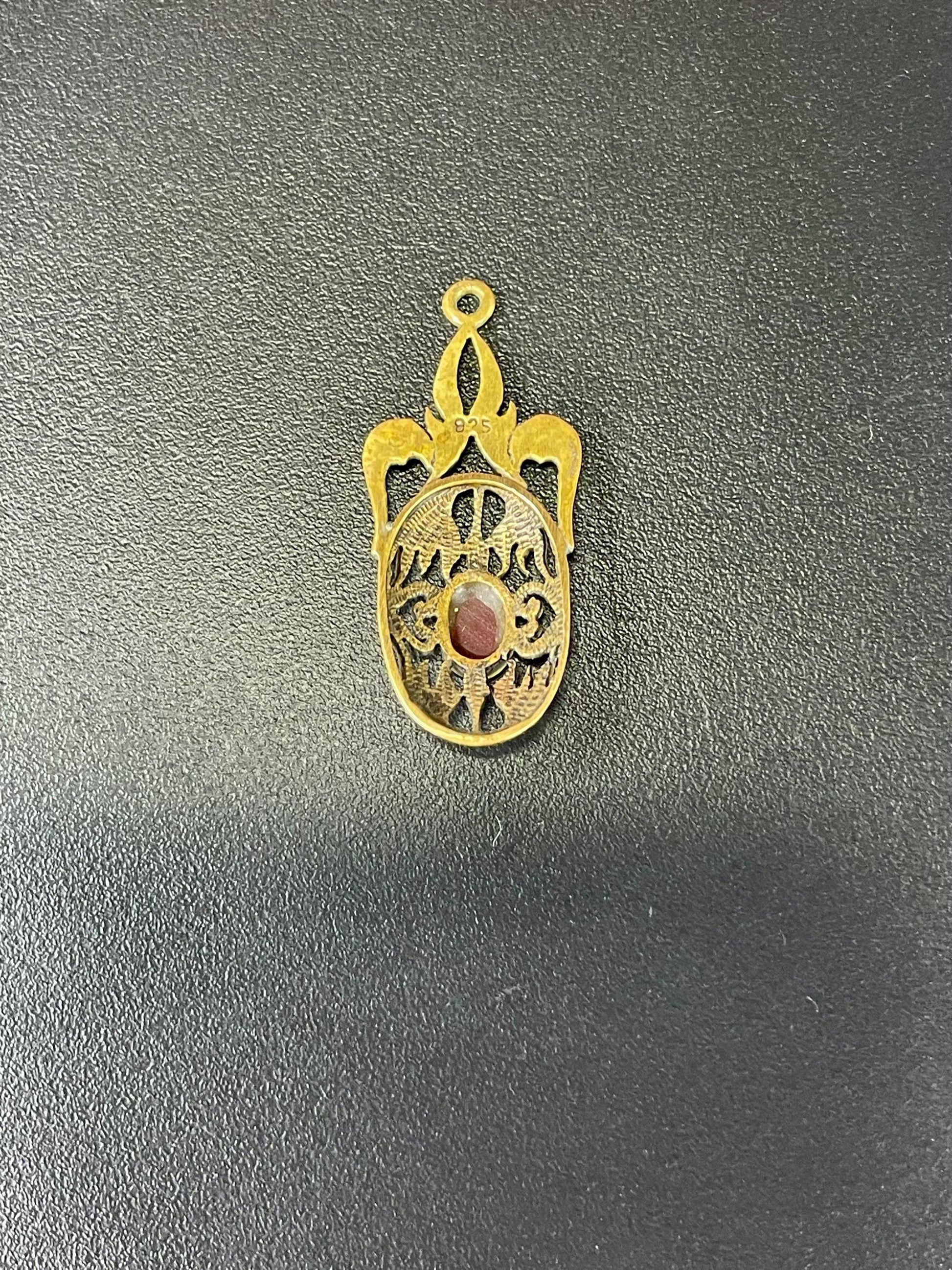 Beautiful delicate brass-tone pendant featuring a glossy red center.