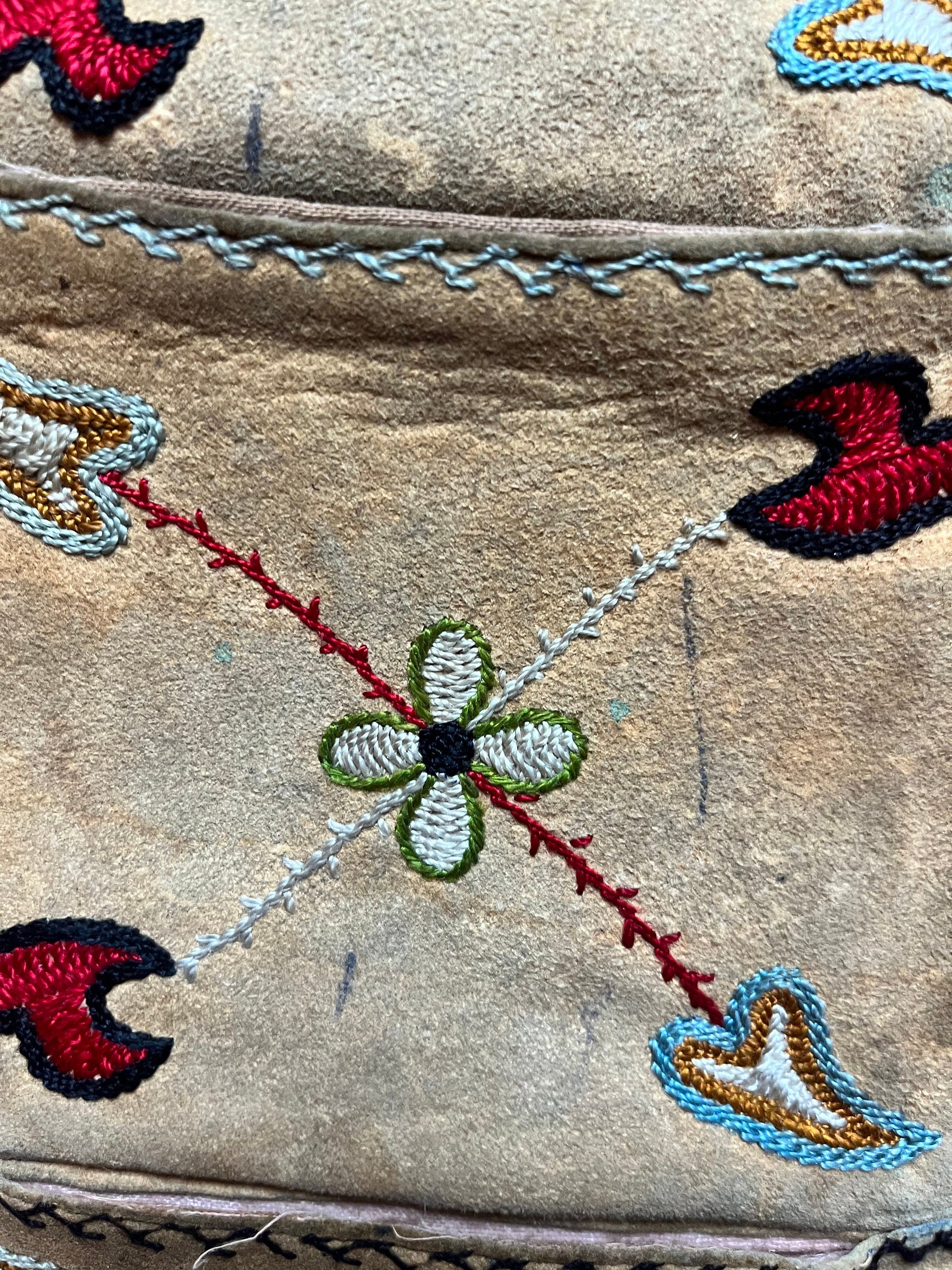 Early indigenous leather and sewn spices and medicine pouch 18 x 9 inches - late 1800s Indigenous First Nations northwest coast