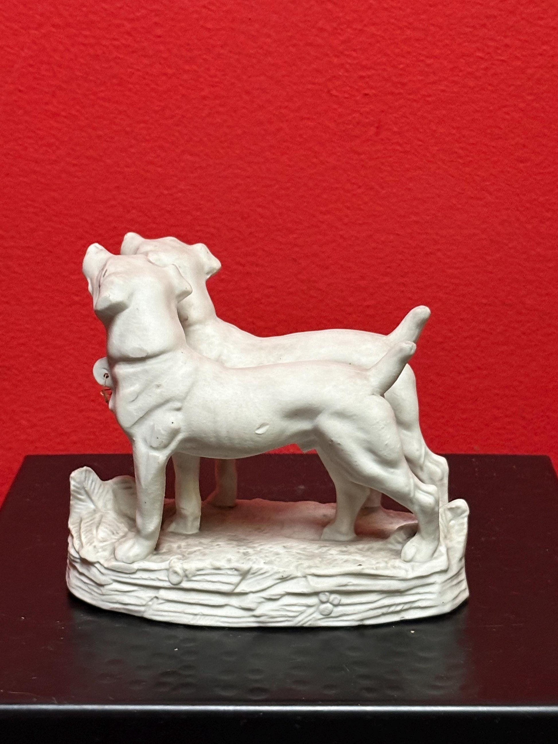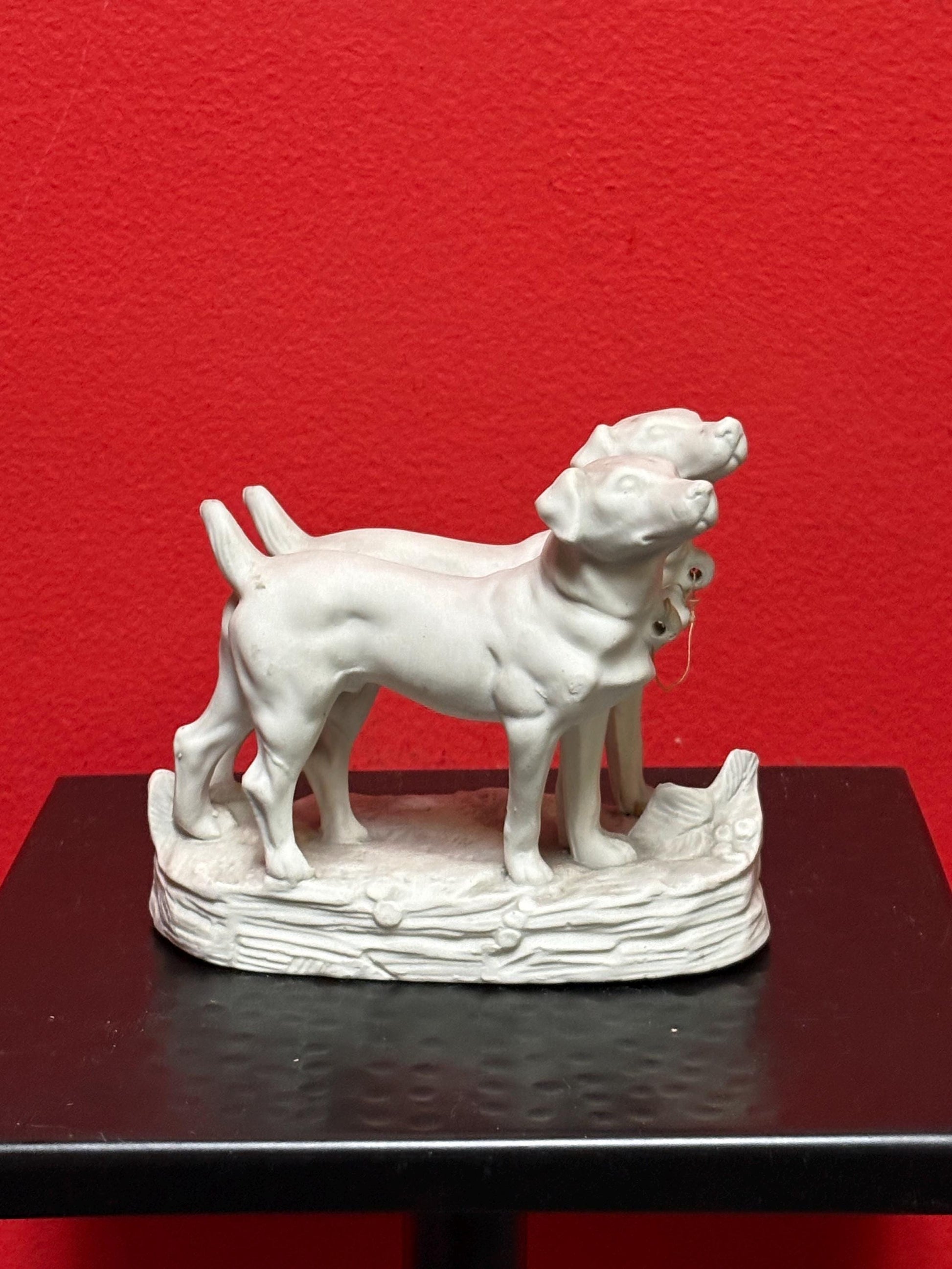 English antique BISQUE 5 x 5 inch statue of hunting dogs in perfect condition -