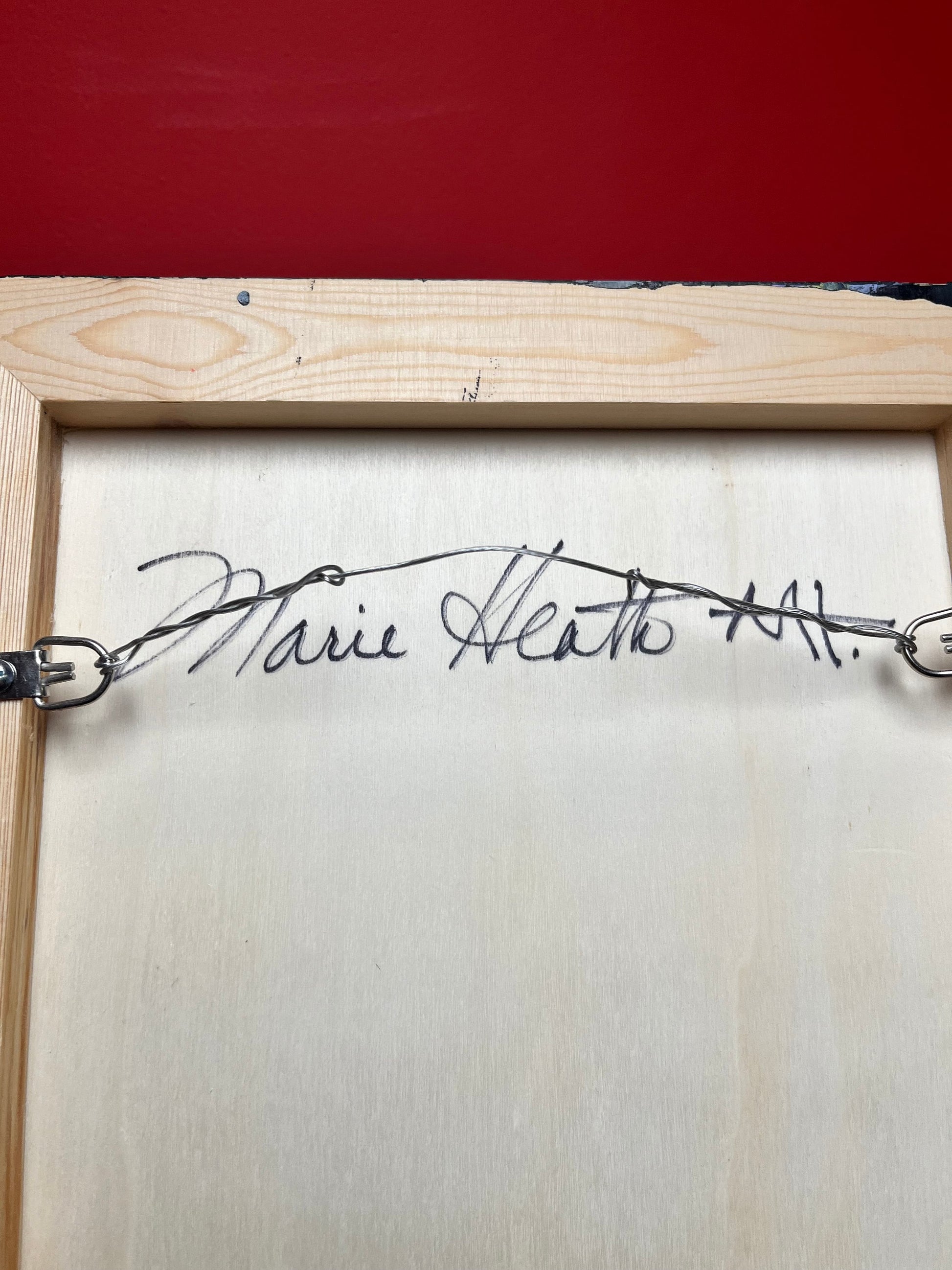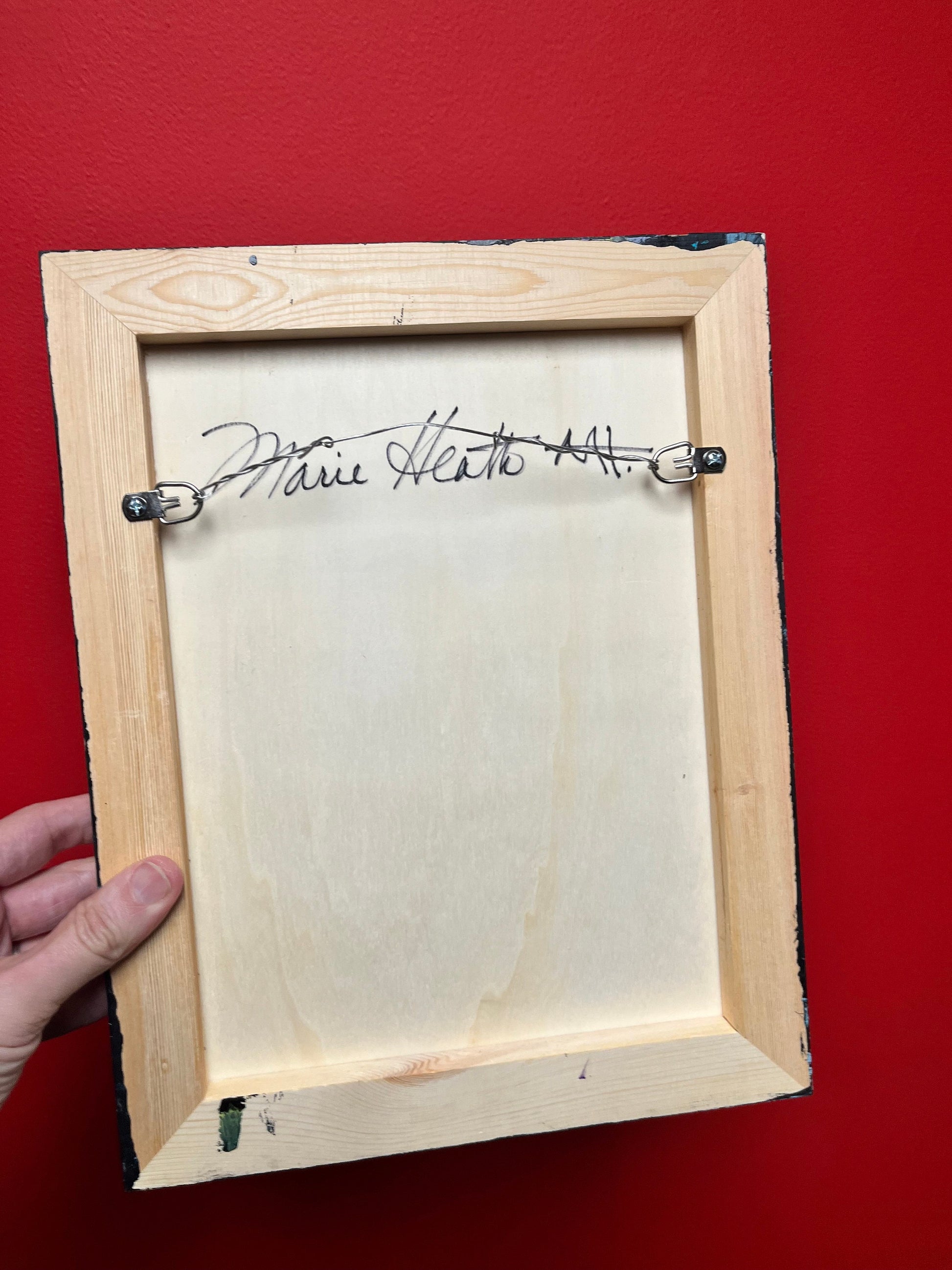 Exquisite 14 x 11“ well-known Vancouver Island artist Marie Heath untitled abstract of a chair gorgeous acrylic on wood great detail