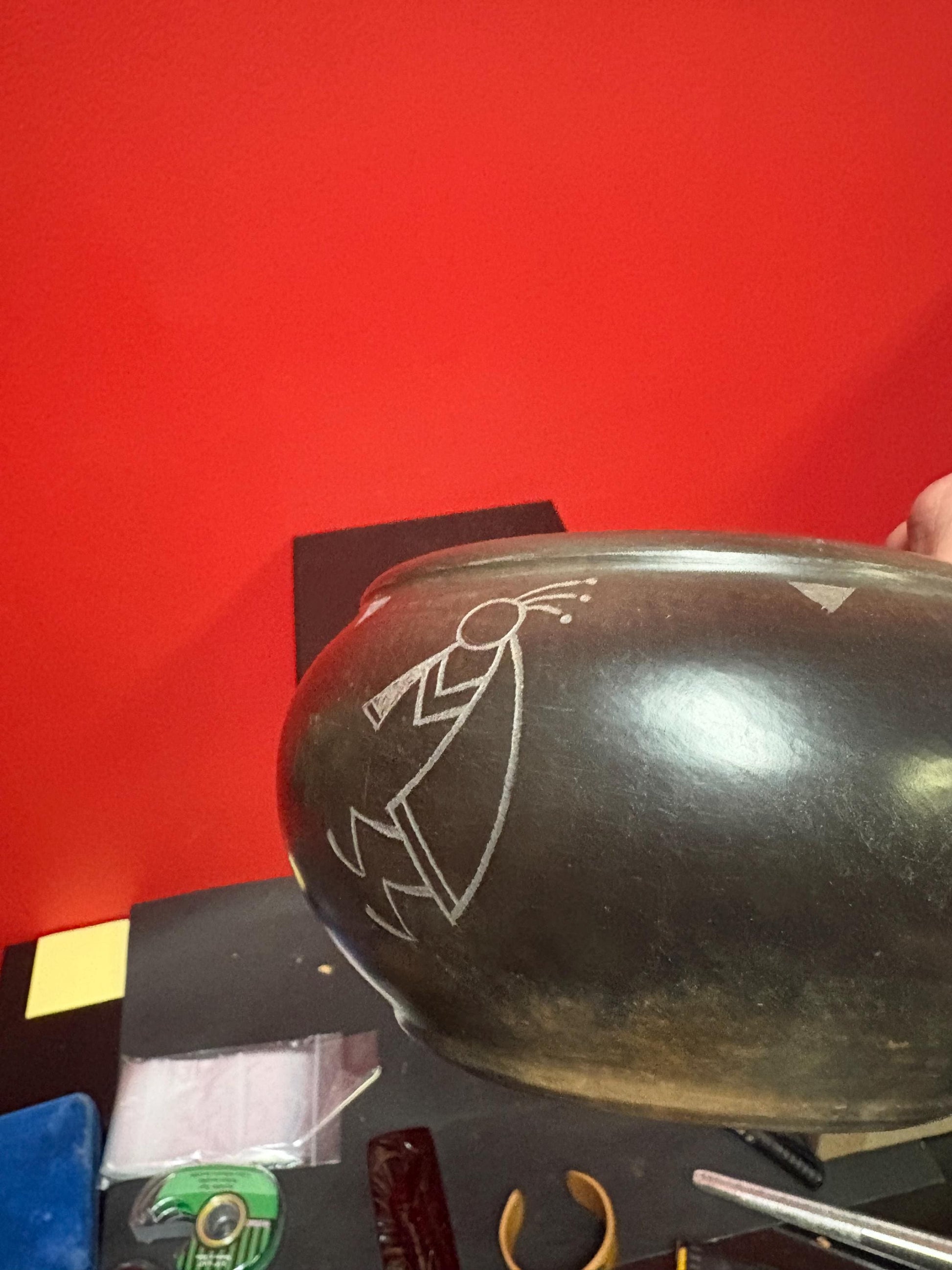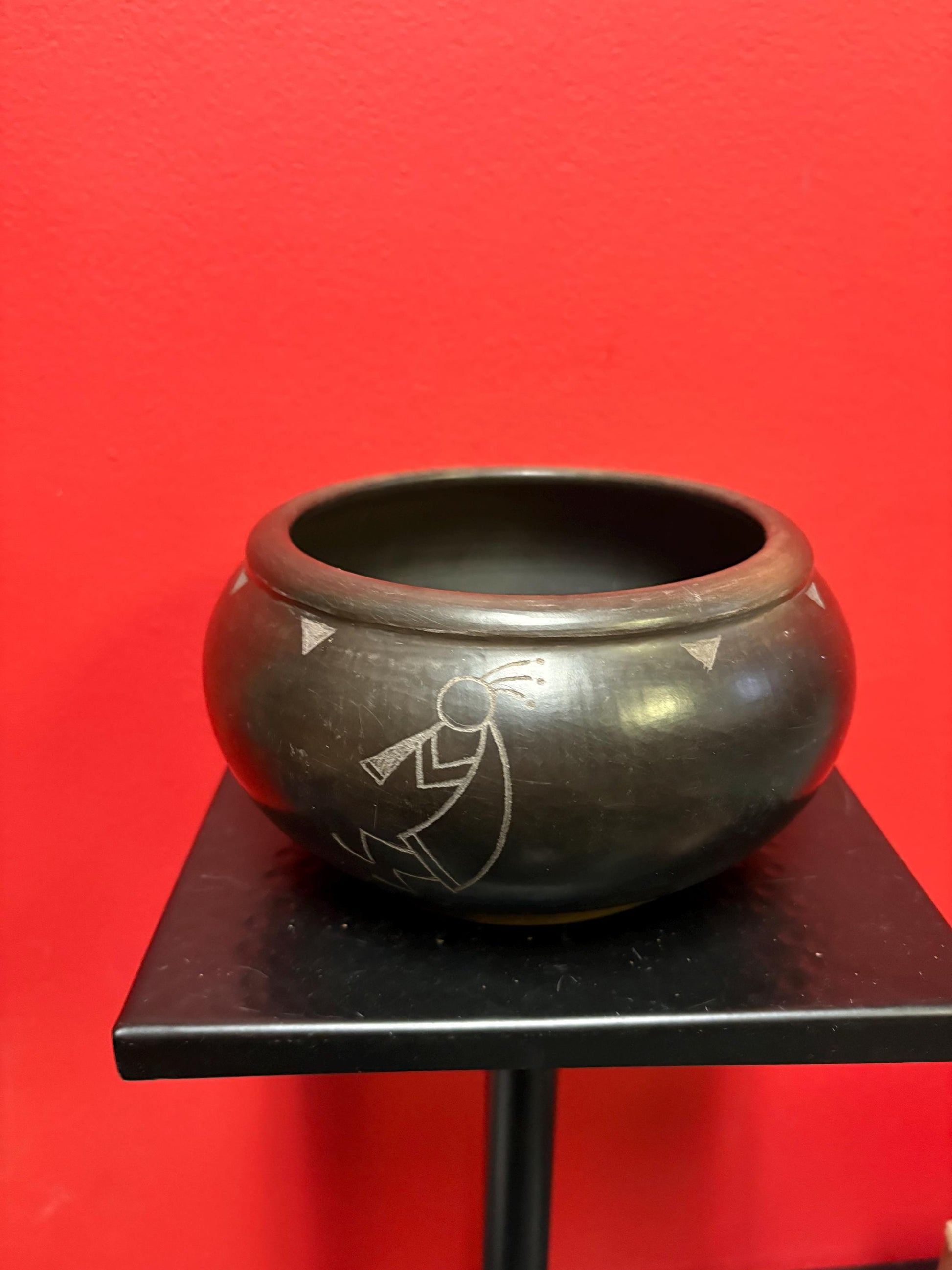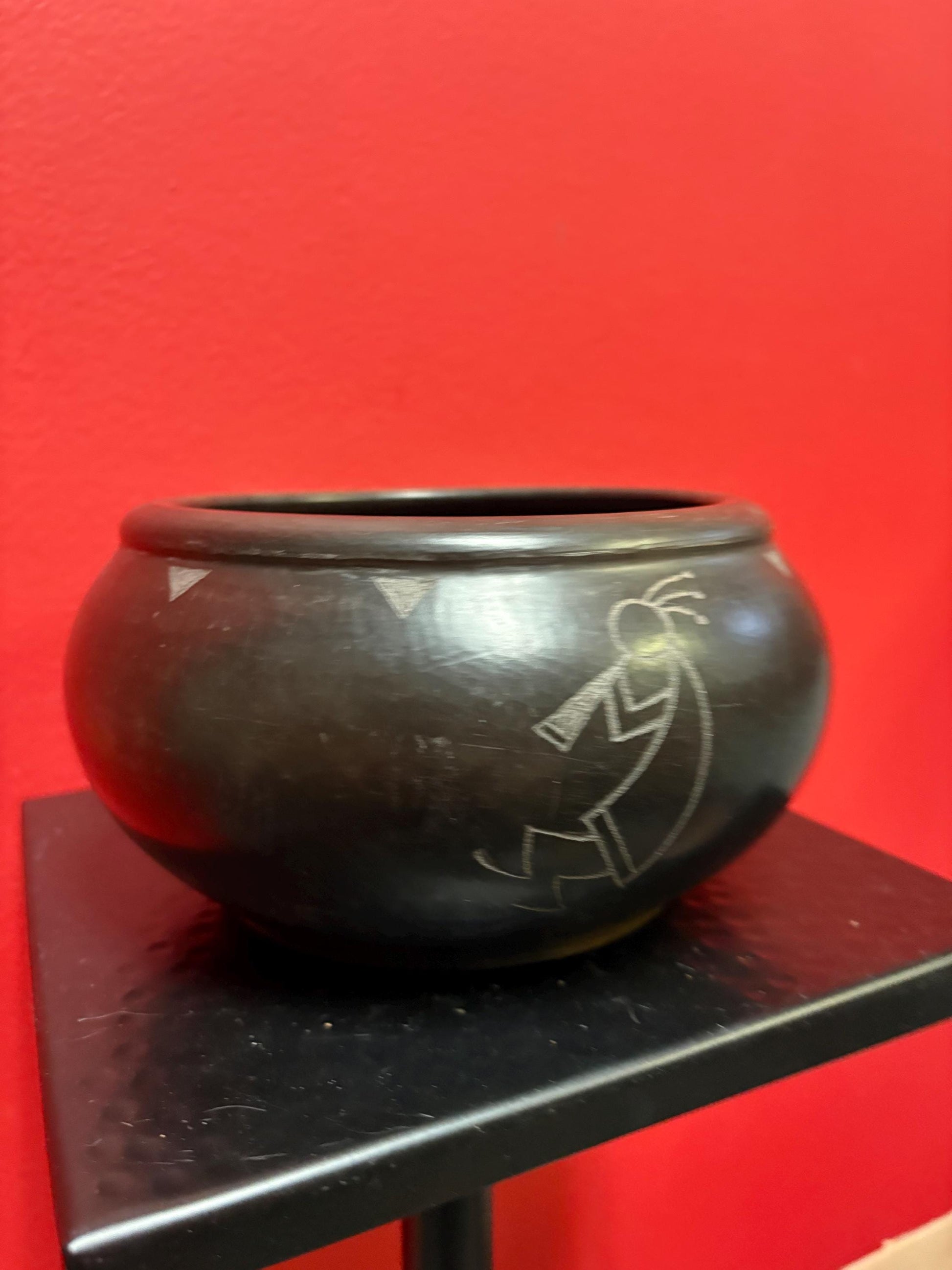 Exquisite 5 1/2 x 4 high antique Navajo Hopi handmade pottery bowl wonderful imagery and top quality southwestern American Navajo art