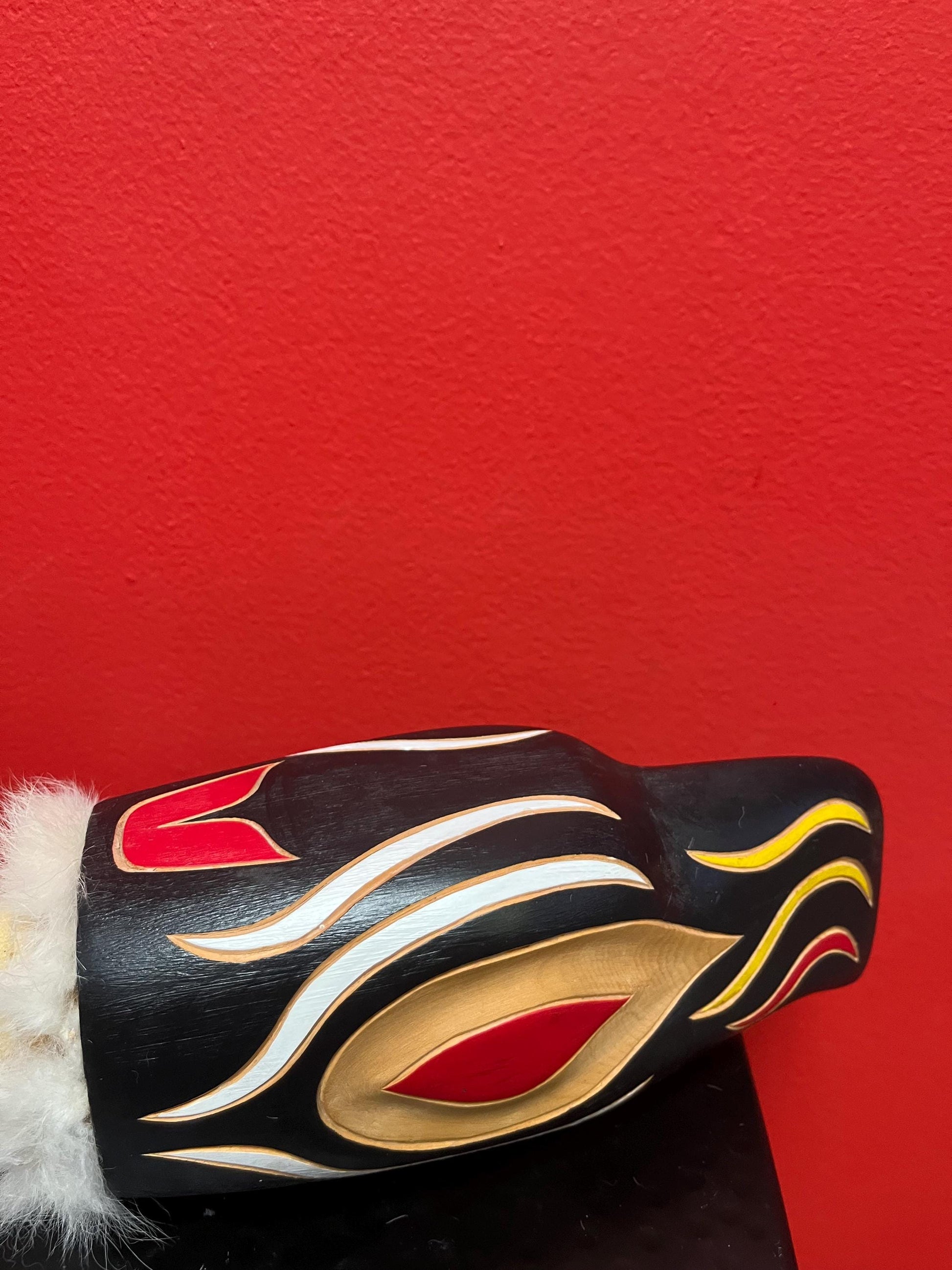 Fabulous 11 x 4 high signed indigenous first nations Pacific northwest coast rattle amazing detail and great sound one of a kind