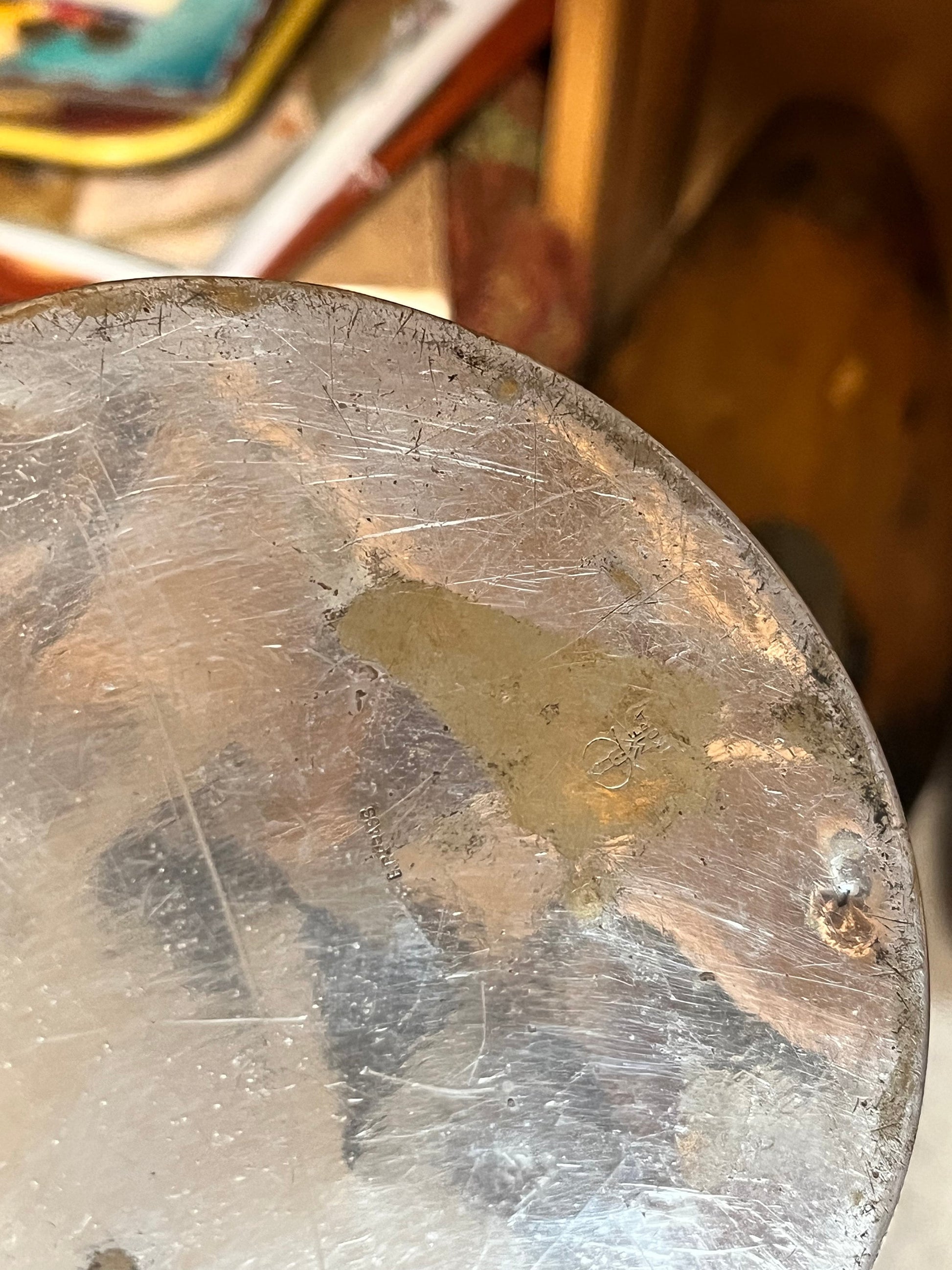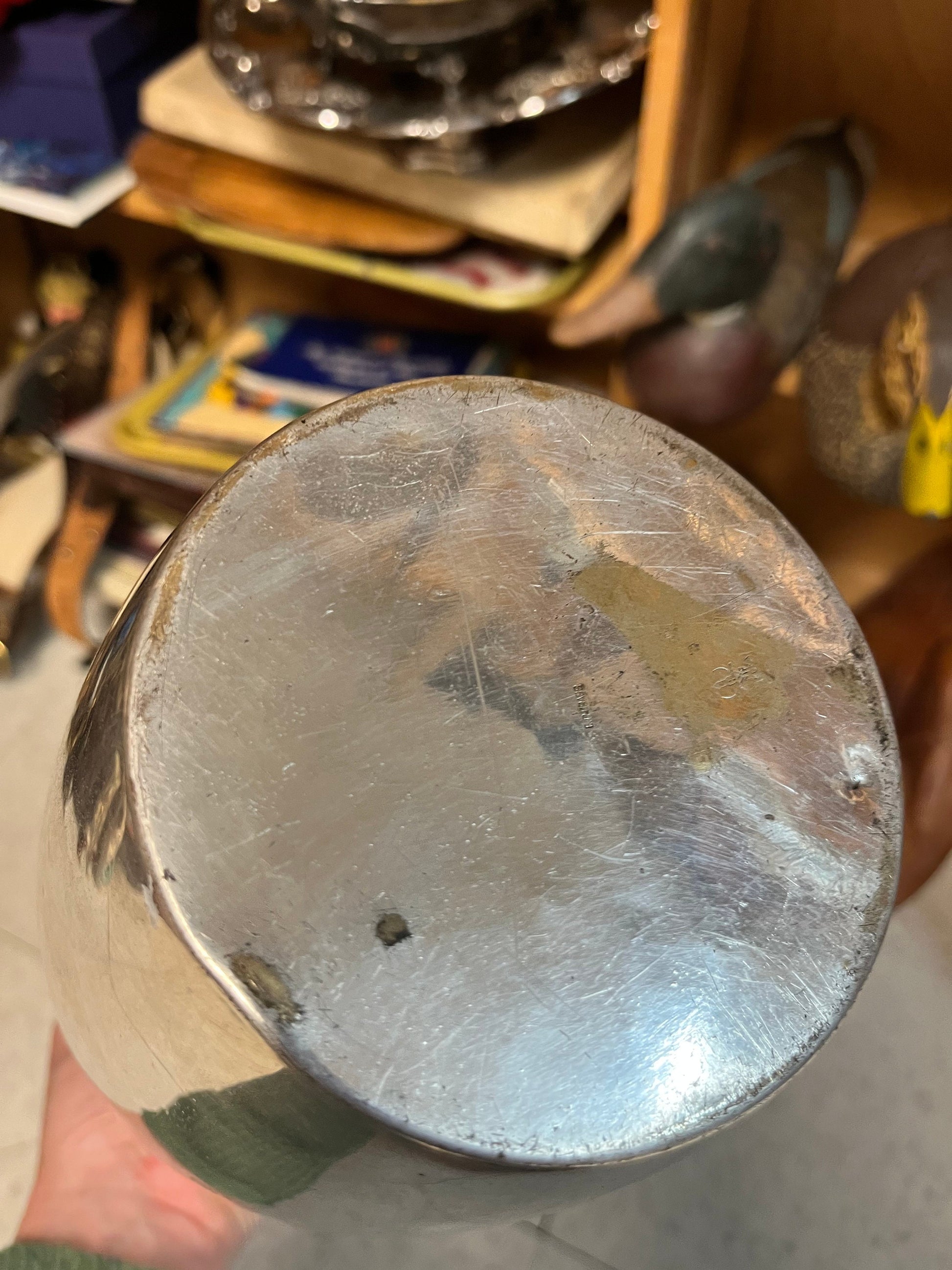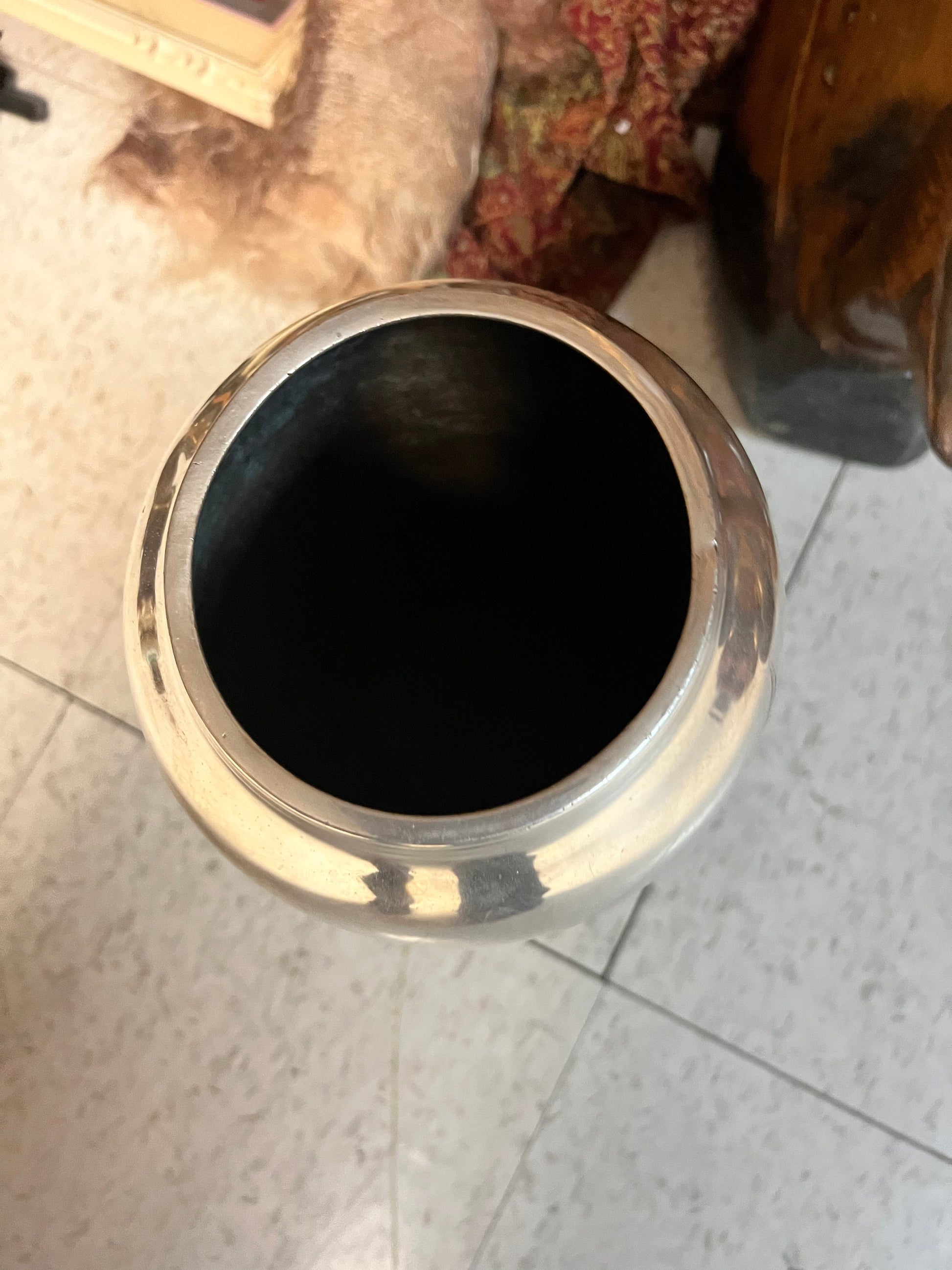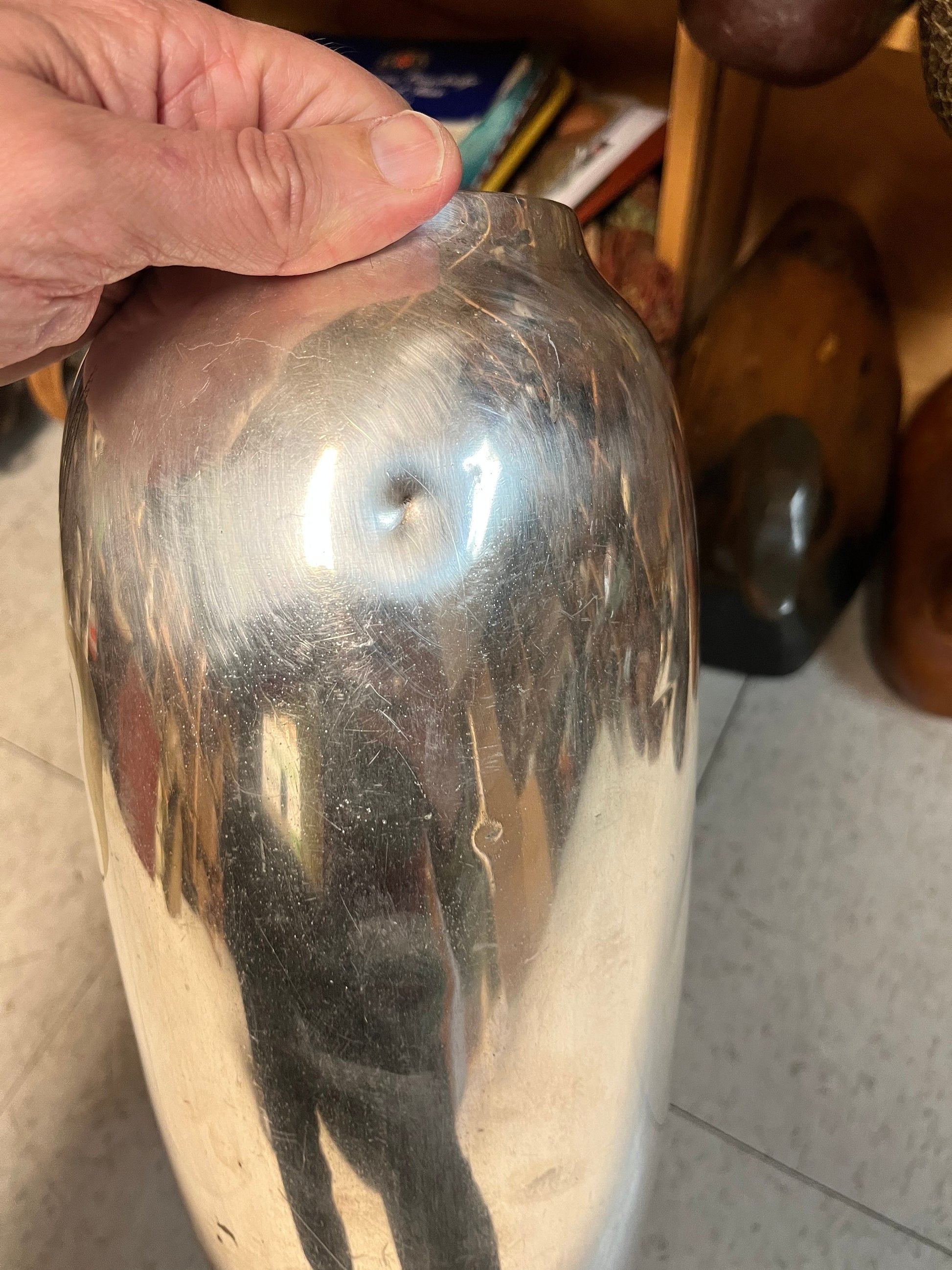 Fabulous 13 inch tall brass and silver plate WMF Ikora Iris vase one dent