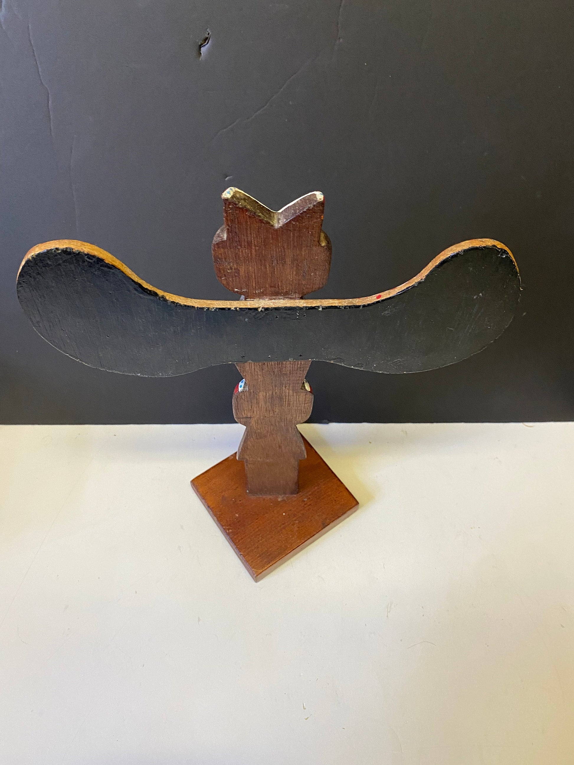 Fabulous 15 x 10 inch hand-painted folk art Indigenous totem pole on stand Unsigned Canadian beauty