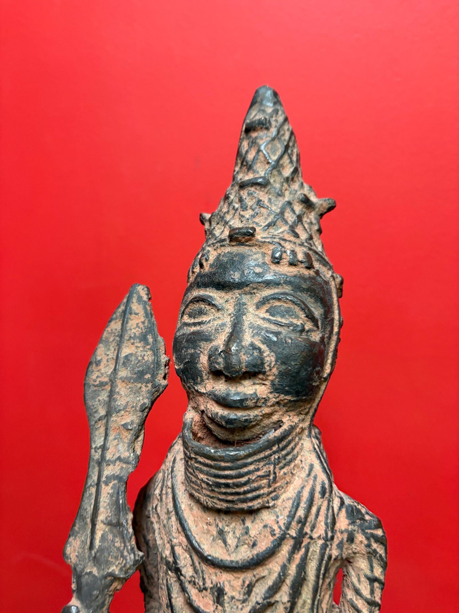 Fabulous 17.5 inch high antique African BENIN bronze statue of a male warrior fabulous patina and 5.7 kg well detailed Benin bronze -
