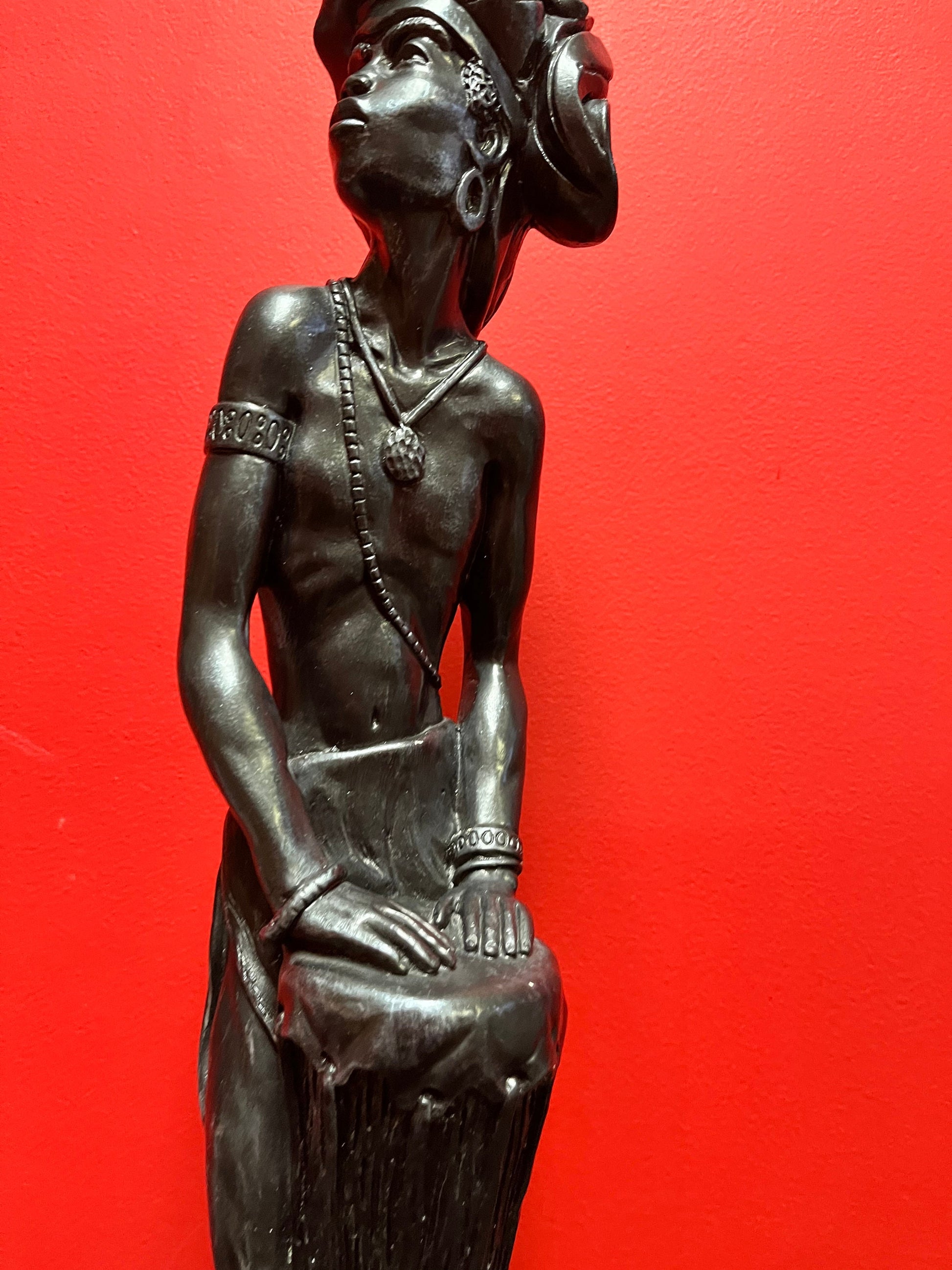 Fabulous 26 x 7 wide bronze spelter African statue of a drummer
