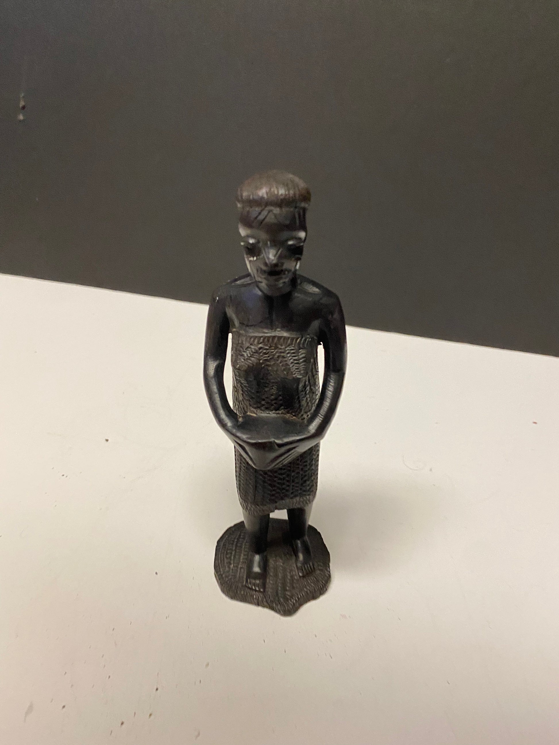 Fabulous 7 inch West African carved wooden statue of a woman well modelled wow