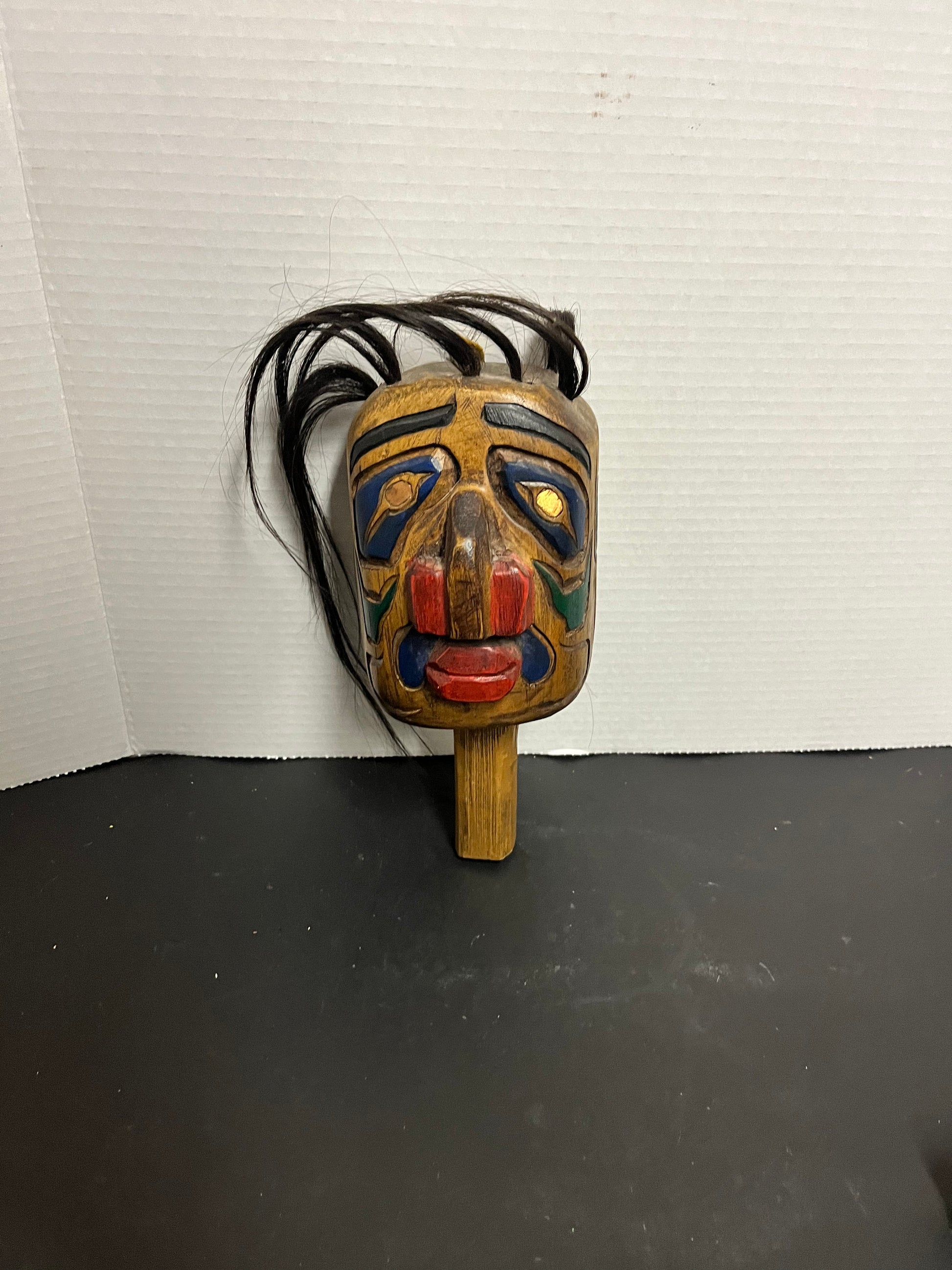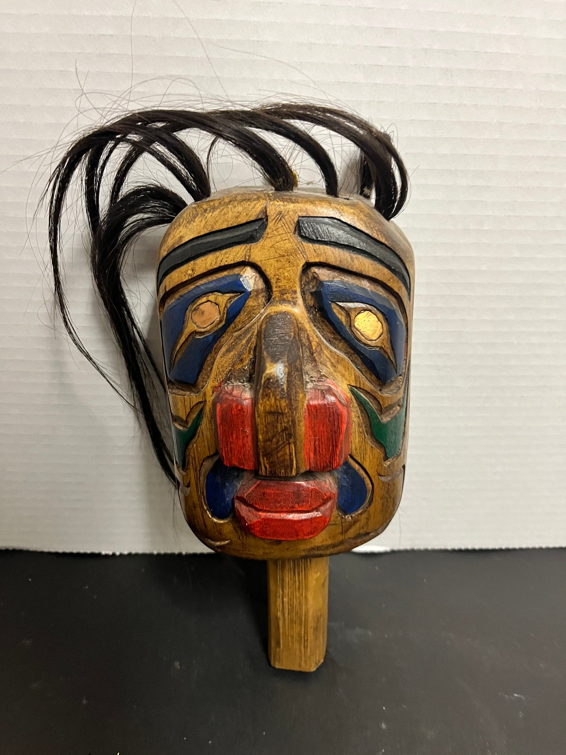 Fabulous 7 x 4 indigenous first nations pacific northwest coast signed cedar polychrome painted Rattle great sound wow wow