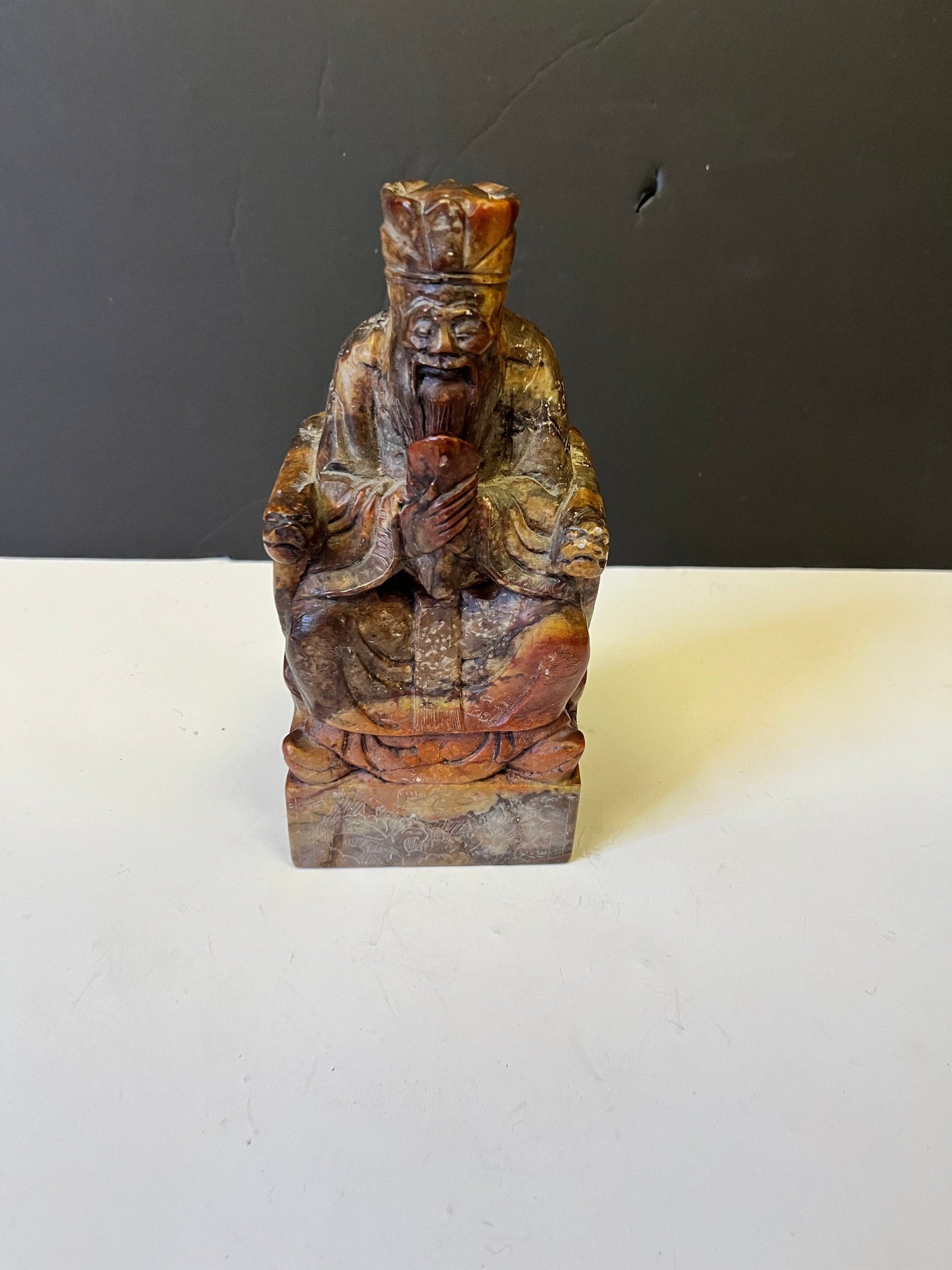 Fabulous 8 x 3 x 2 deep old Chinese soapstone emperor statue Heavy and in perfect condition wow wow