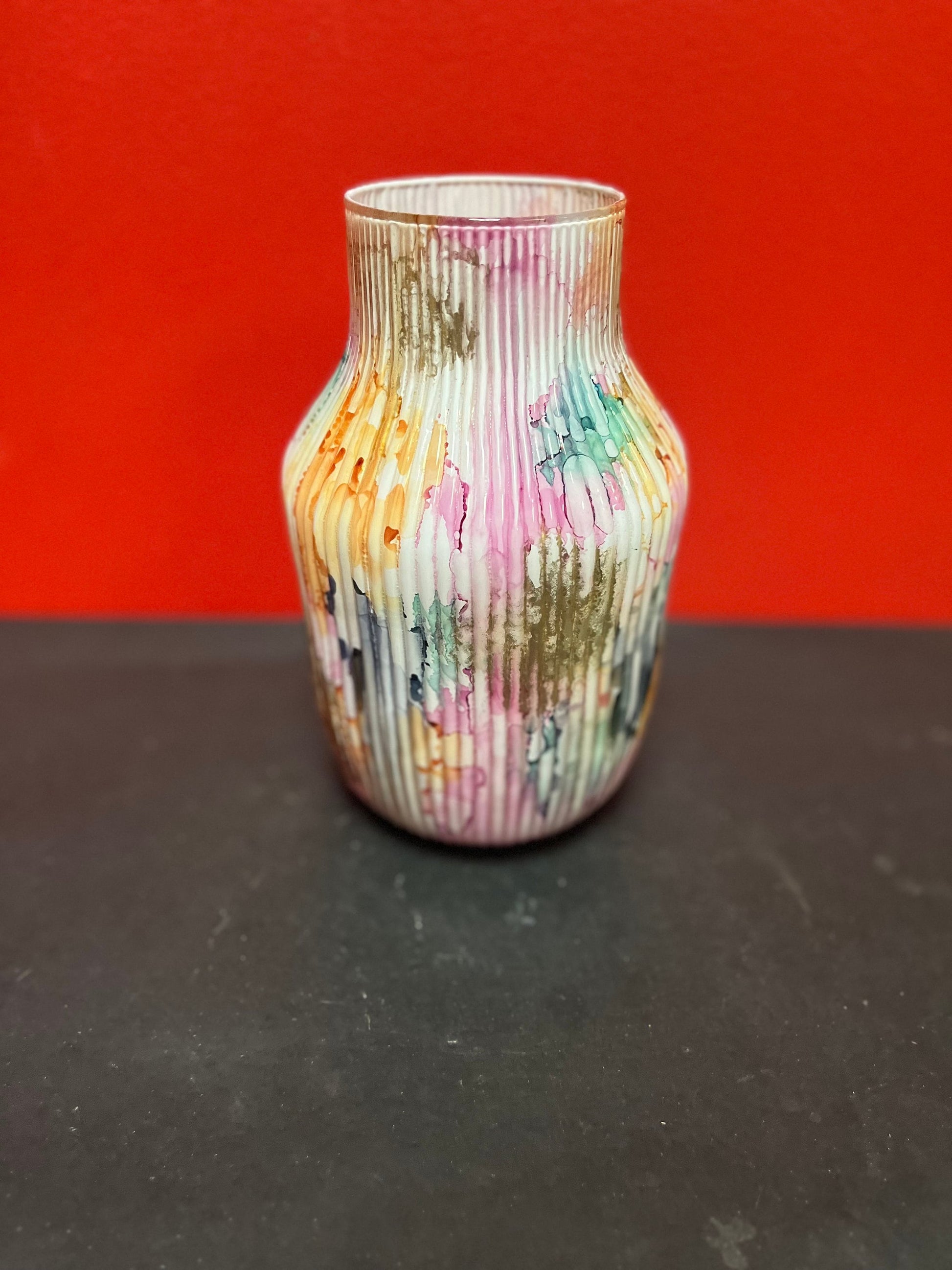 Fabulous 9 inch tall European style handblown glass vase perfect condition