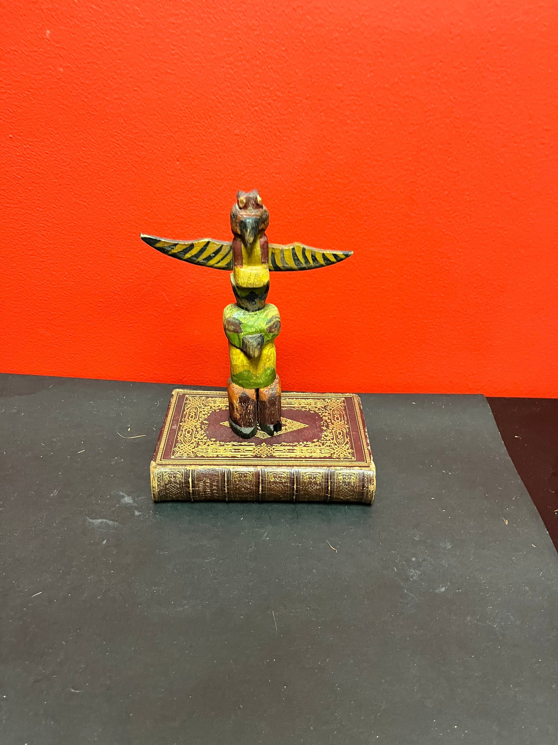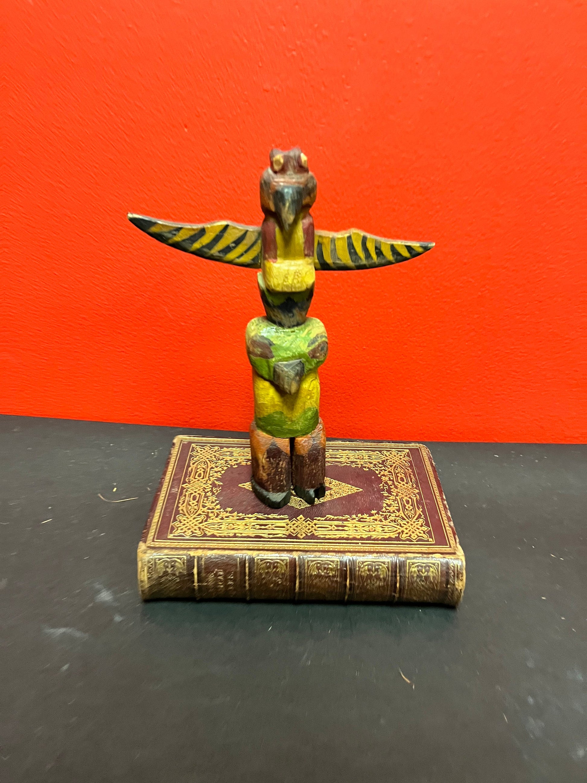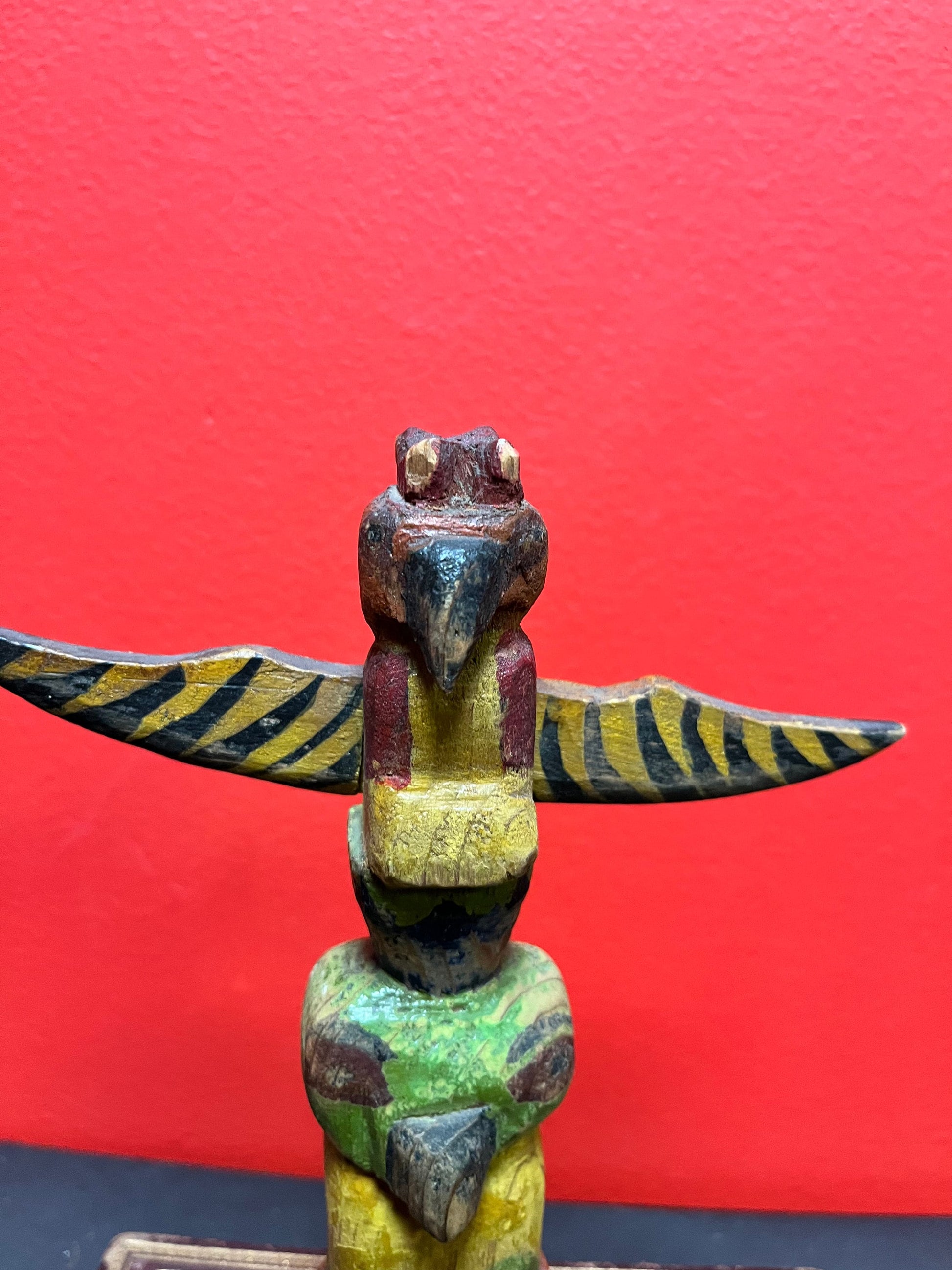 Fabulous antique 7 1/2 x 6 wide indigenous first nations pacific northwest coast polychrome totem super old and rare signed