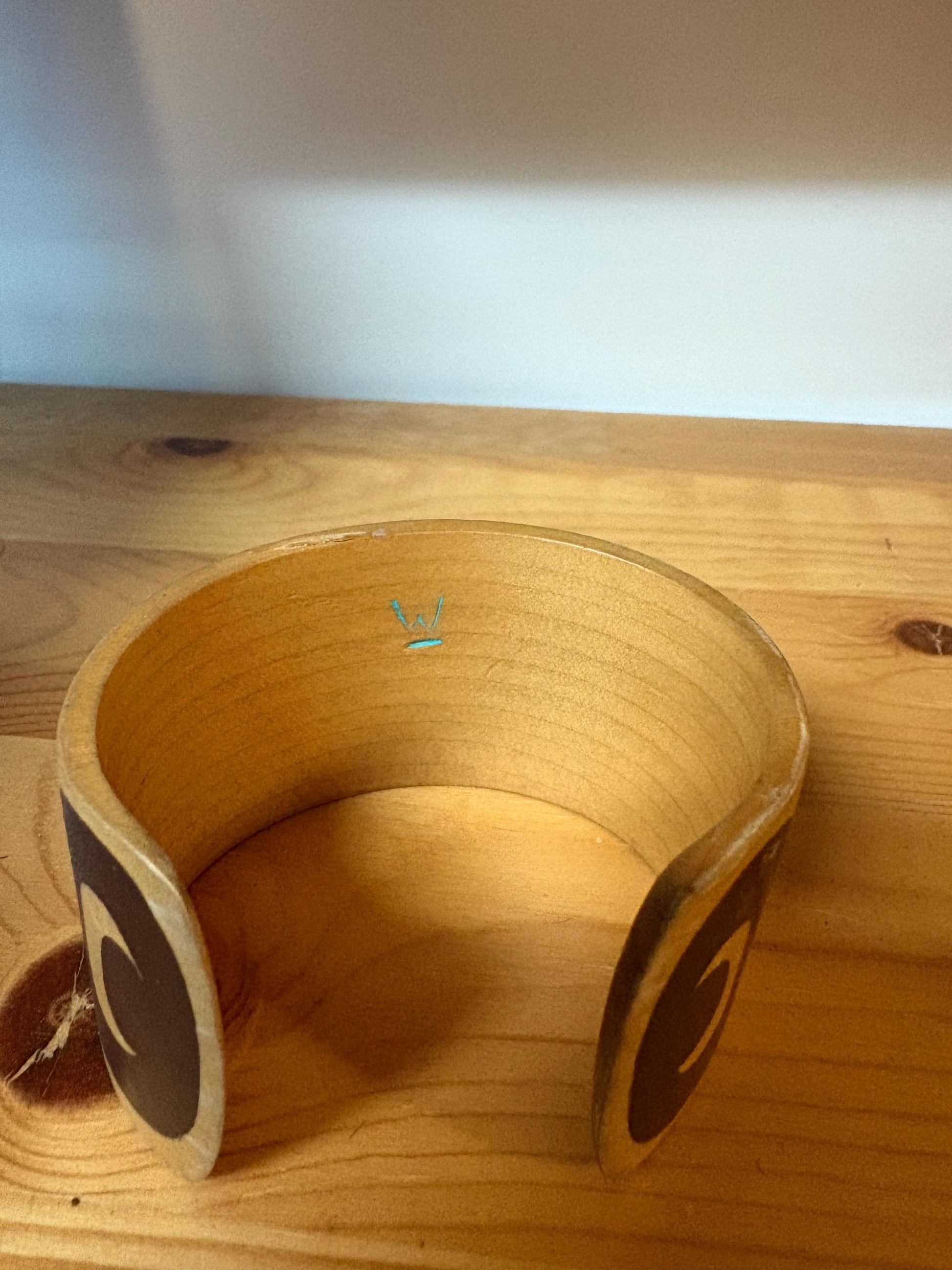 Fabulous indigenous first nation Pacific Northwest Coast 3 x 2 high signed in detailed Raven bracelet Cuff with abalone eye cedar beauty