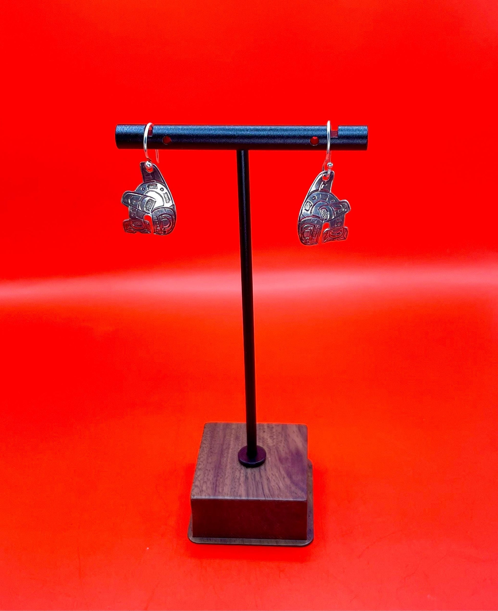 Fabulous indigenous first nations Pacific Northwest coast sterling handmade orca earrings - wow best gift 1.25 inches long