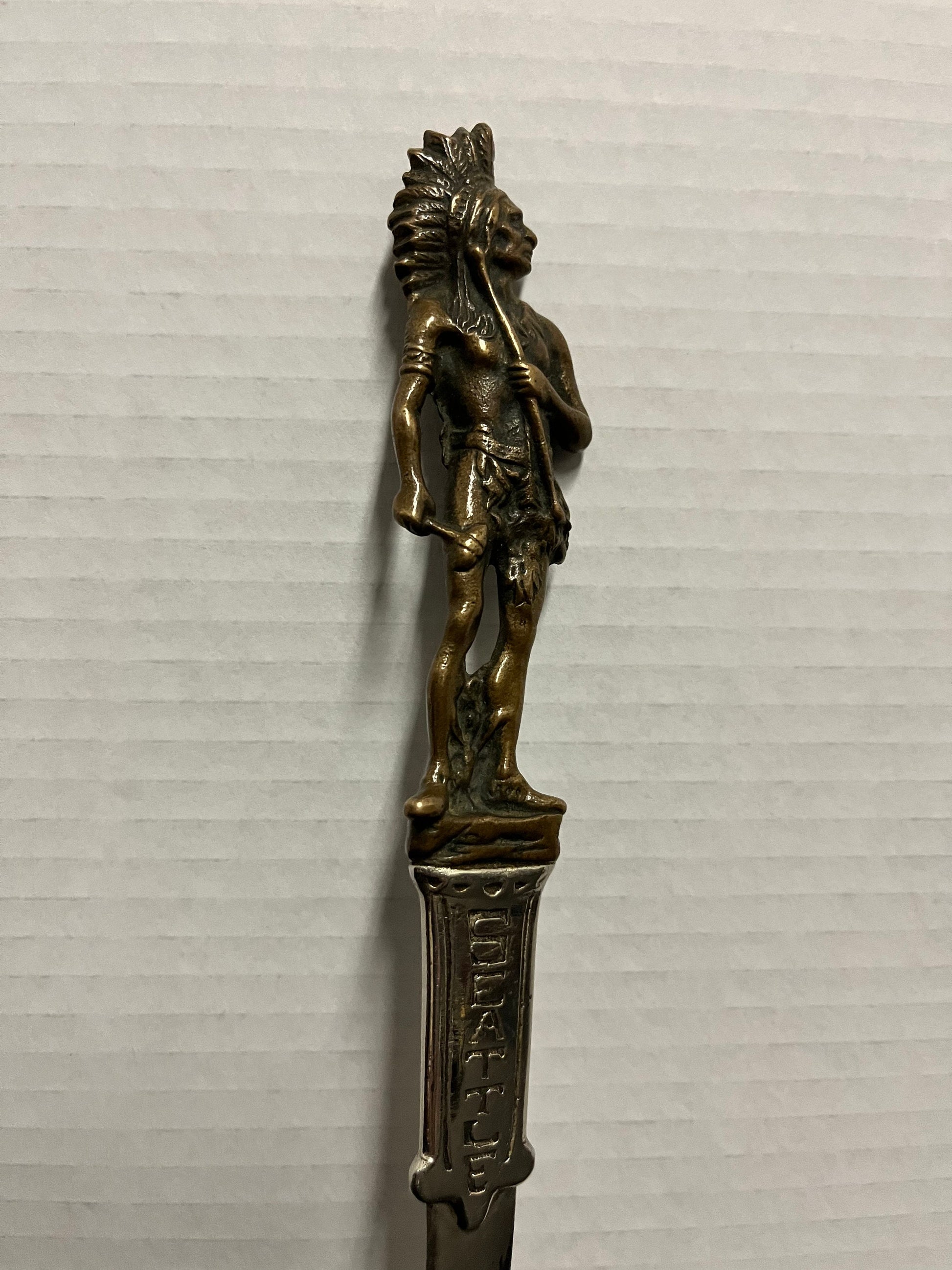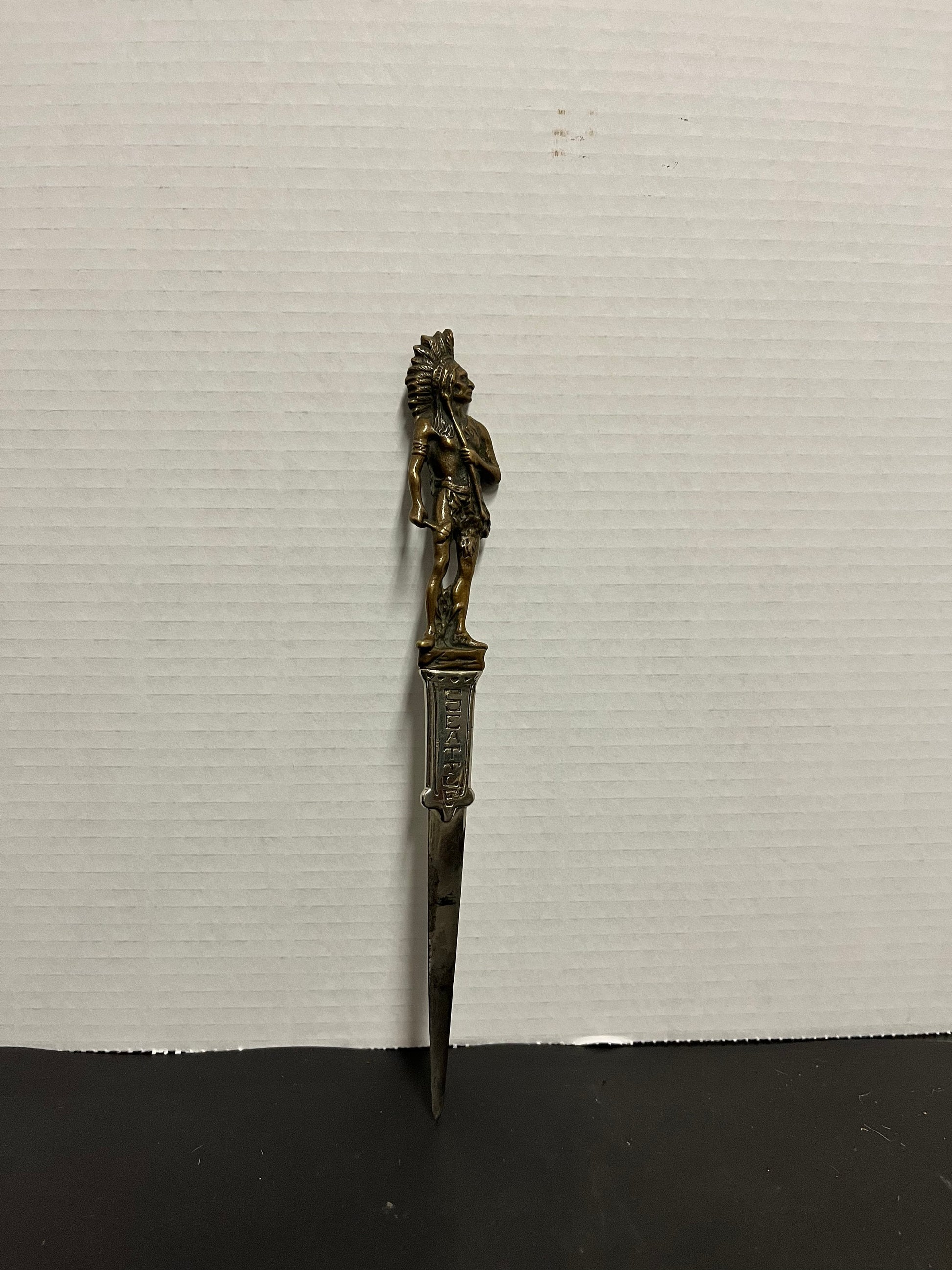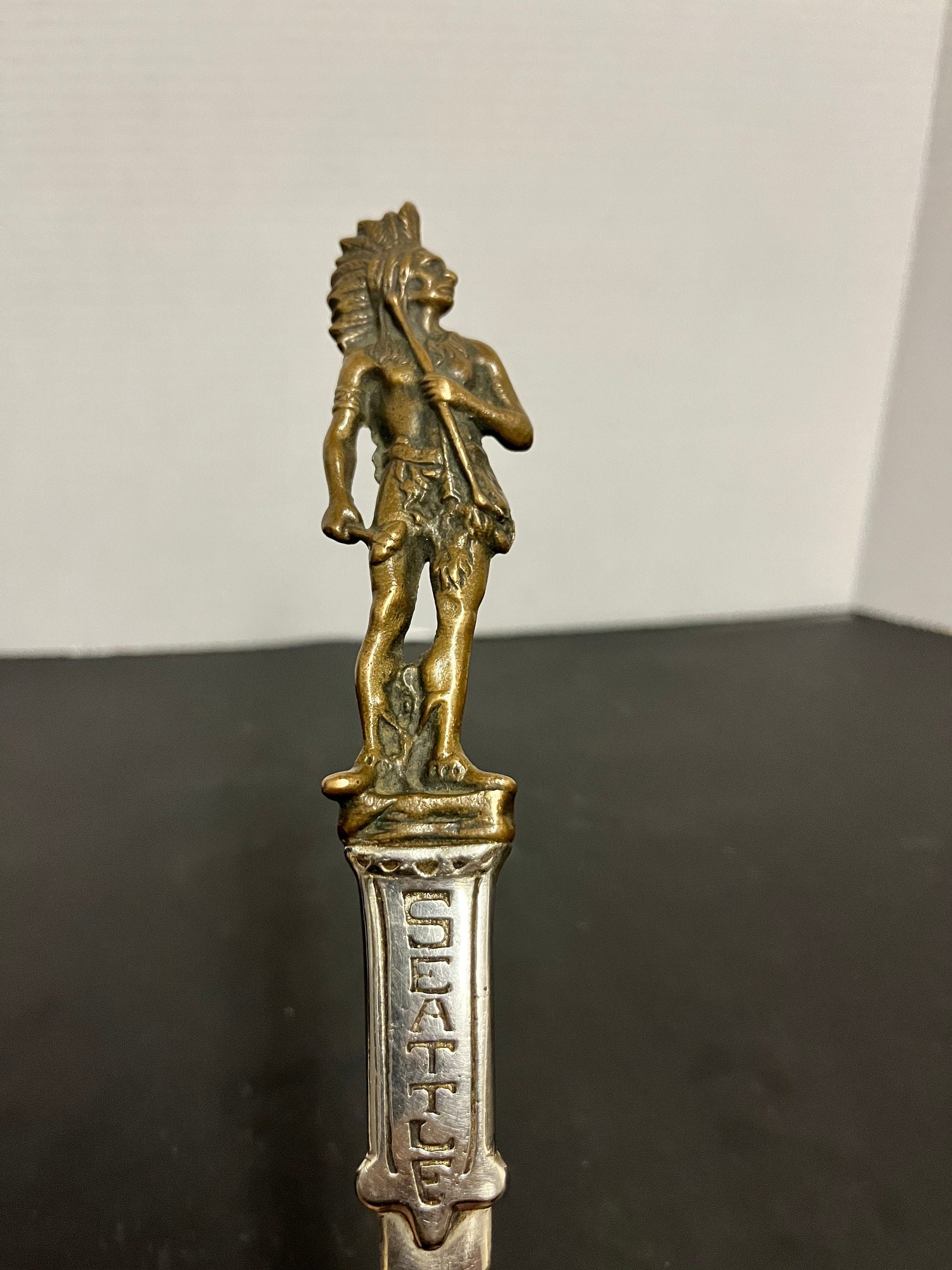 Fabulous rare 10 inch long bronze and metal letter opener celebrating Seattle Great Bettina and wonderful subject matter Indigenous