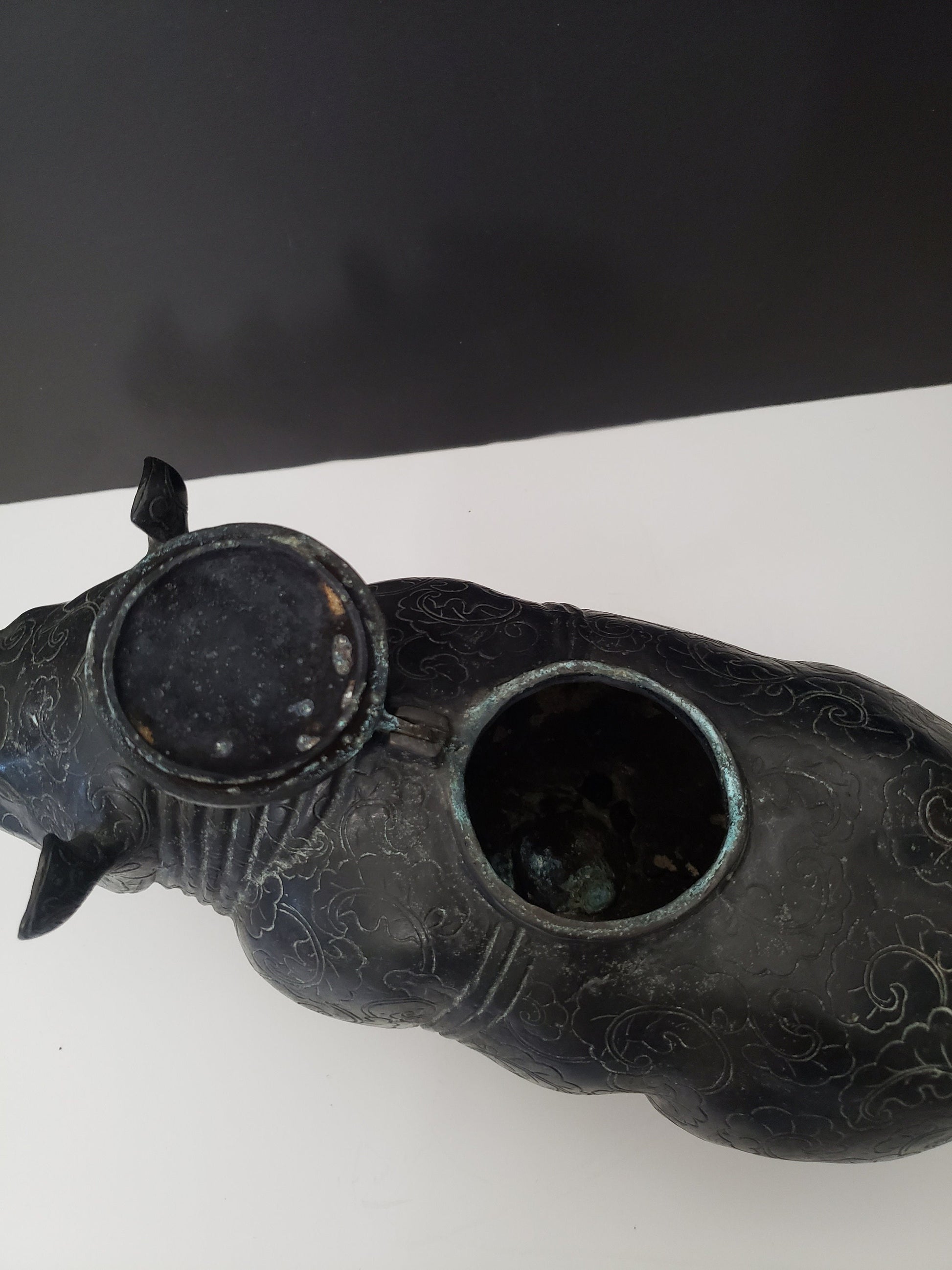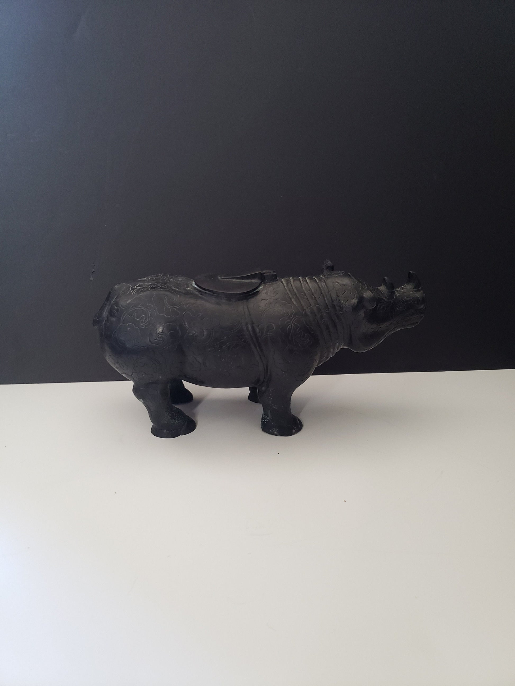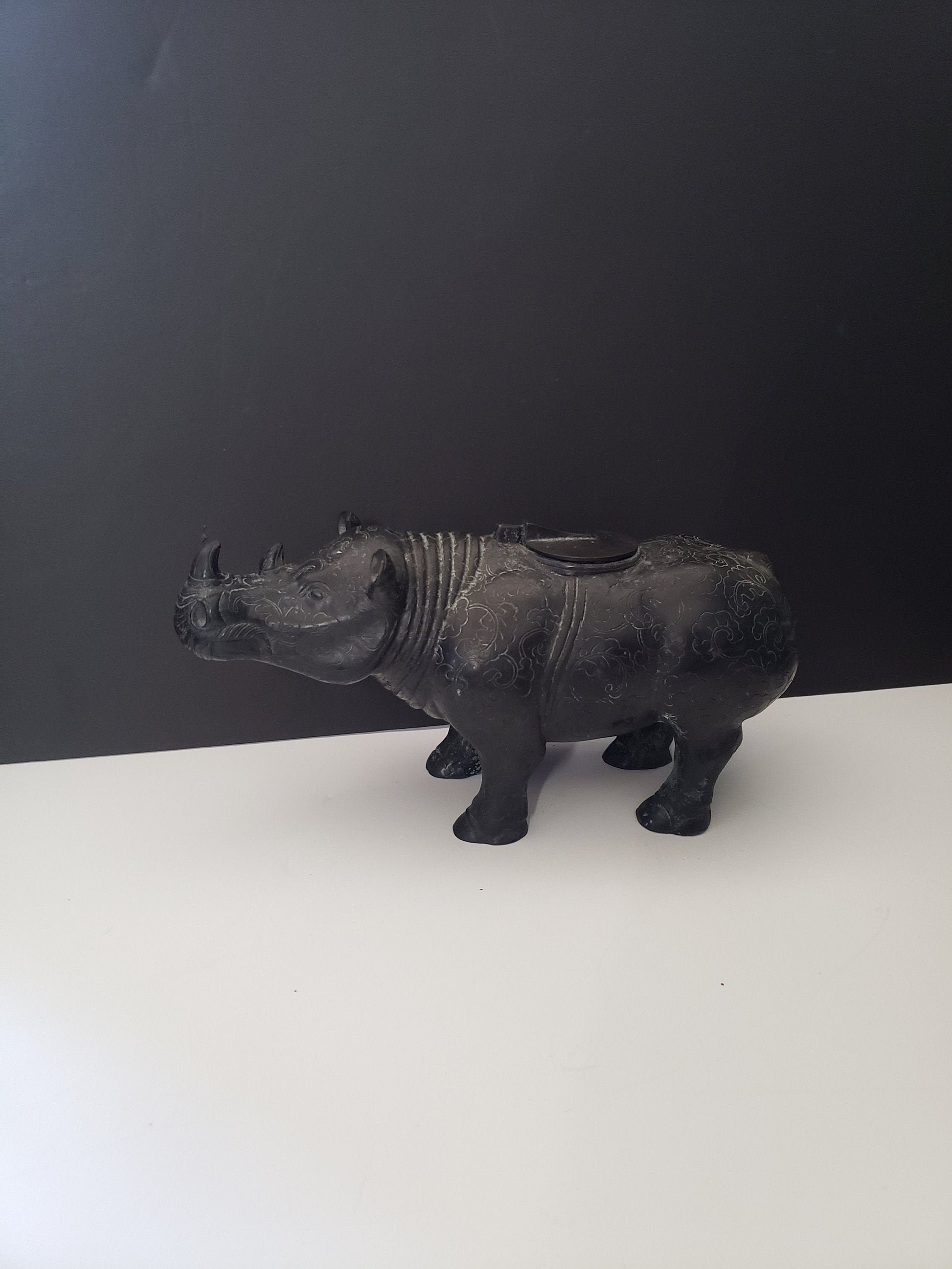 Fabulous Solid Chinese Bronze Rhino Box Amazing Patina