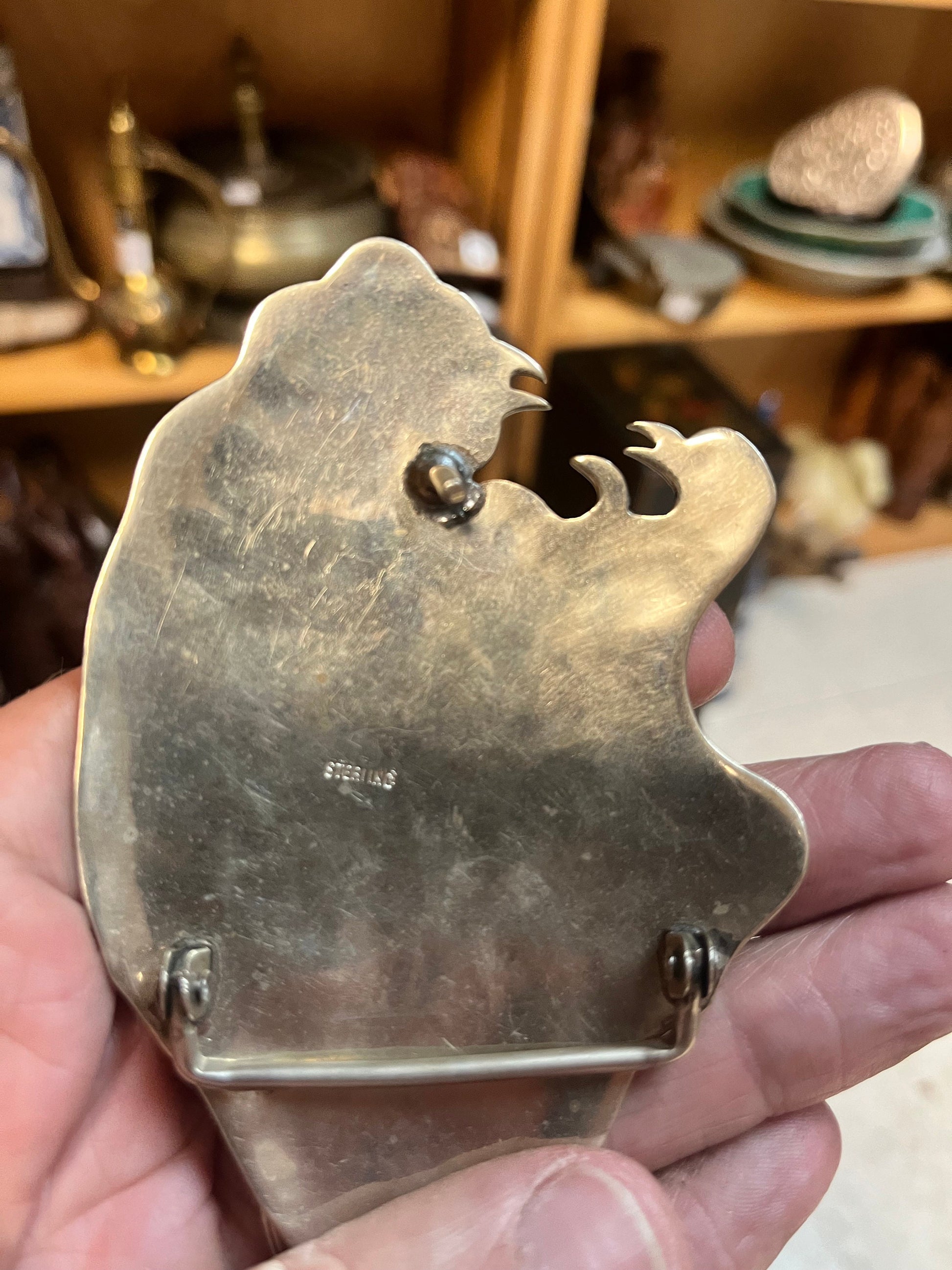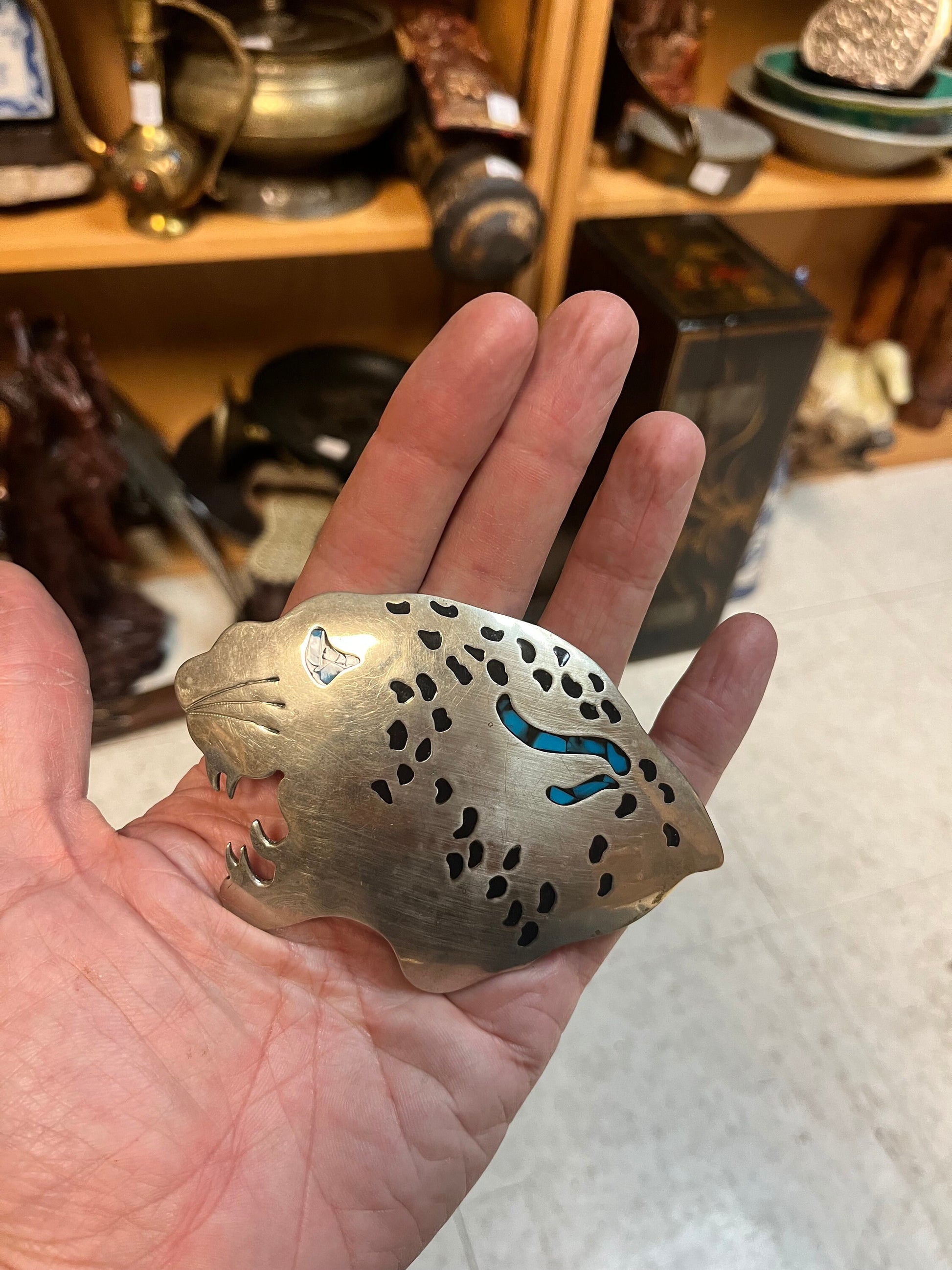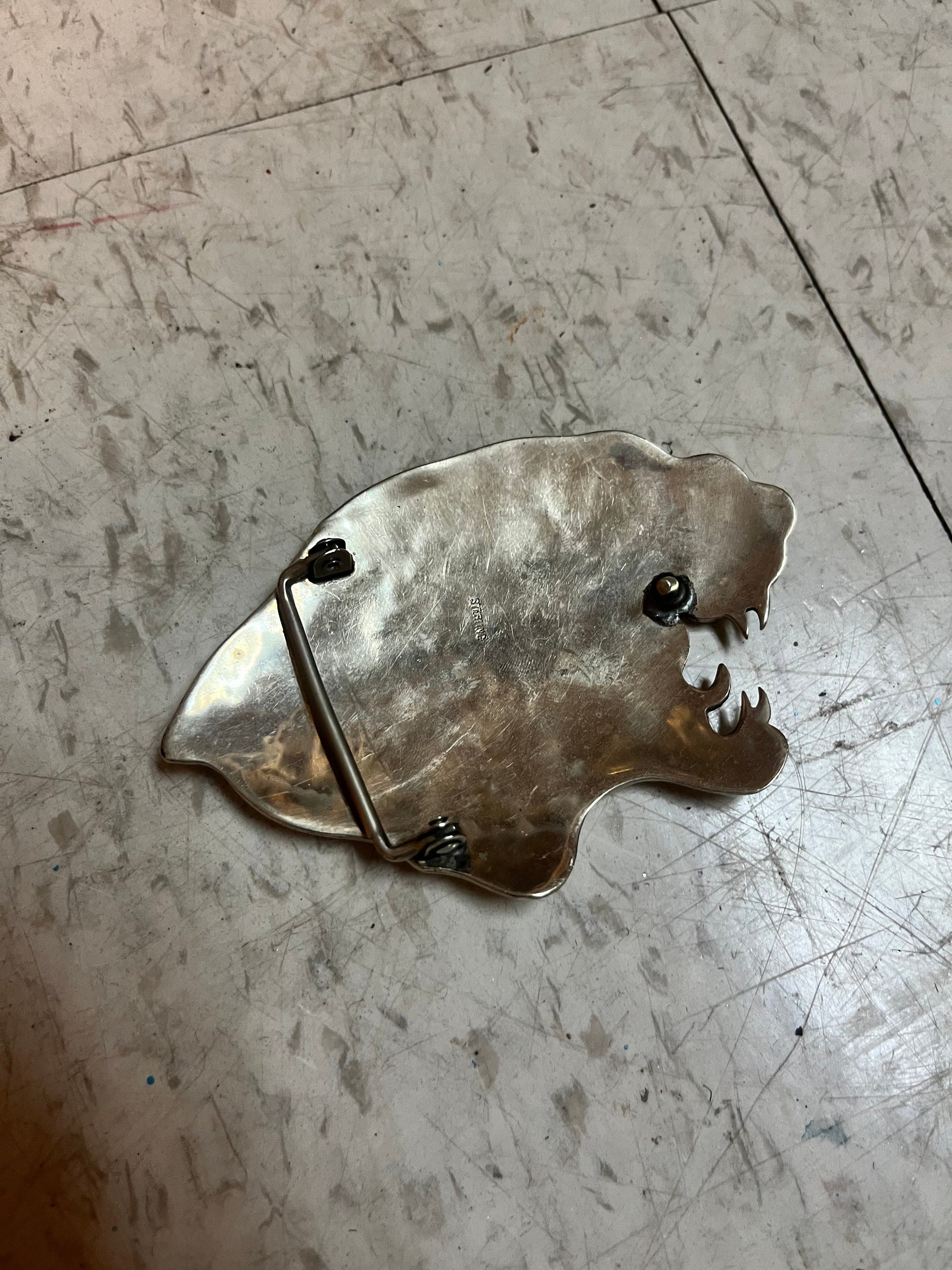 Fabulous solid sterling silver and turquoise leopard head belt buckle Navajo style heavy heavy wow I love