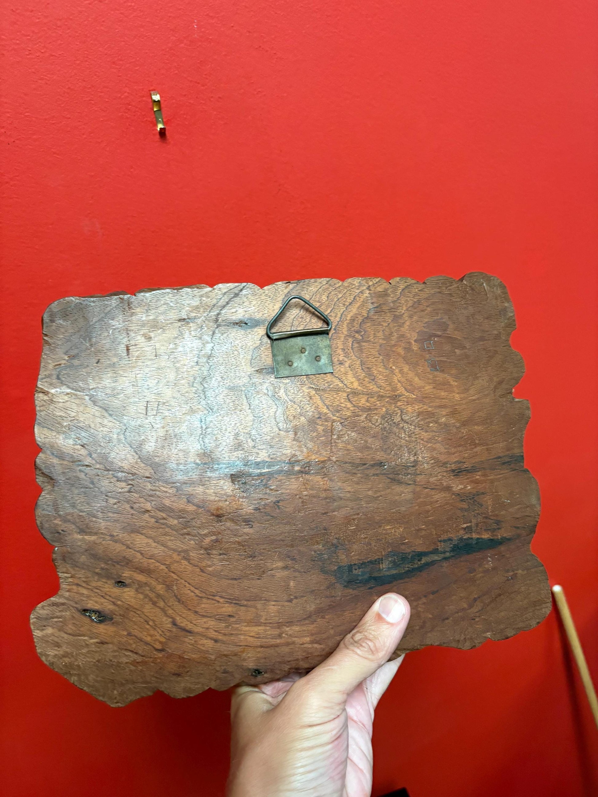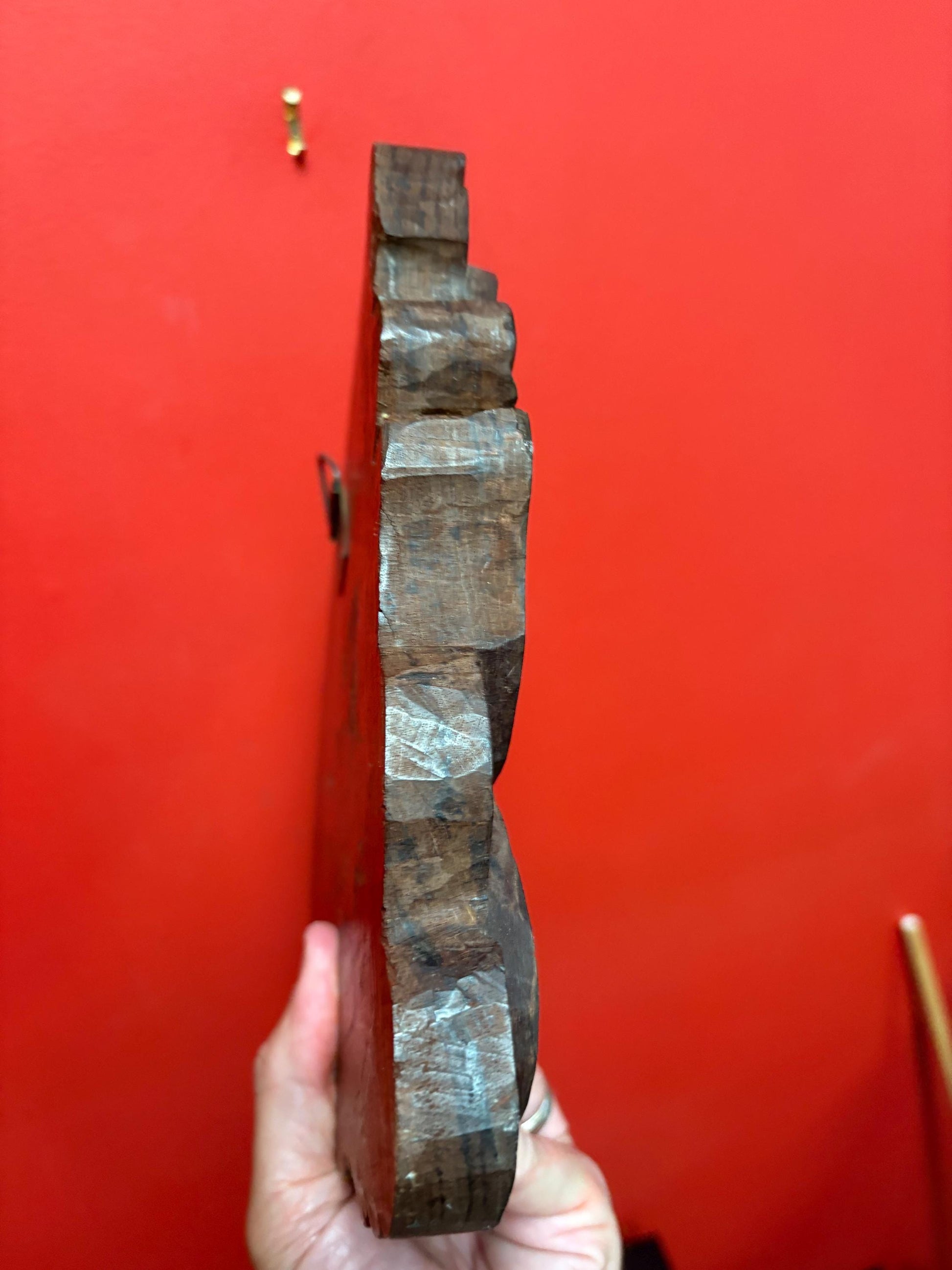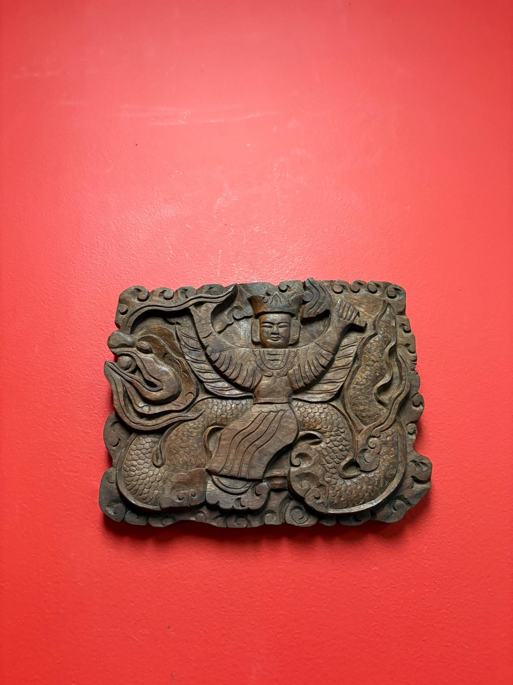 Fabulous Southeast Asian antique heavy wall carved plaque of emperor and dragon wooden beauty 11 x 9 by one inch thick