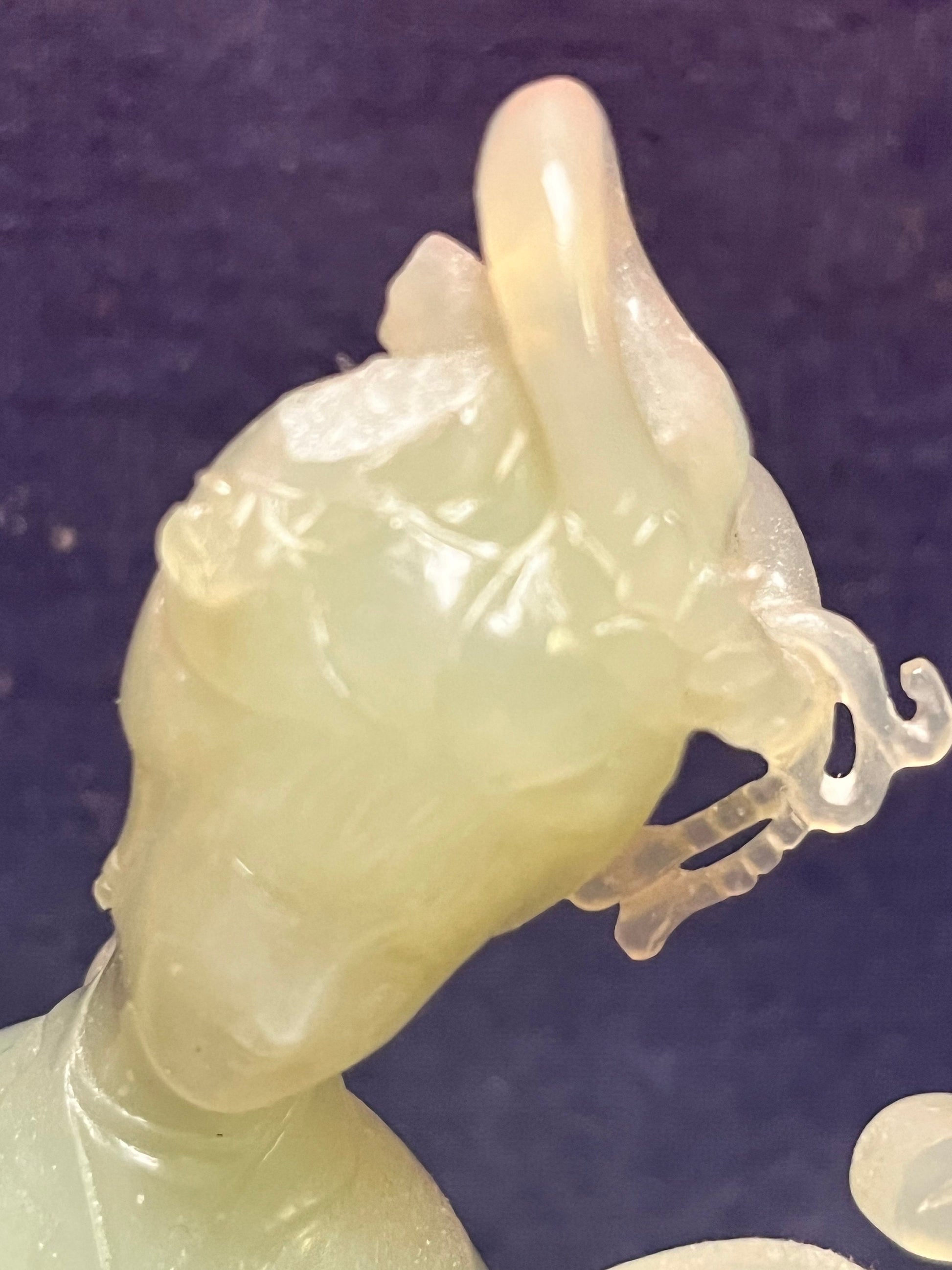 Fabulous vintage Jade Chinese 7 inch statue of guan Lin on stand in original box one chip low price