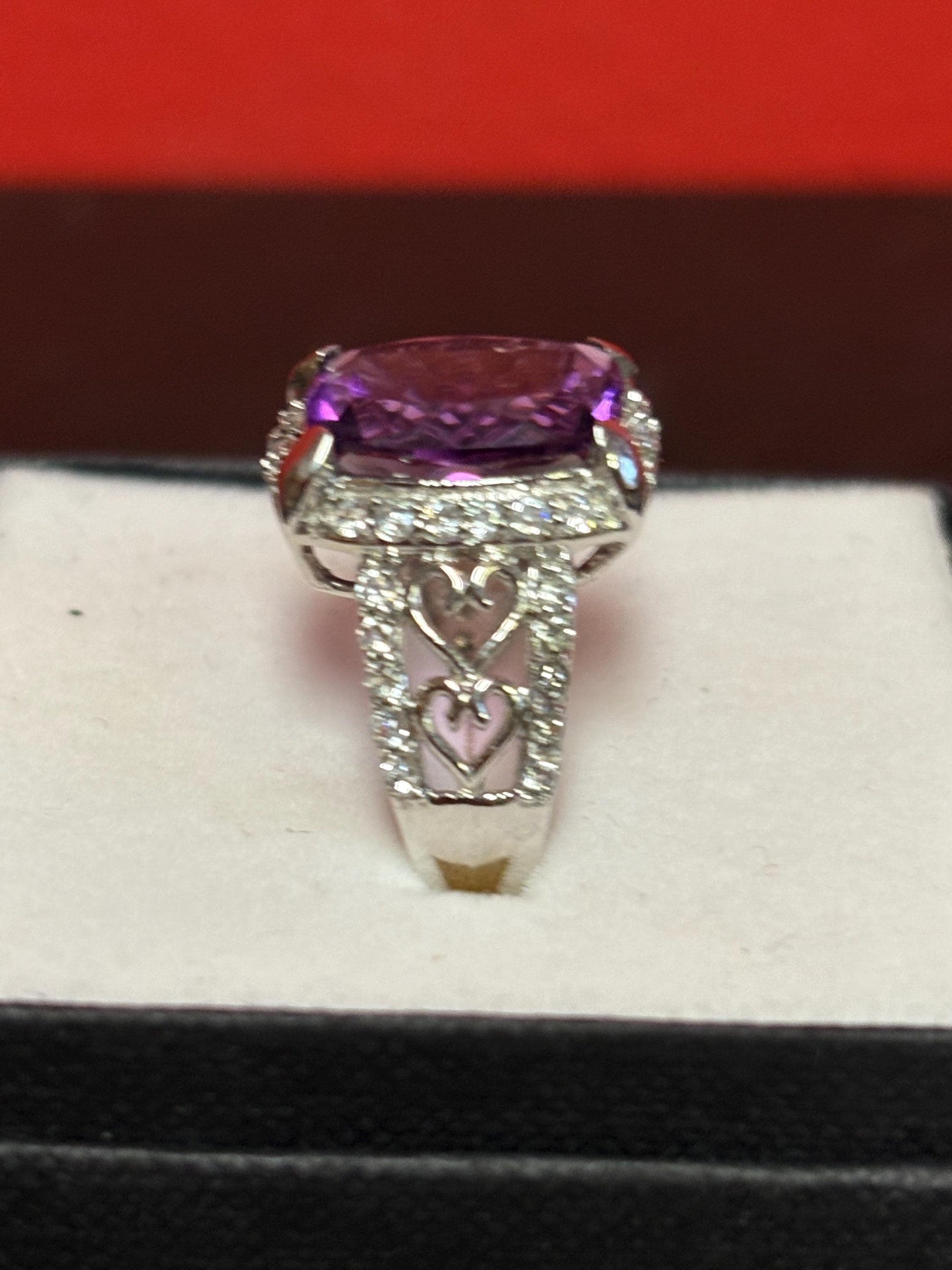 Fantastic 14 K white gold diamond and amethyst ring - size 7 - top quality B -