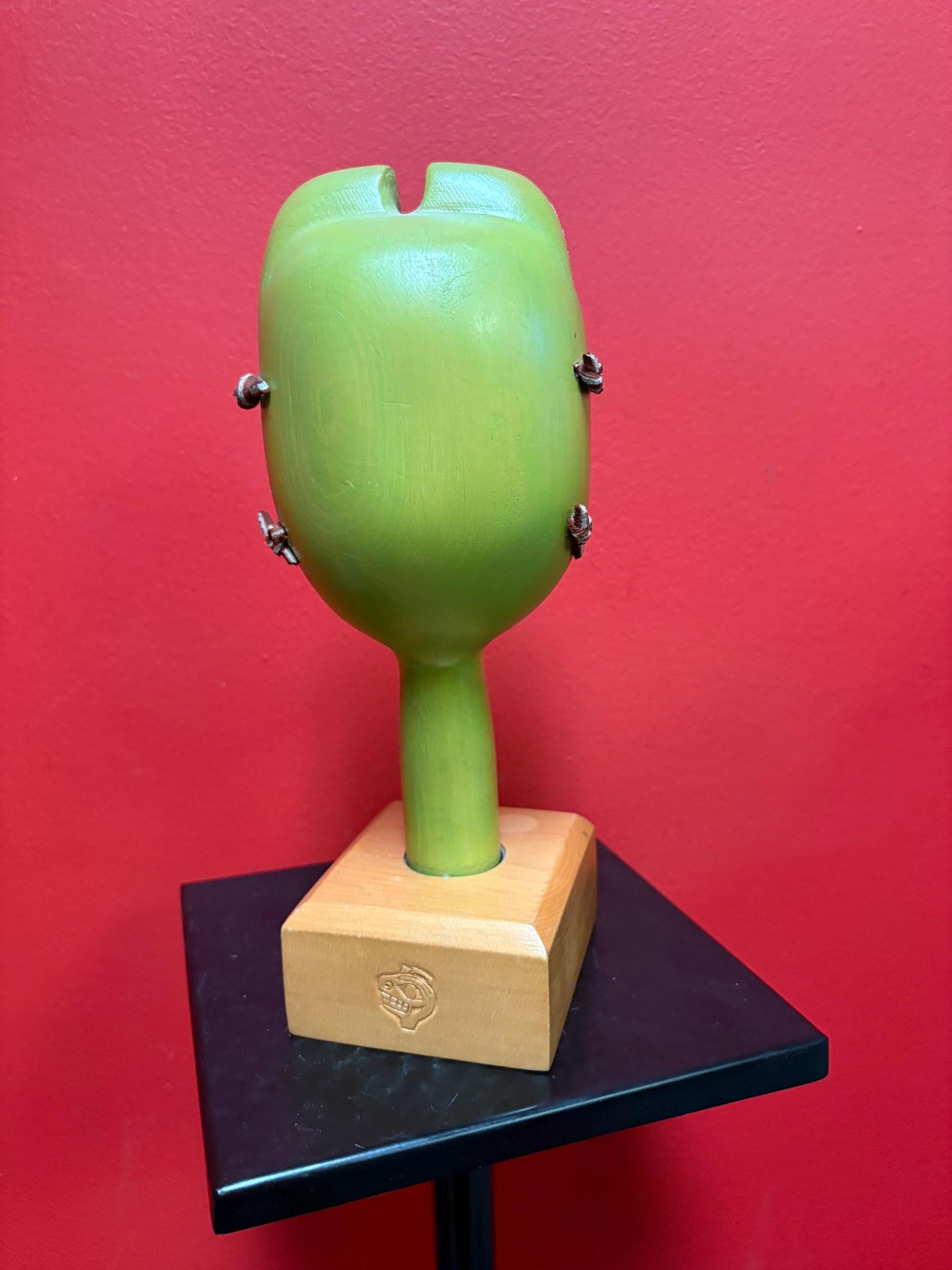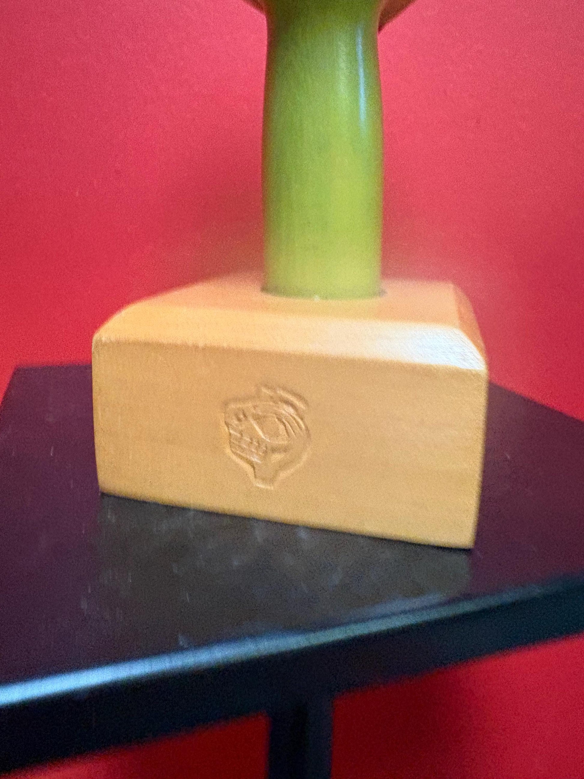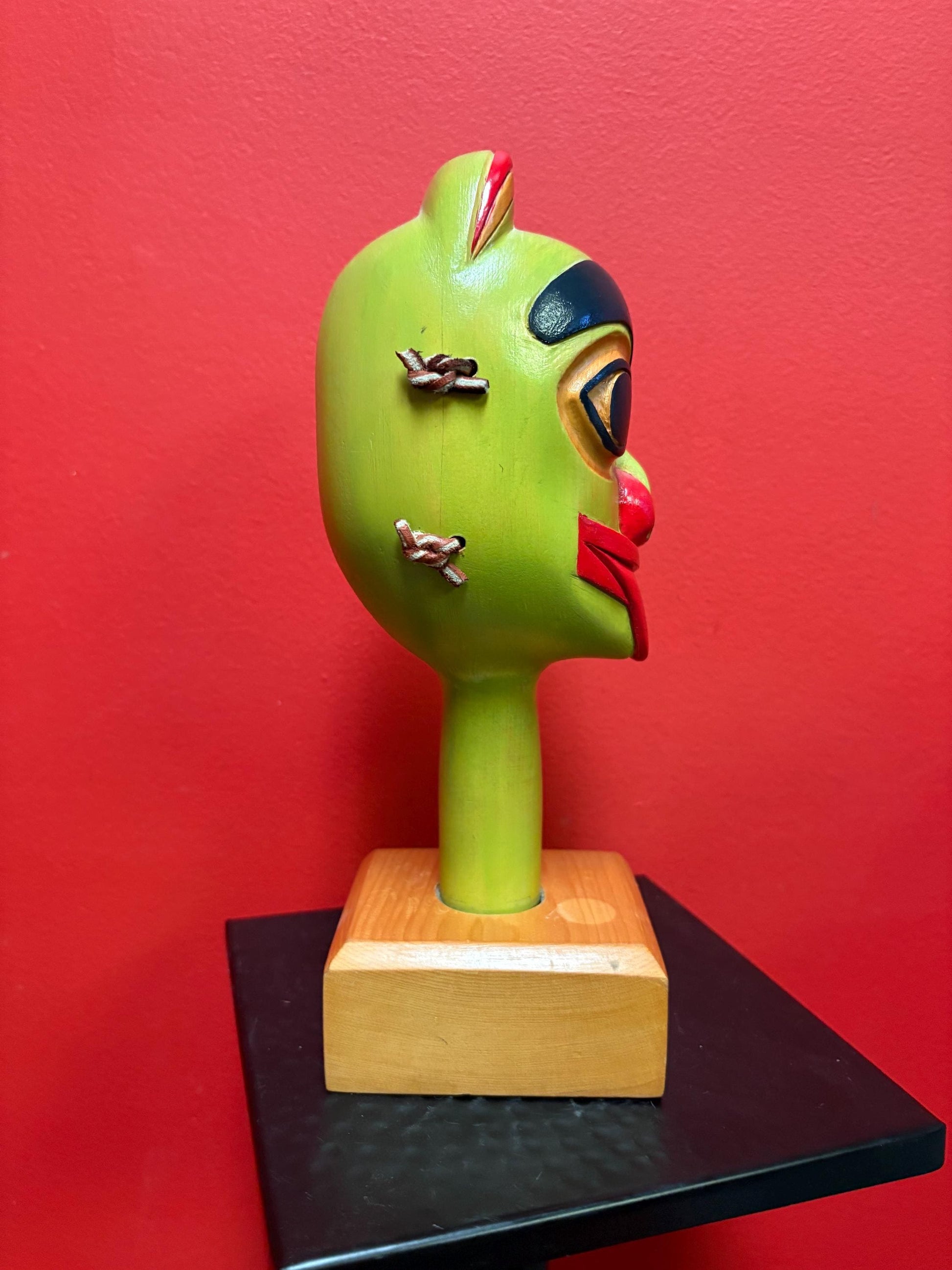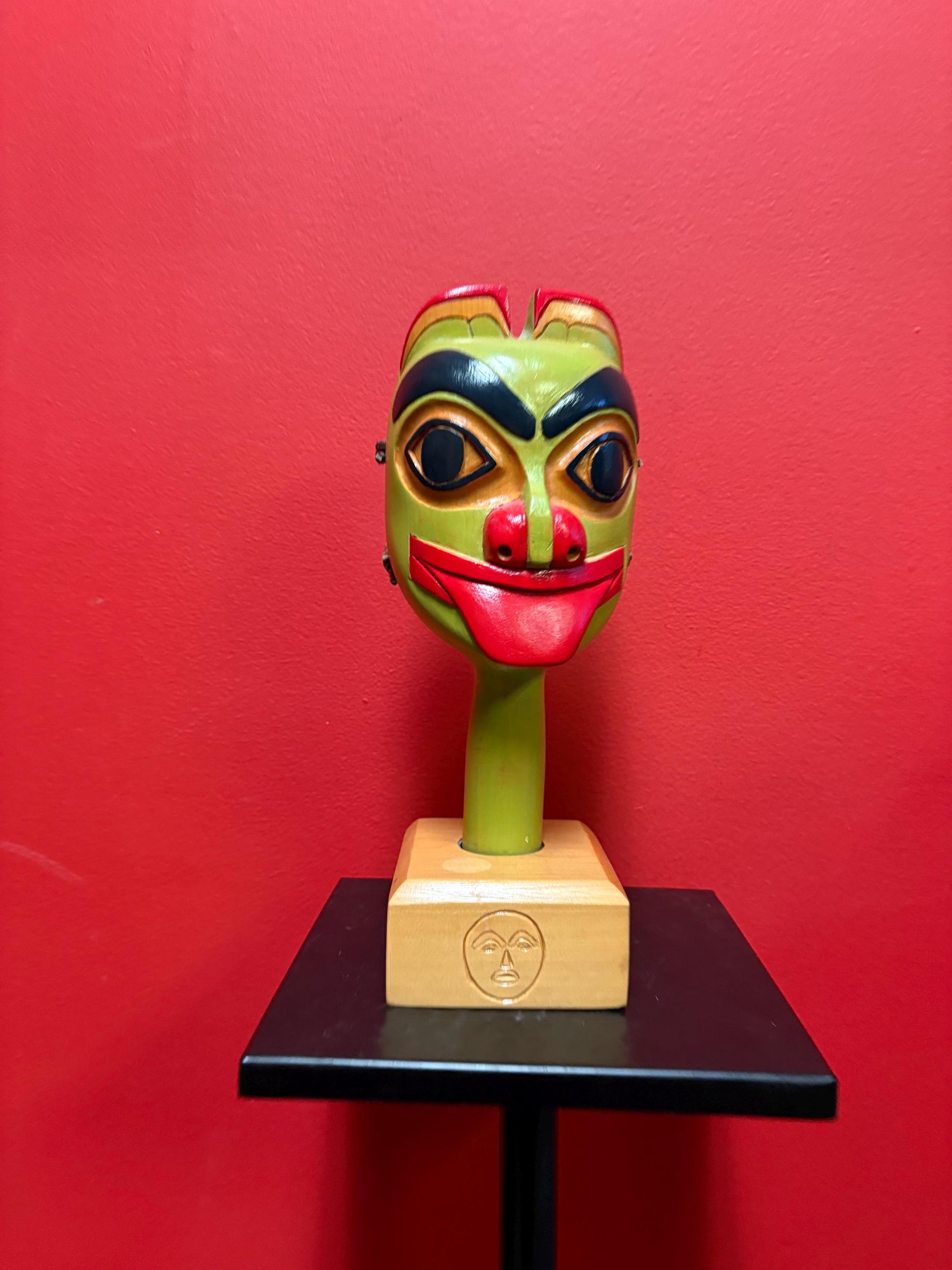 favulous indigenous first nation Pacific Northwest Coast signed Haywood Russel frog rattle in stand rattle 10 inches and stand 2 inches