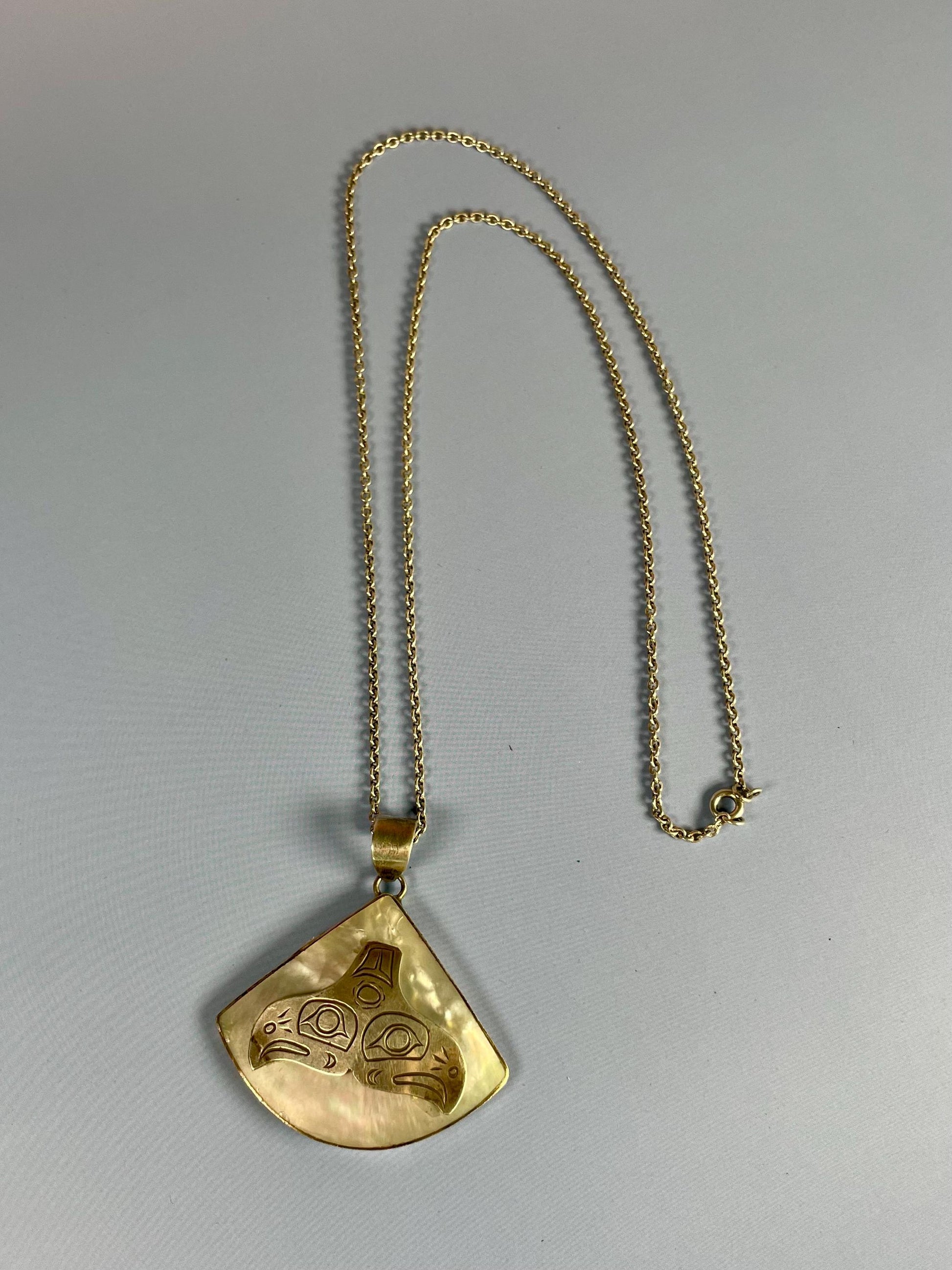 First Nations Abalone and Sterling Silver Engraved Pendant Necklace