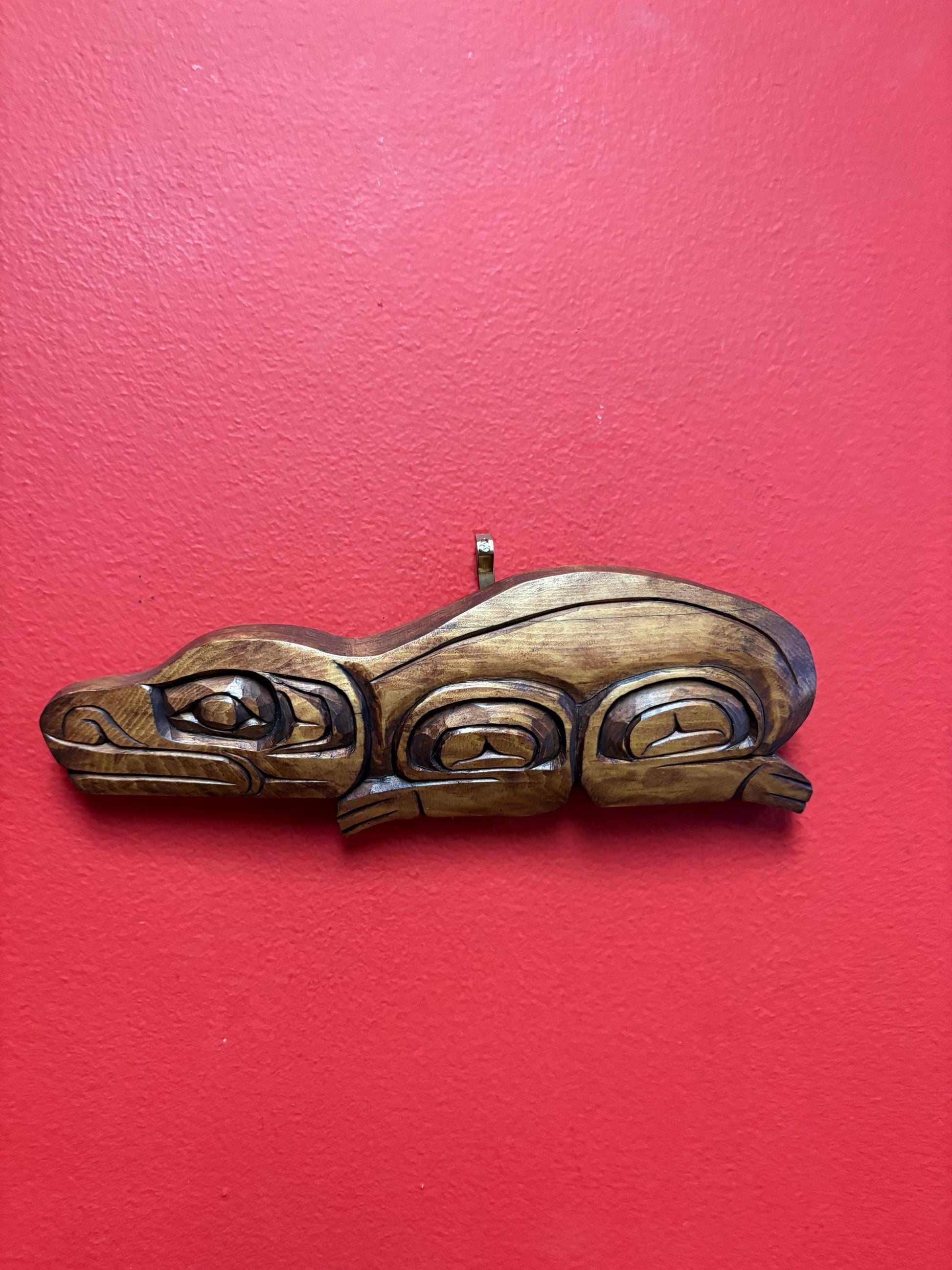 Gino Seward Indigenous First Nations cedar 9 x 3 inch frog plaque wonderful detail -