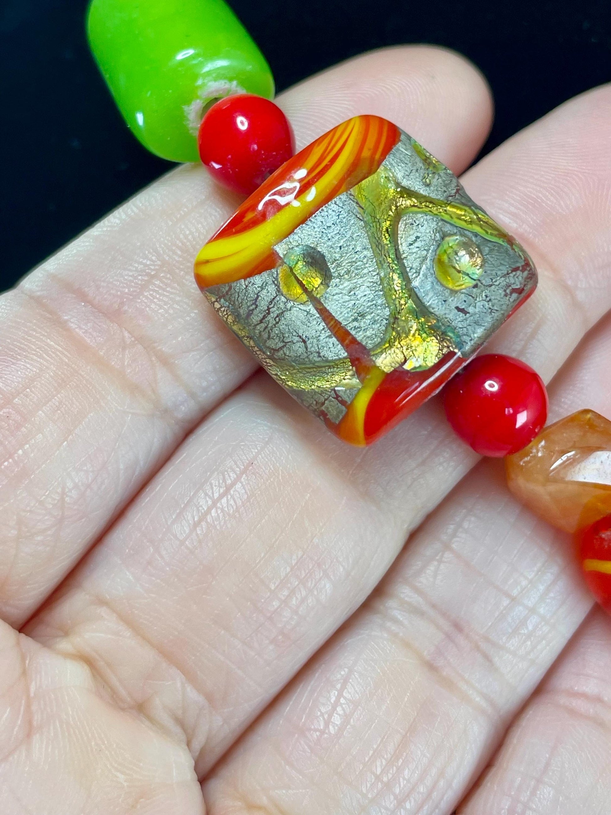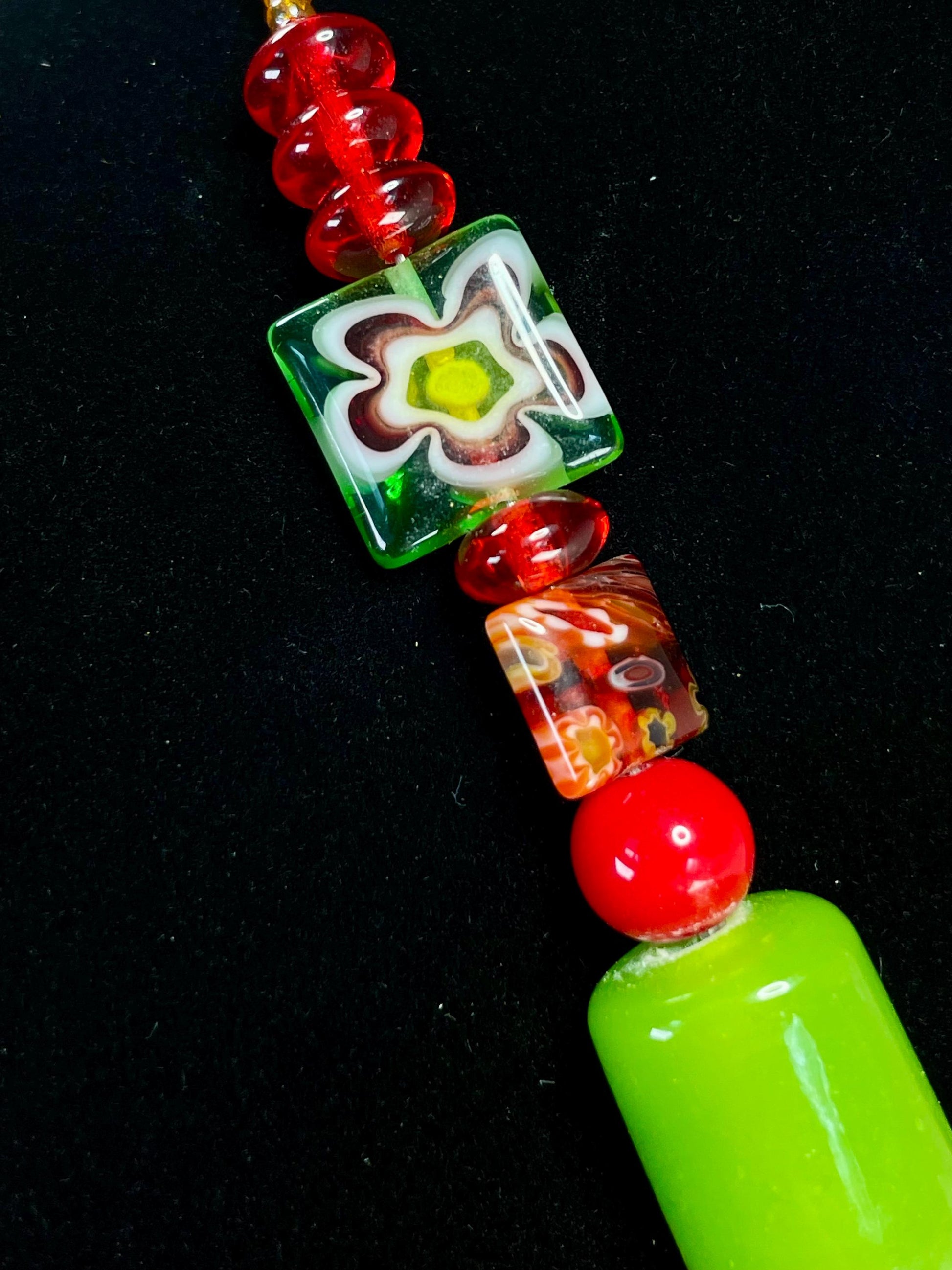 This necklace combines a unique variety of colourful glass beads in different shapes for a stylish, elegant look. Perfect for any occasion. 18 inches with an approx 2.25 inch pendant
