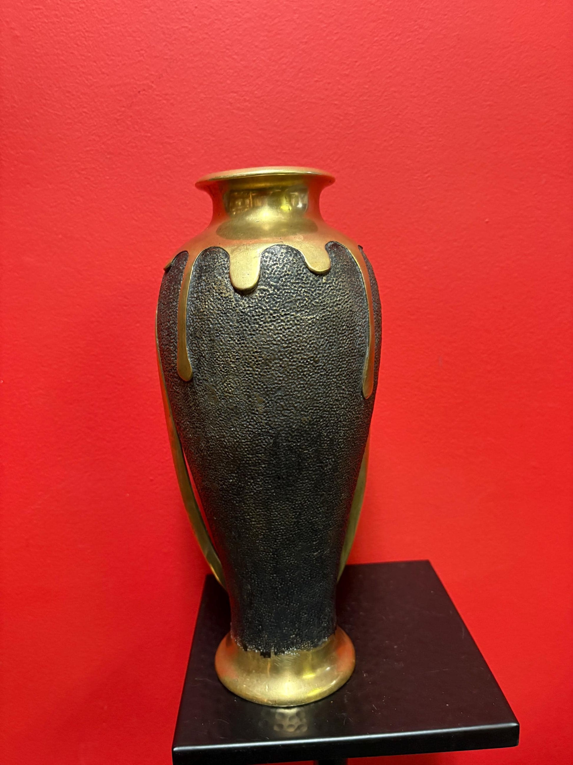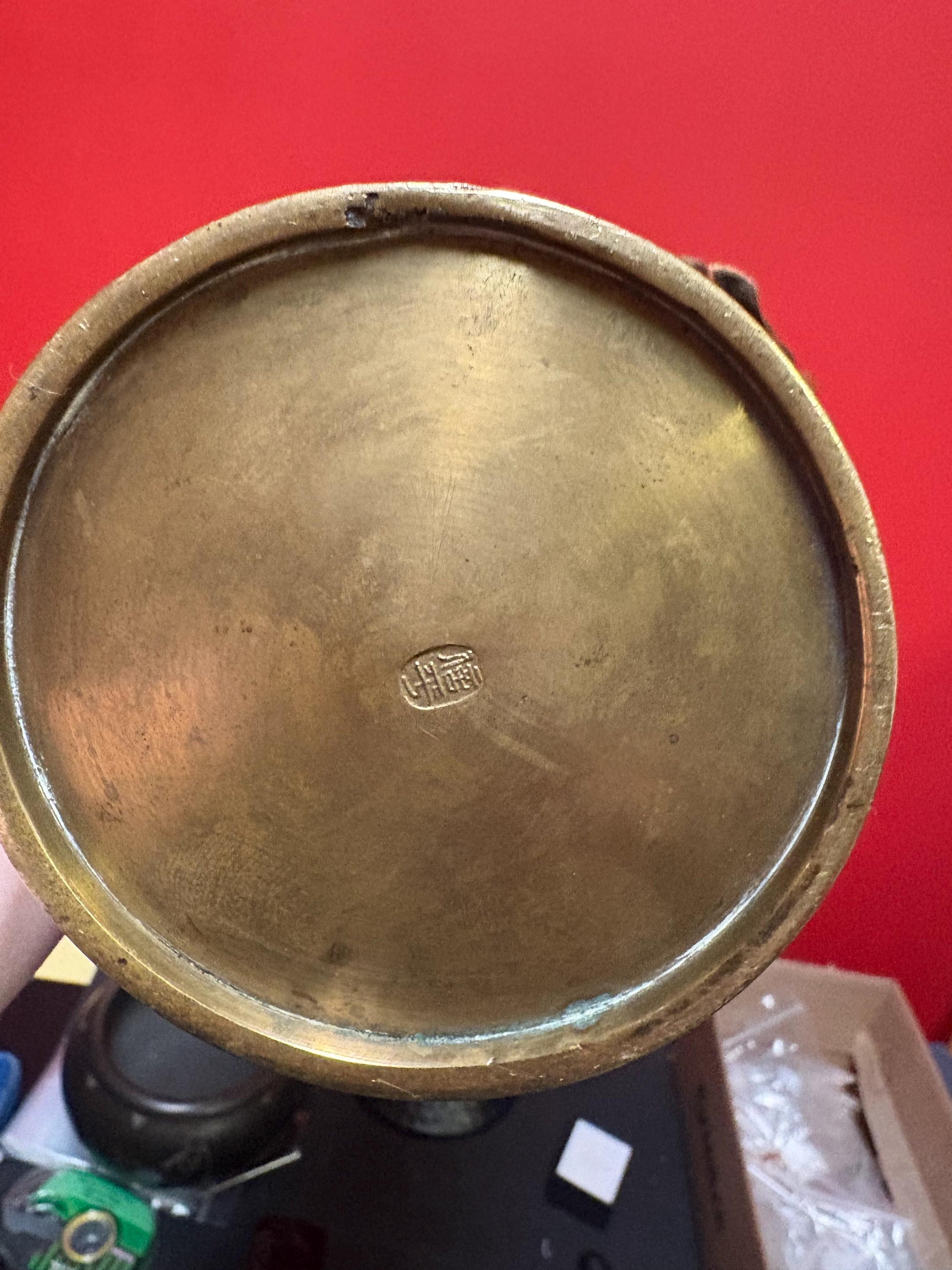 Glorious 19 century Japanese meji bronze and brass vase signed with beautiful irises top quality and heavy - 12 inches high