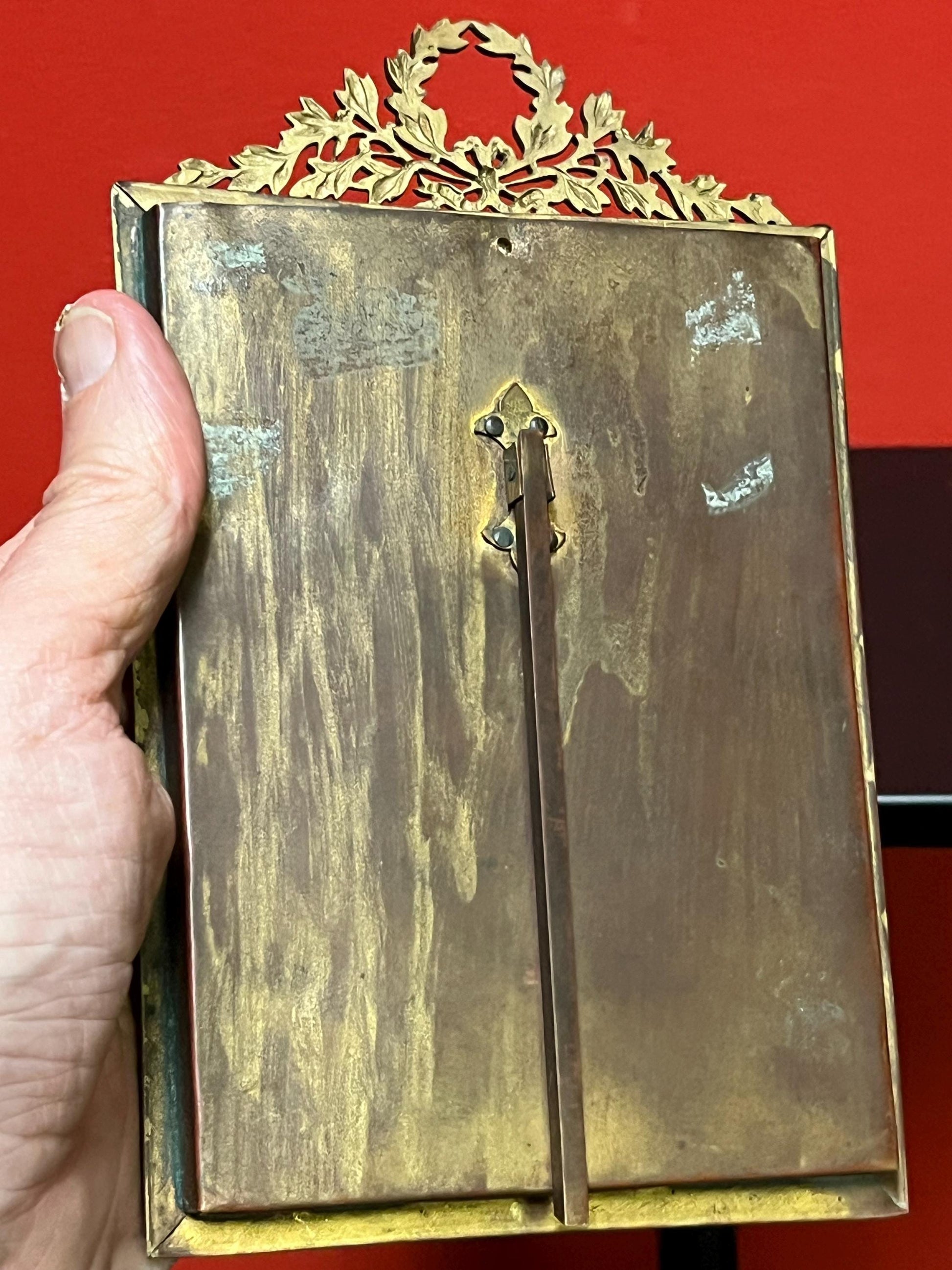 Gorgeous 7.5 x 5 gilt and wood framed painting by Felix on porcelain 19th century European beauty perfect gift