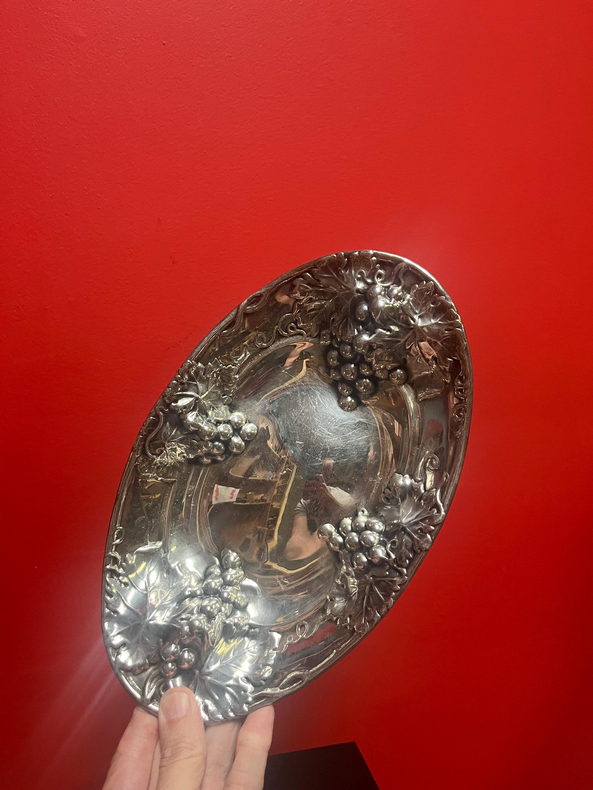 Gorgeous antique 11 x 7 heavy silver plated grape and leaf dish by BIRKS of Canada