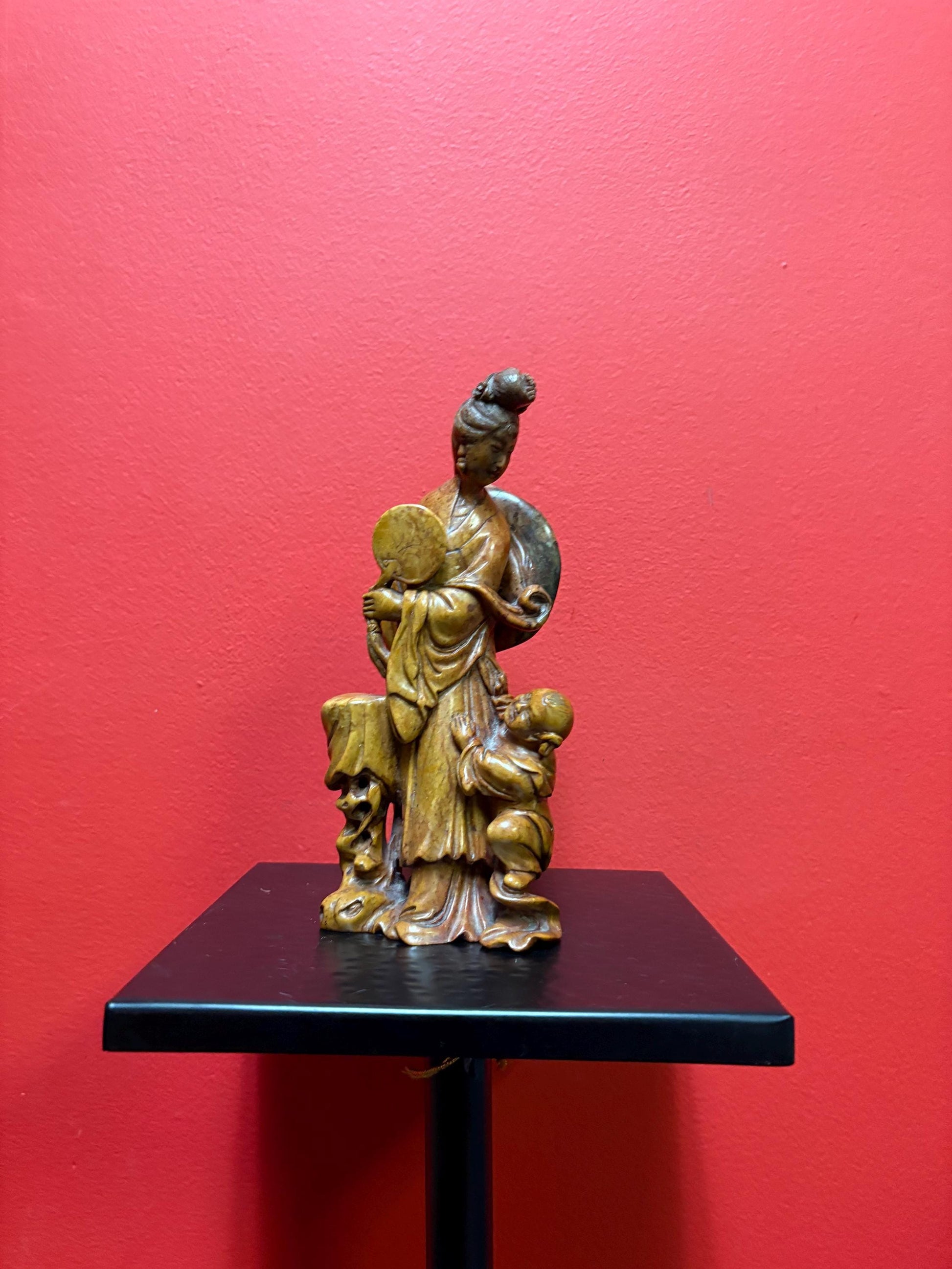 Gorgeous antique Chinese stone statue of woman and child wonderful detail and great value - Chinese antiques