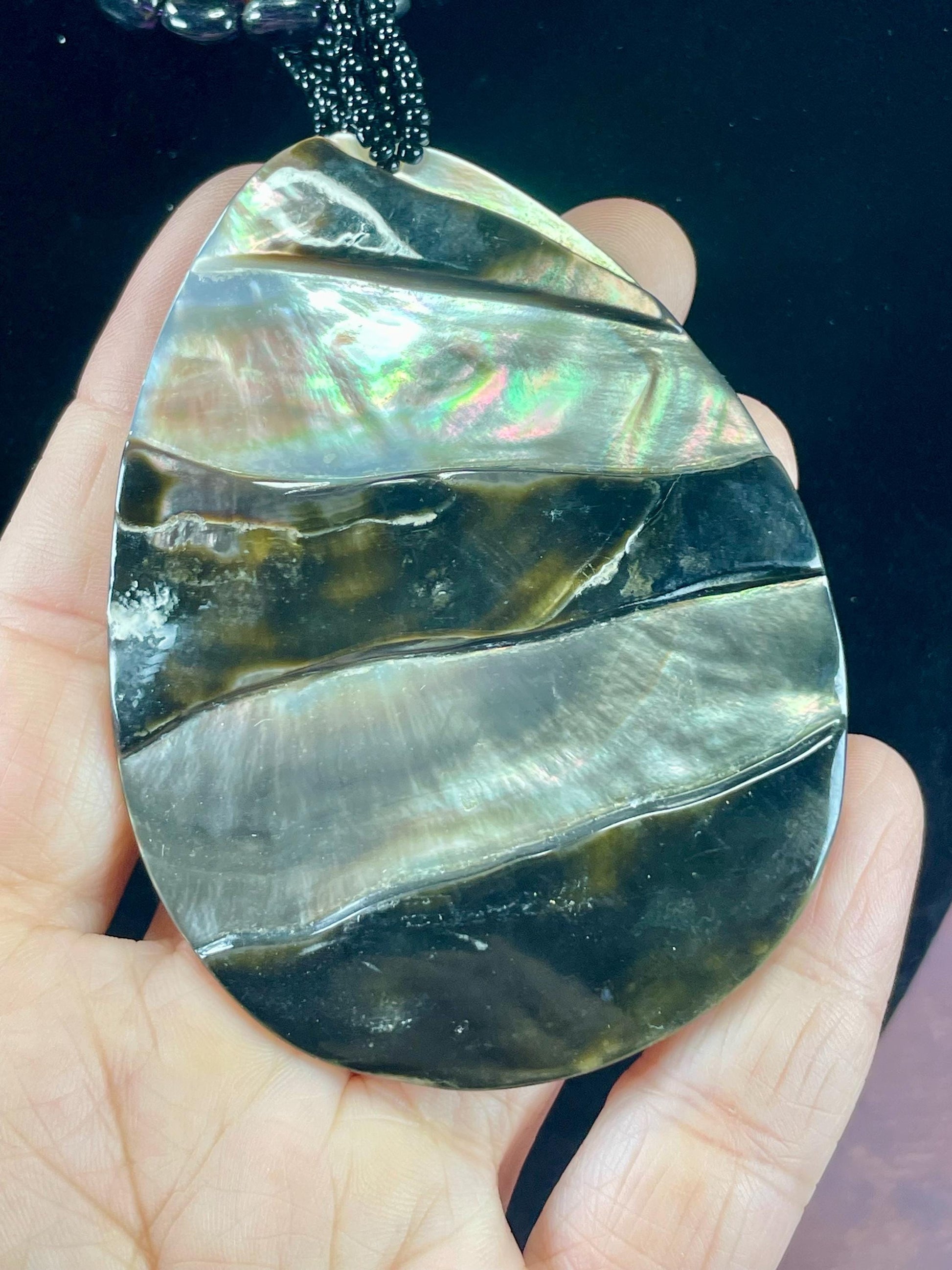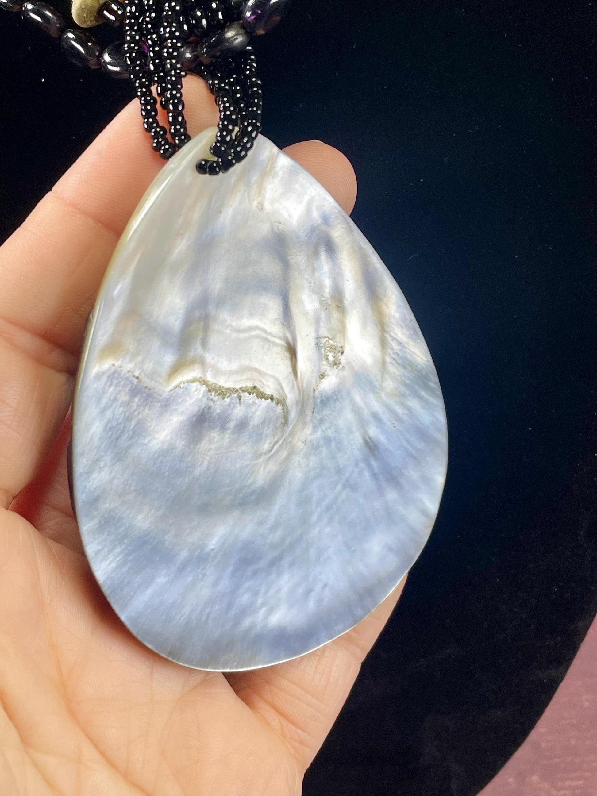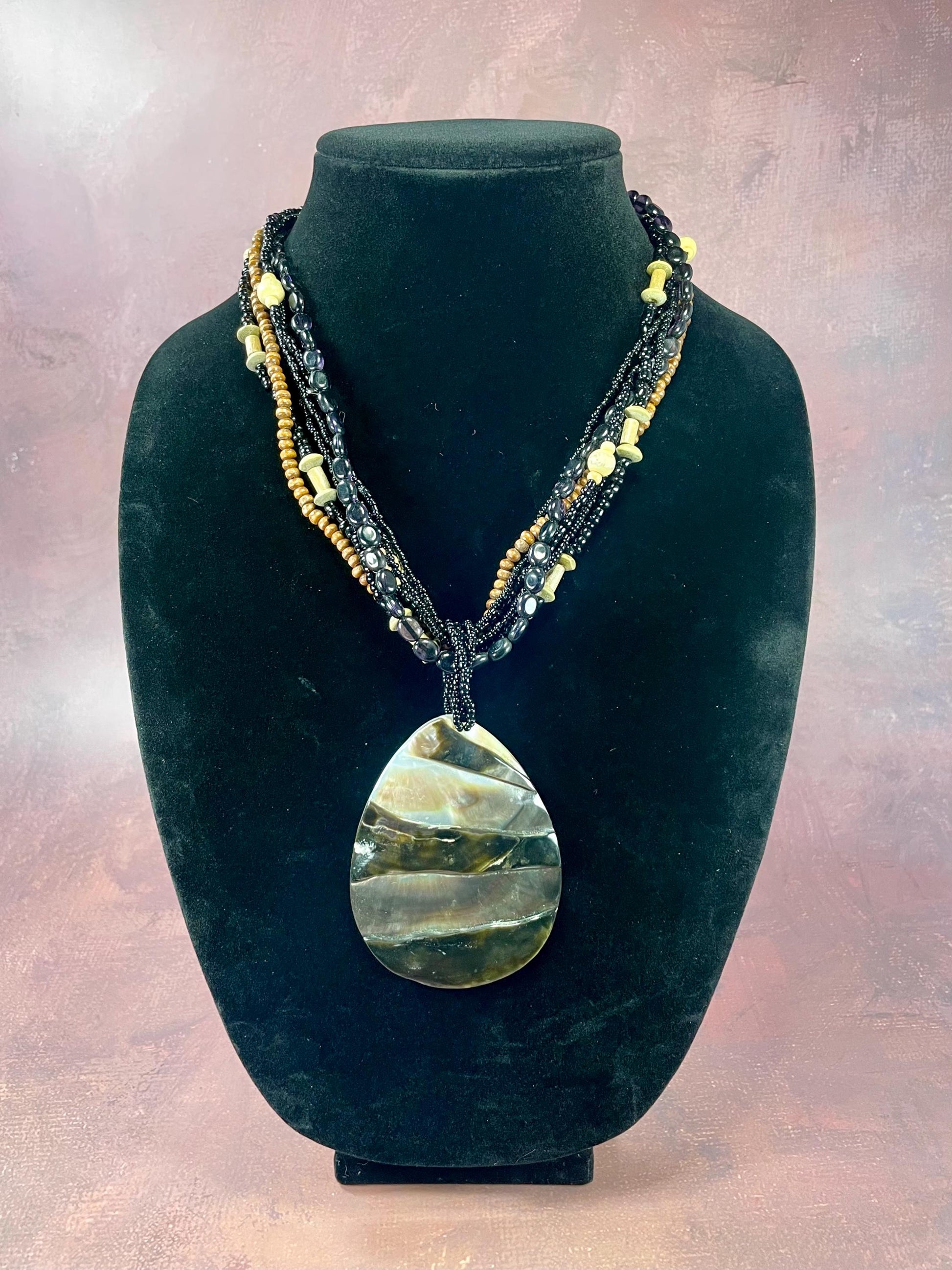 Gorgeous Beaded Necklace with 2 Large Interchangeable Shell Pendants