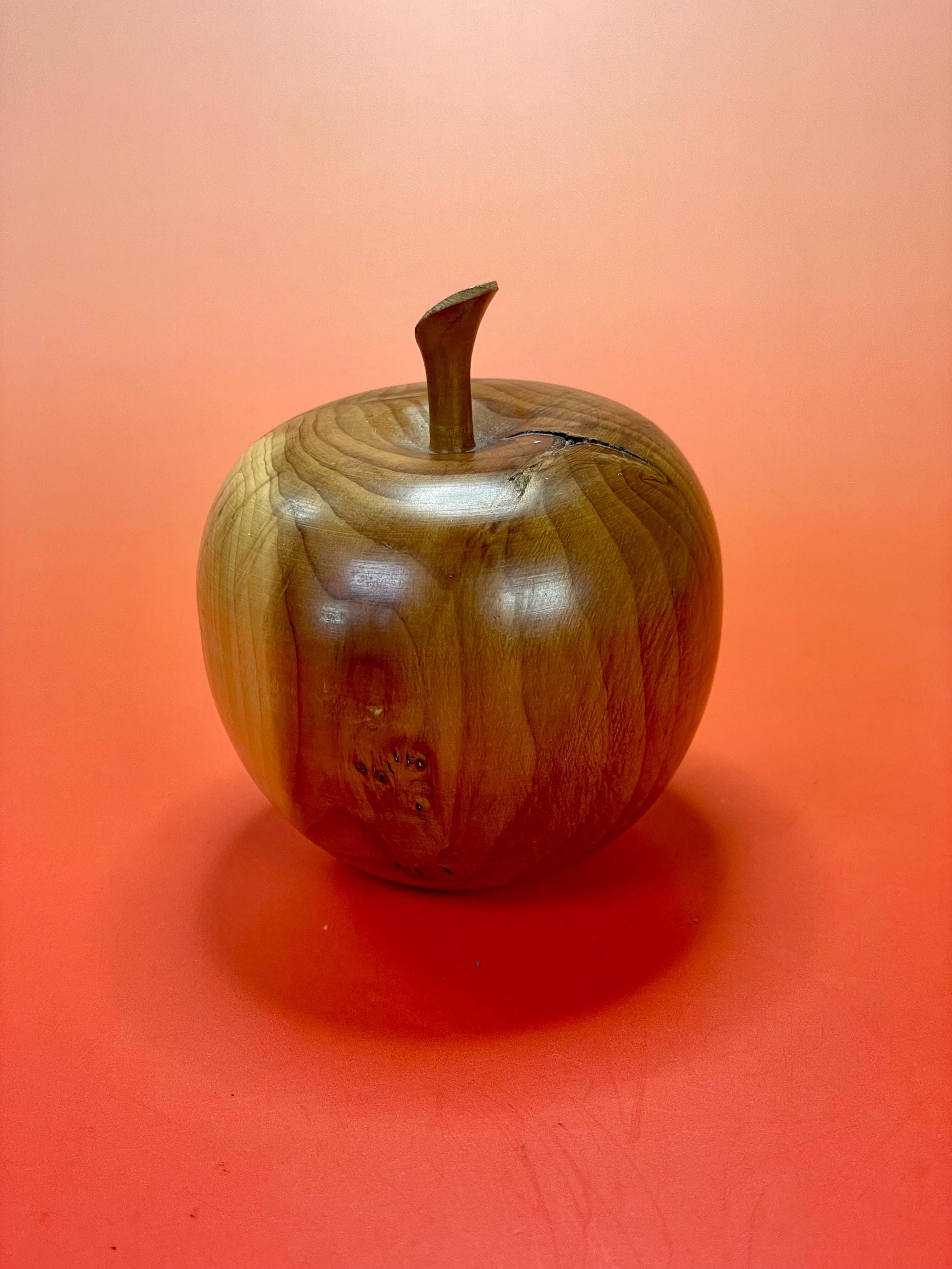 Lovely hand carved and polished wooden apple ornament. Great decor piece.