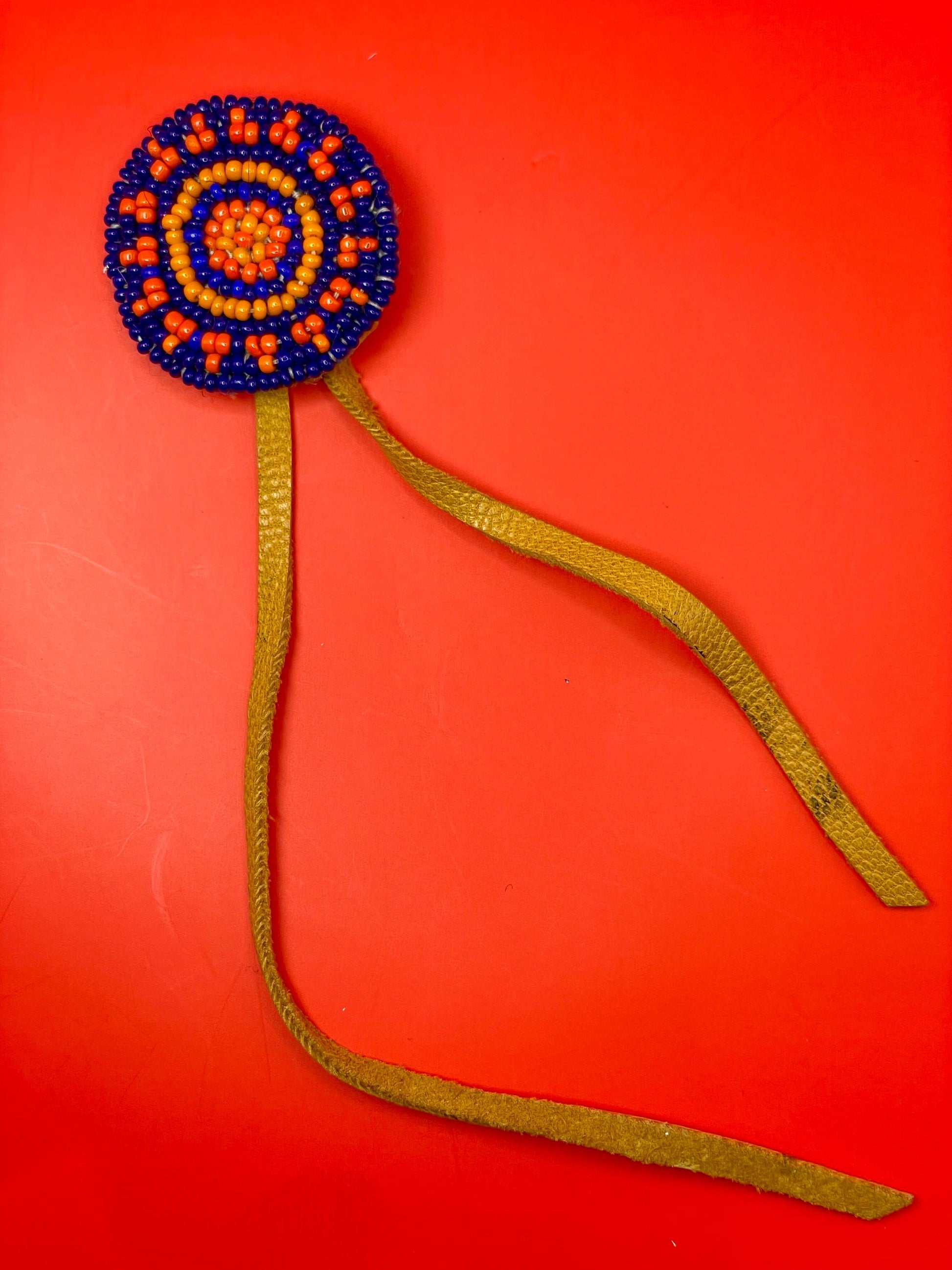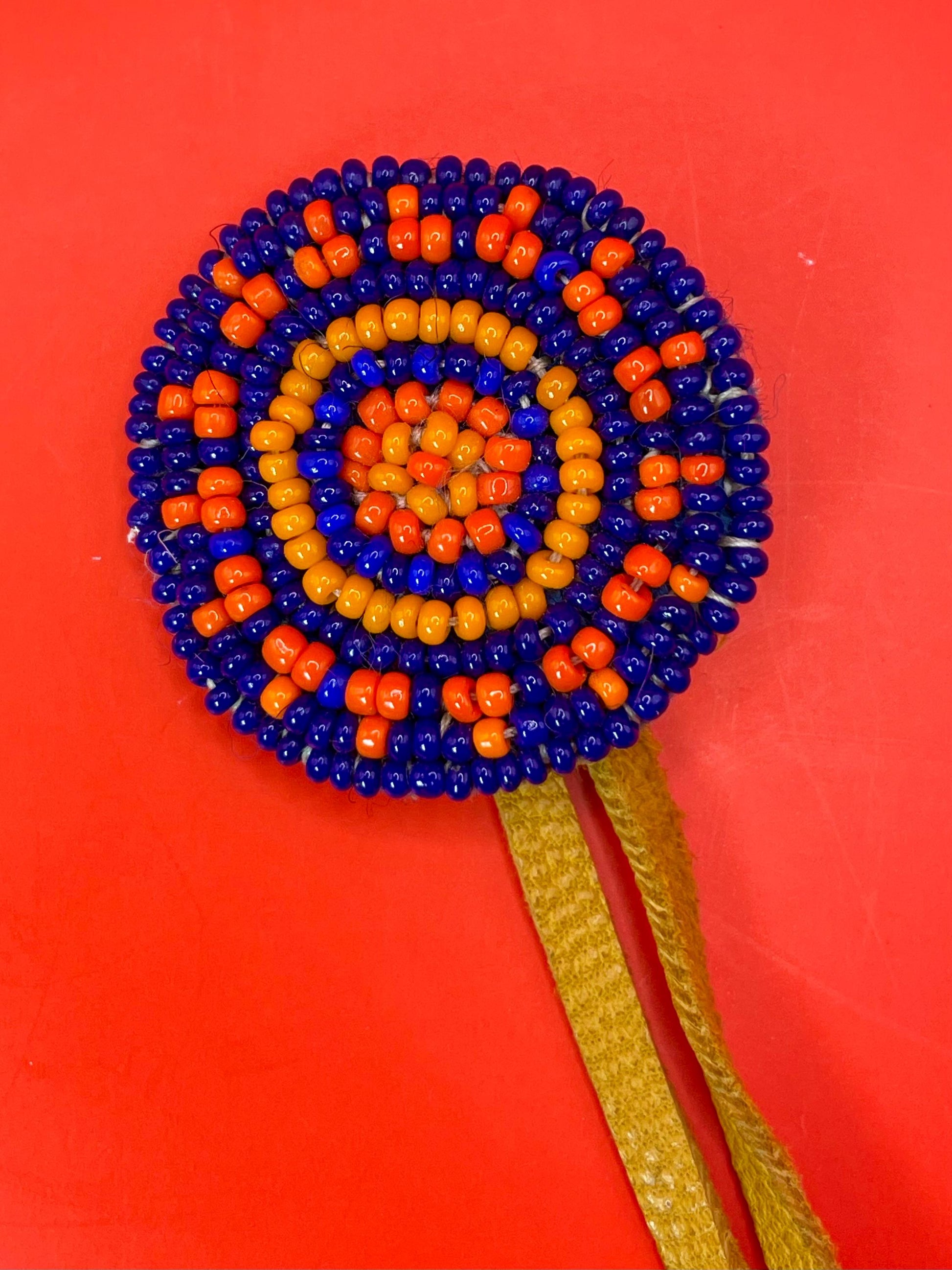 Amazingly handcrafted, First Nations beaded Button with flower or sun design.