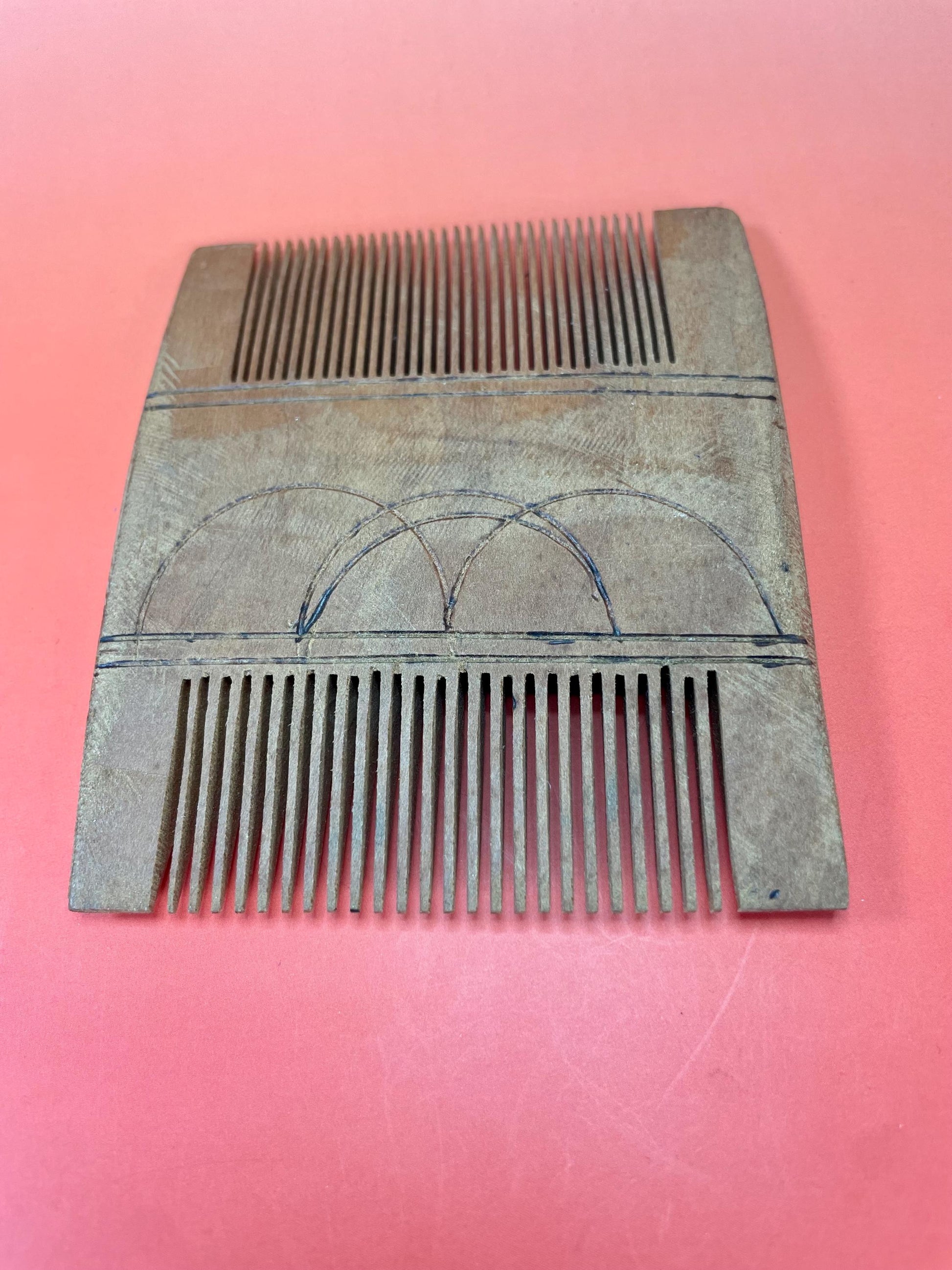 This handcrafted wooden comb features fine and wide teeth with a simple etched design. A natural, stylish tool for everyday grooming.